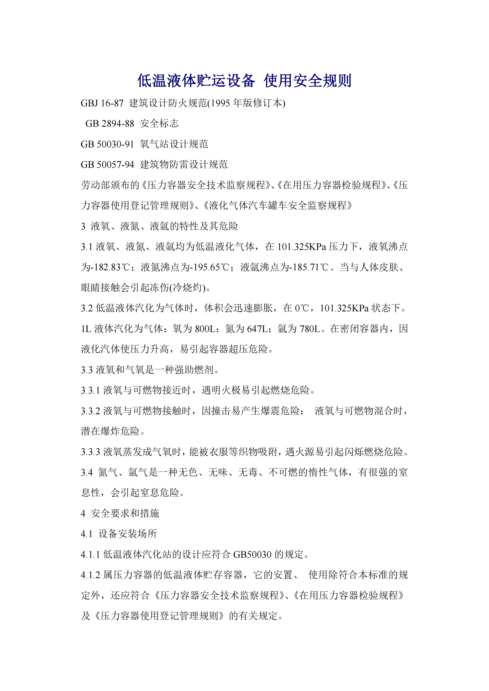 低温液体贮运设备-使用安全规则