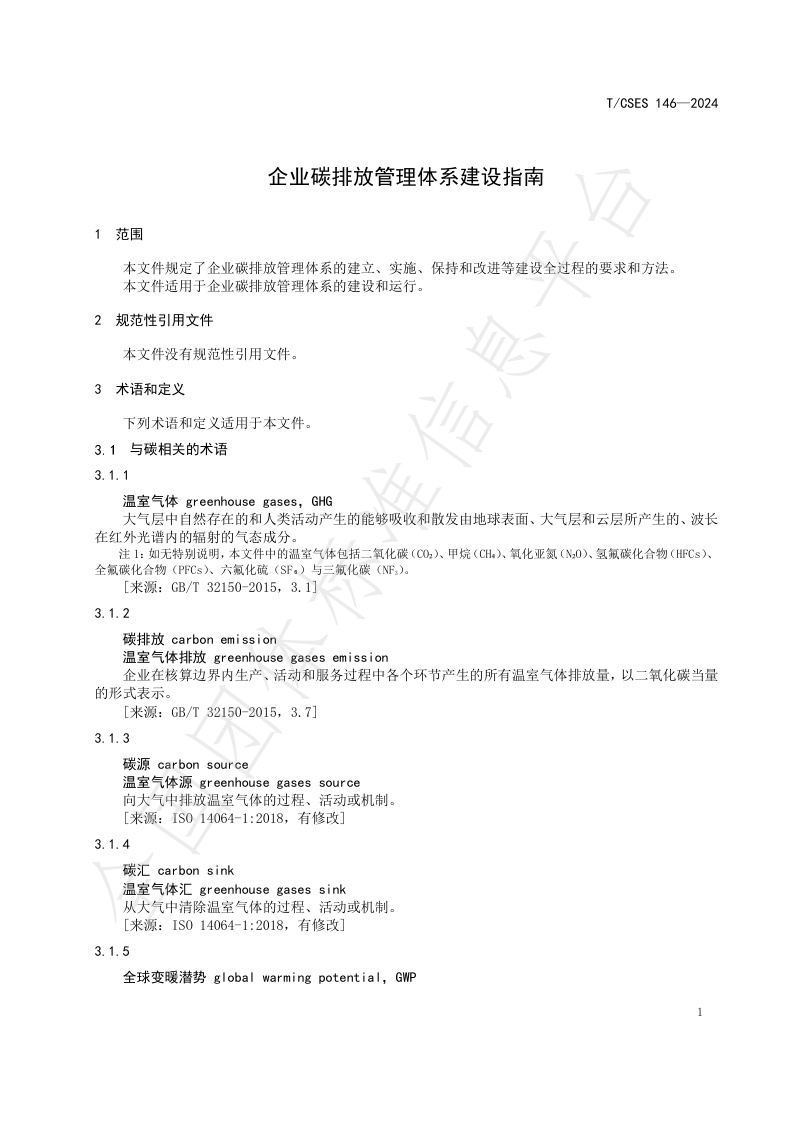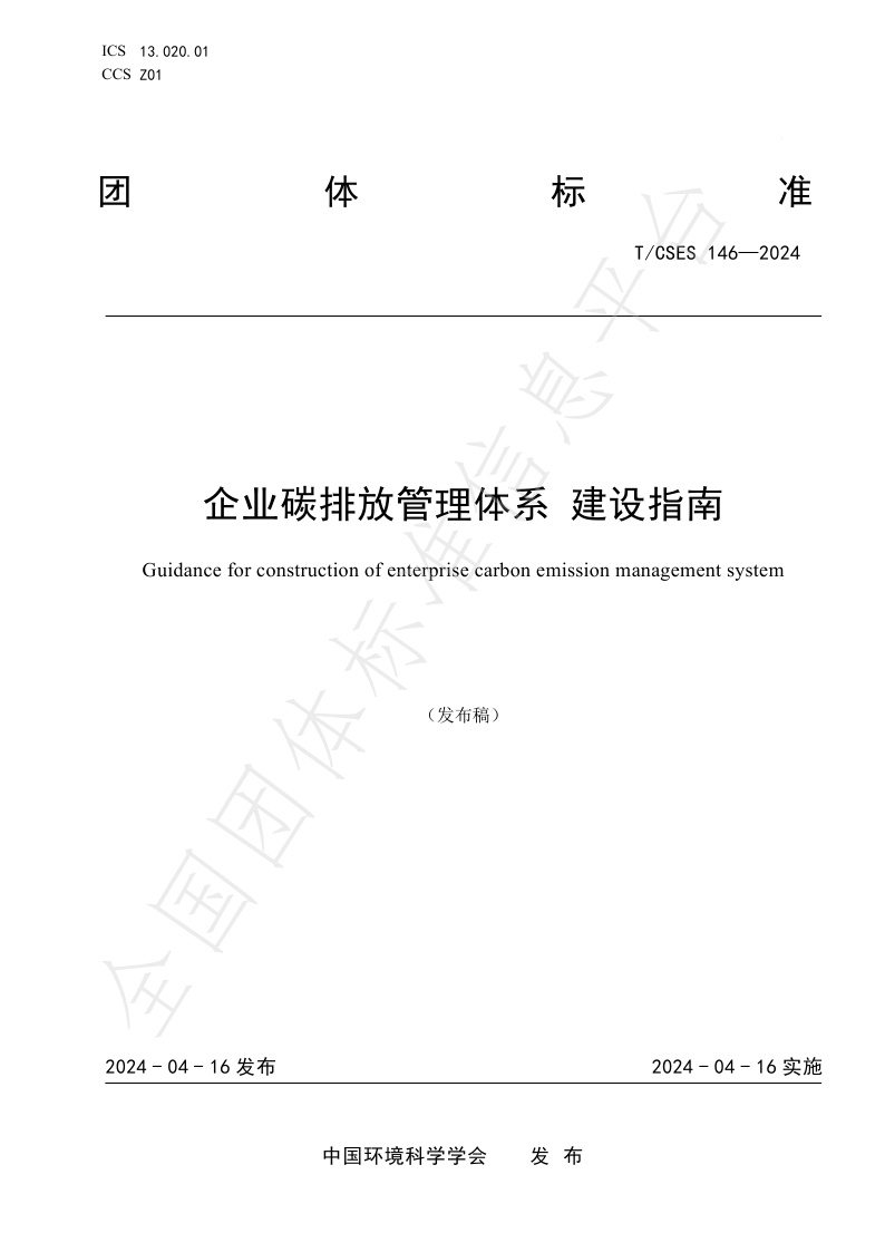 TCSES 146—2024《企业碳排放管理体系 建设指南》