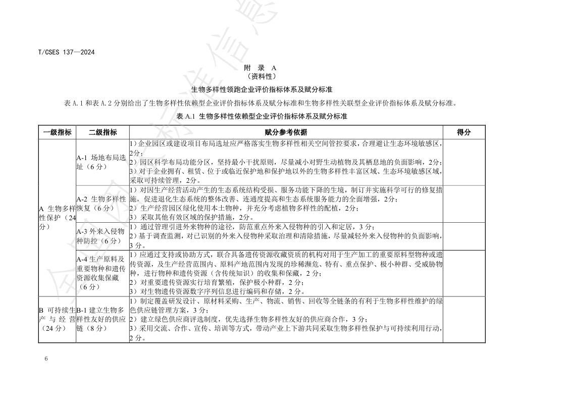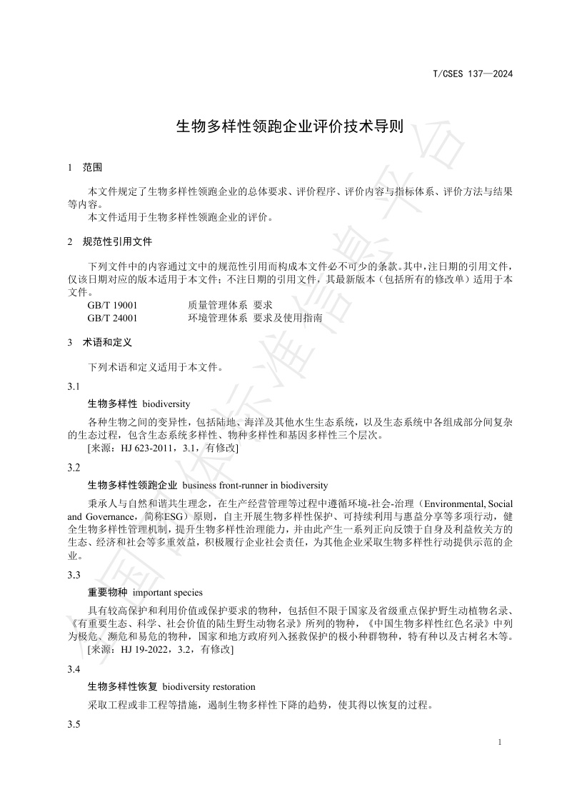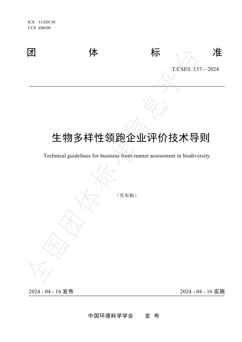 TCSES 137—2024《生物多样性领跑企业评价技术导则》