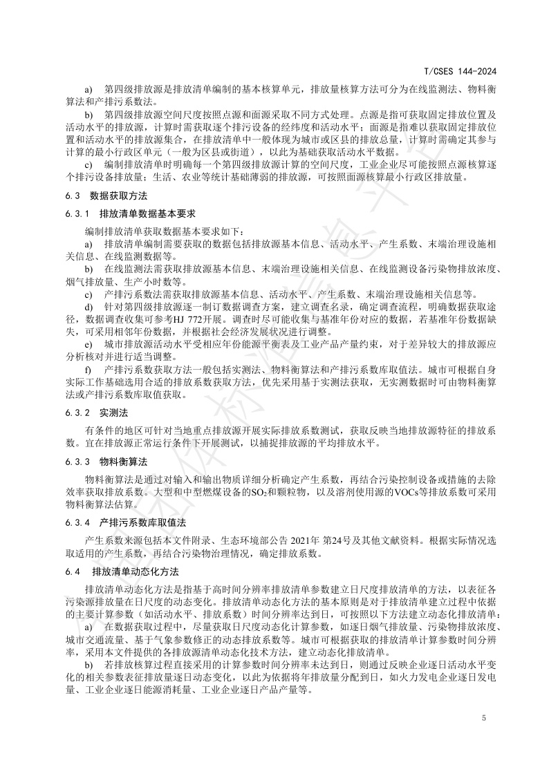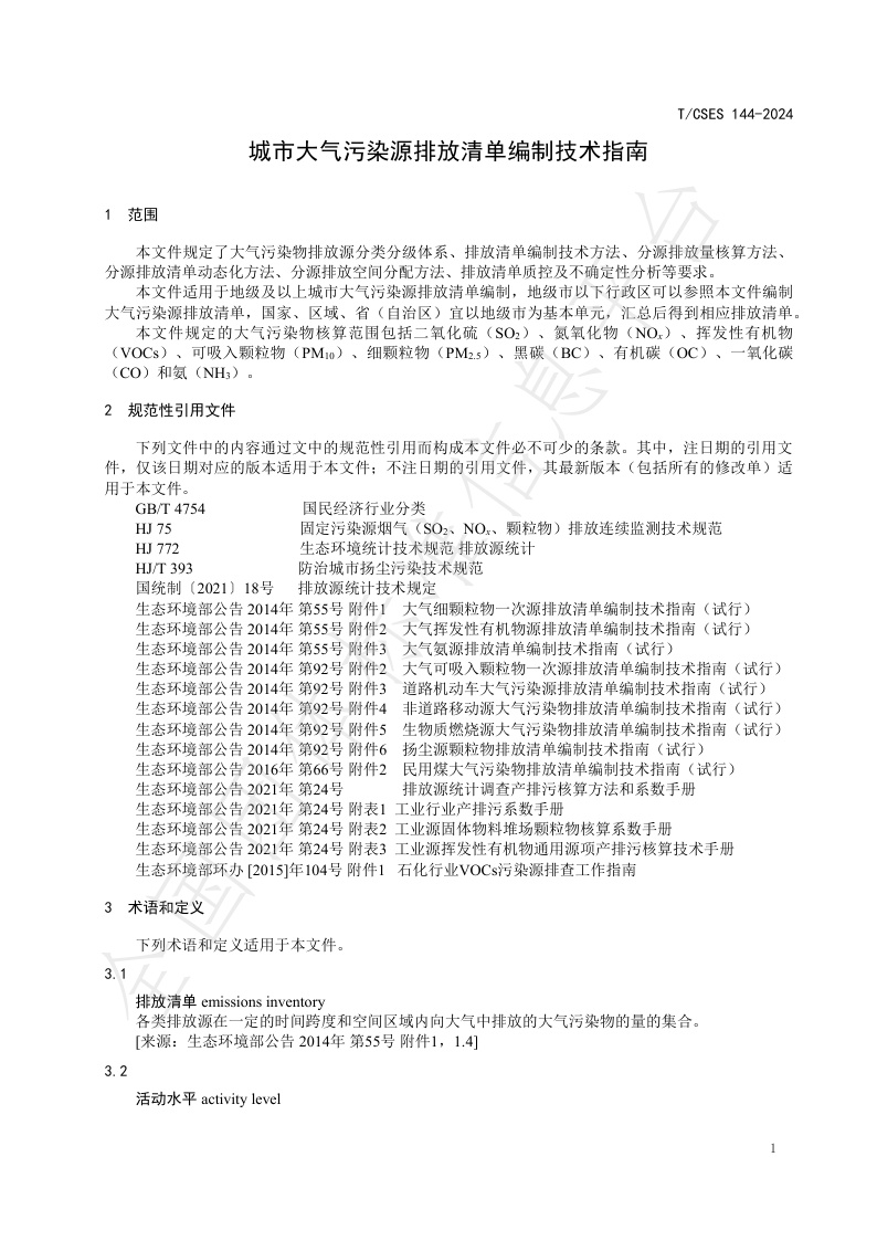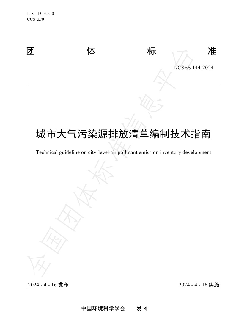 TCSES 144—2024《城市大气污染源排放清单编制技术指南》