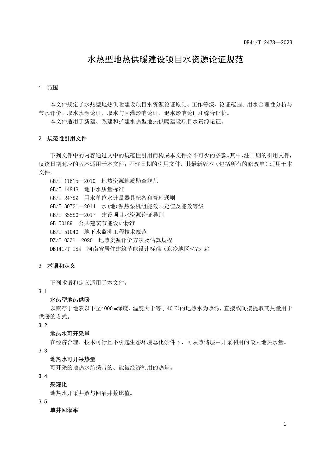 水热型地热供暖建设项目水资源论证规范