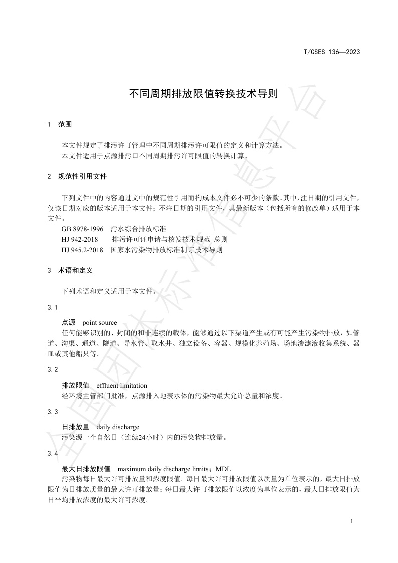 TCSES 136—2023《不同周期排放限值转换技术导则》