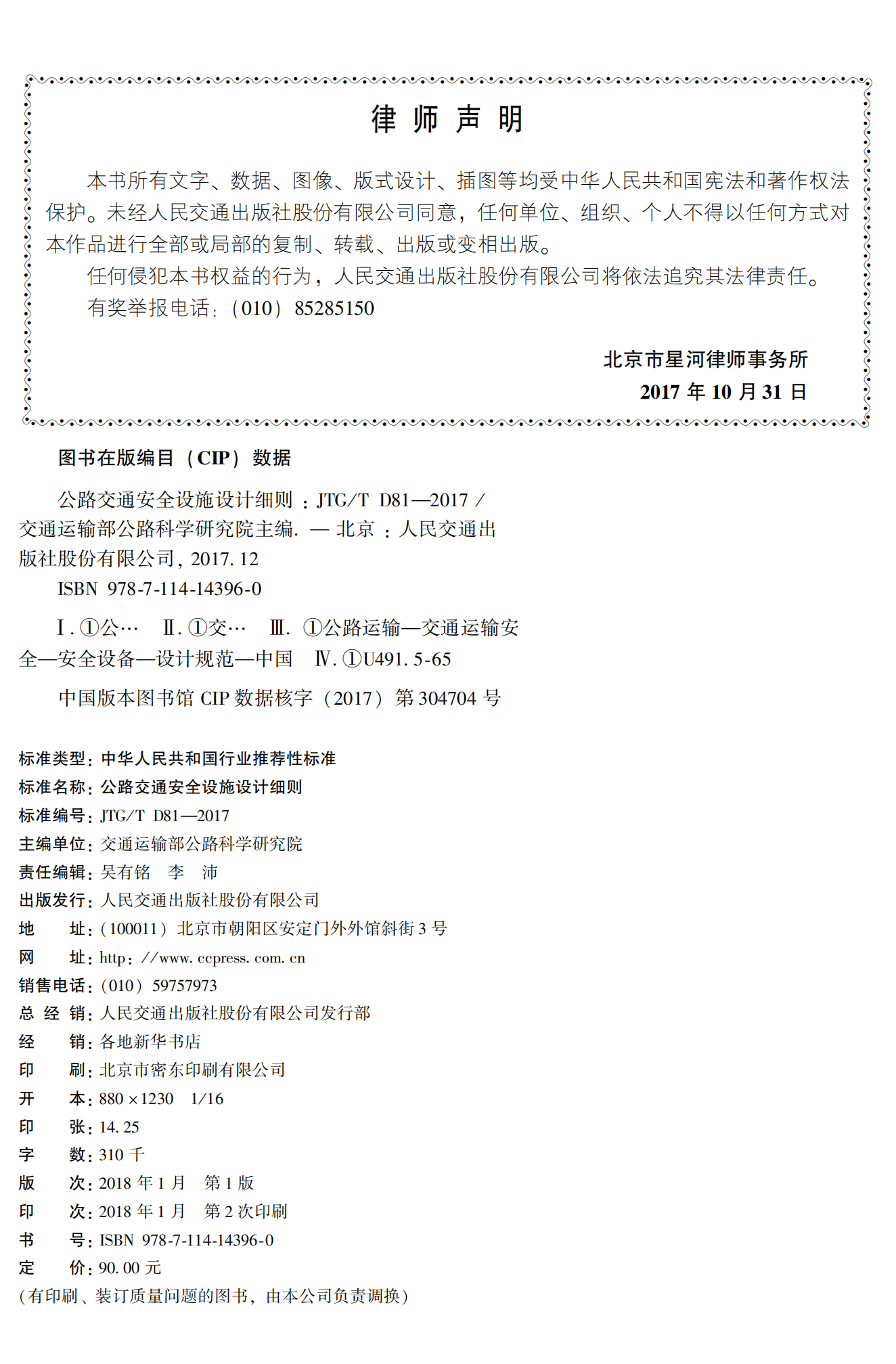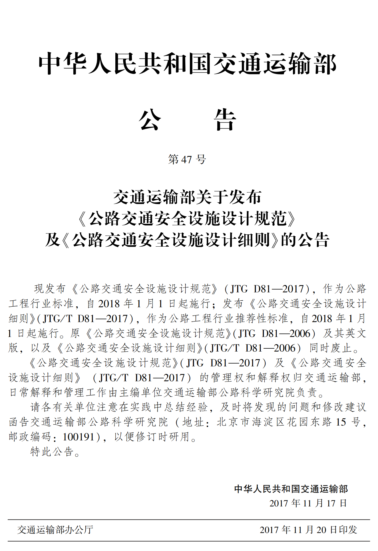 《公路交通安全设施设计细则》(JTG/T D81—2017)