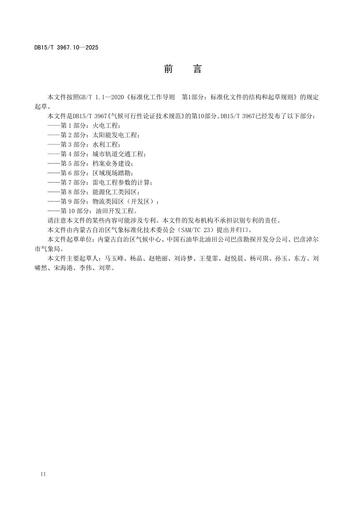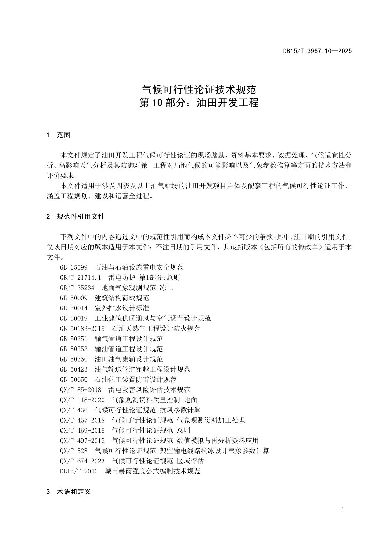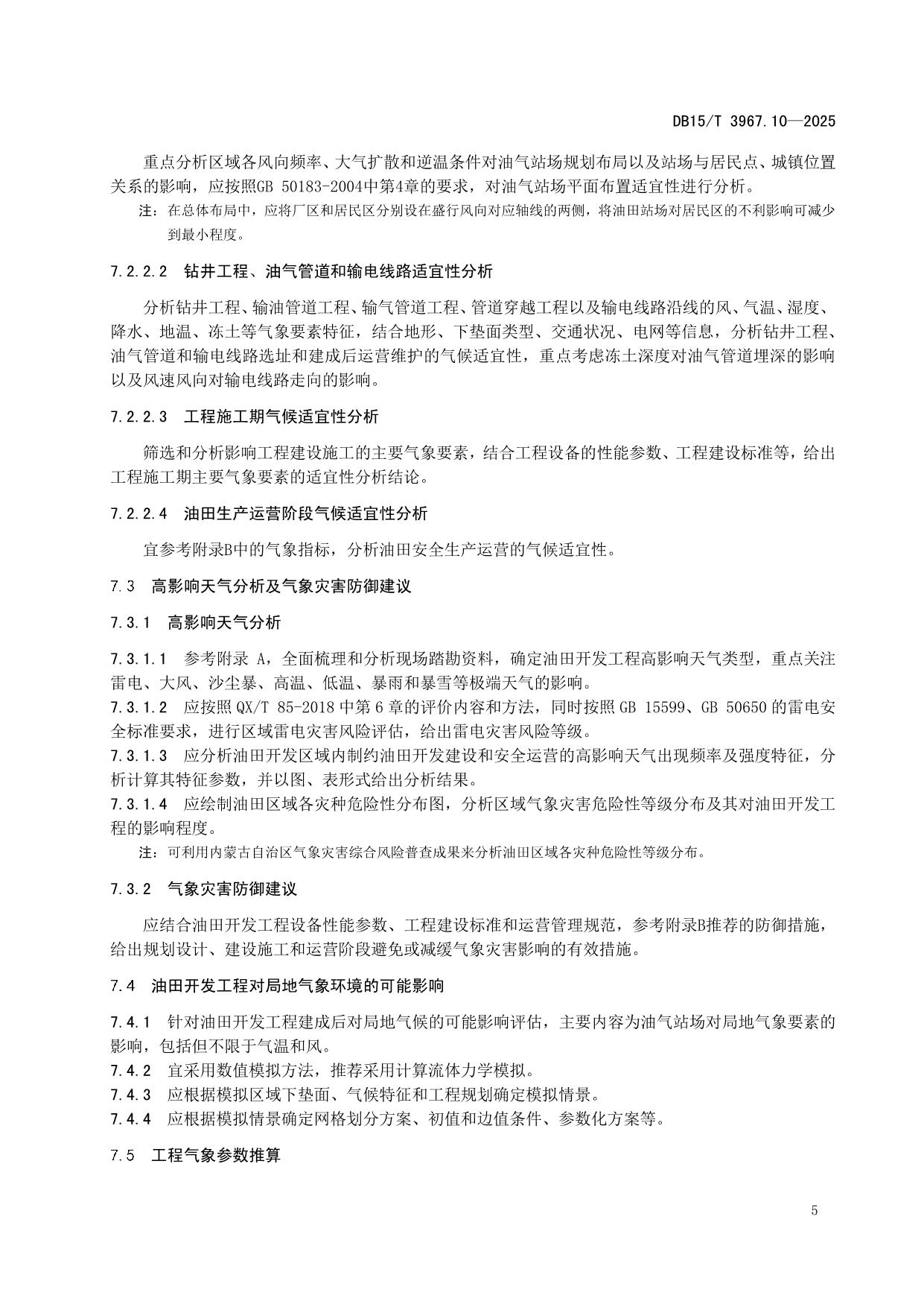 《气候可行性论证技术规范 第10部分:油田开发工程》(DB15/T 3967.10-2025)