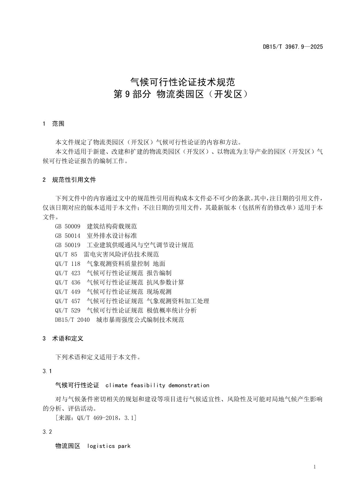 《气候可行性论证技术规范 第9部分 物流类园区(开发区)》(DB15/T 3967.9-2025)