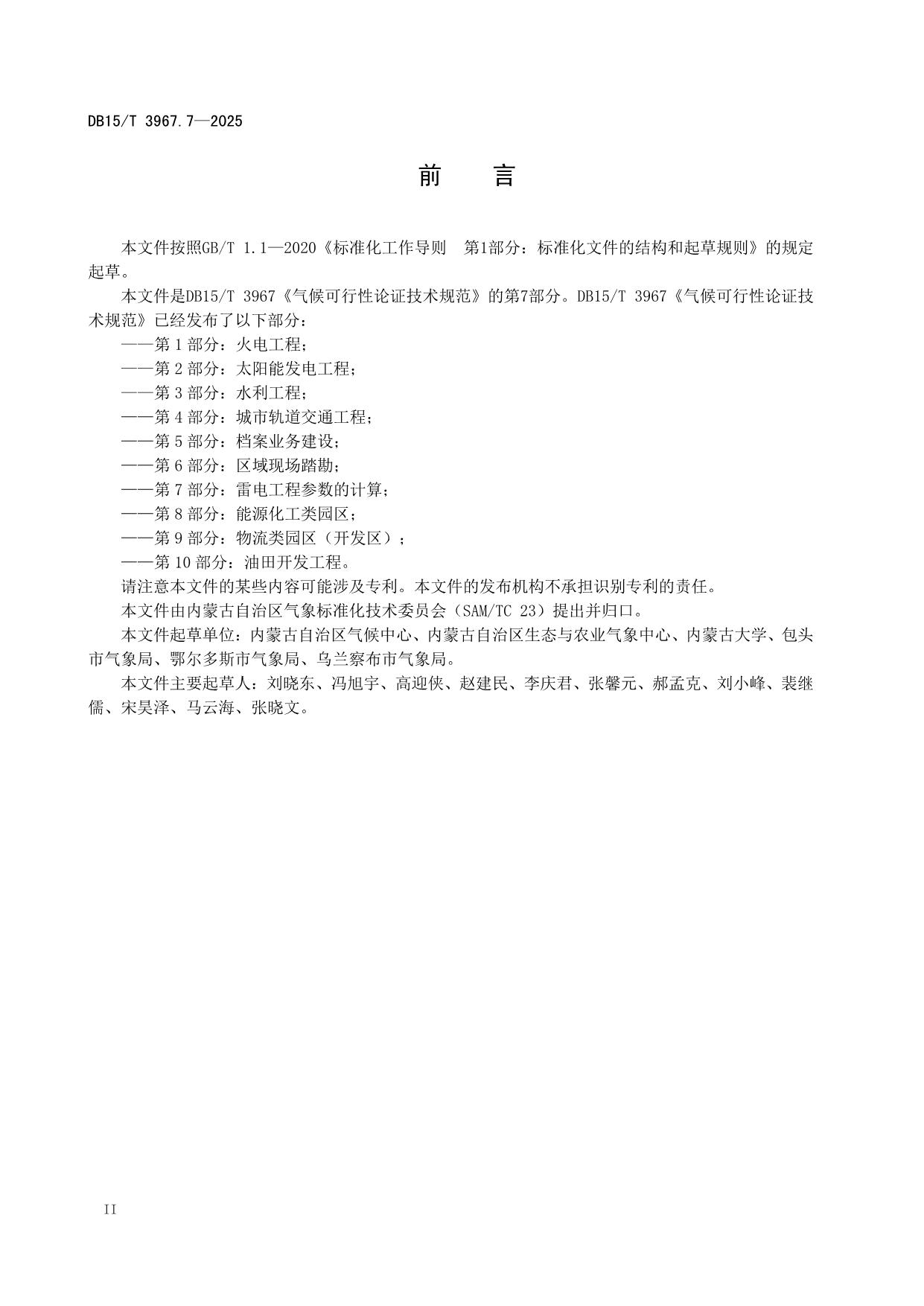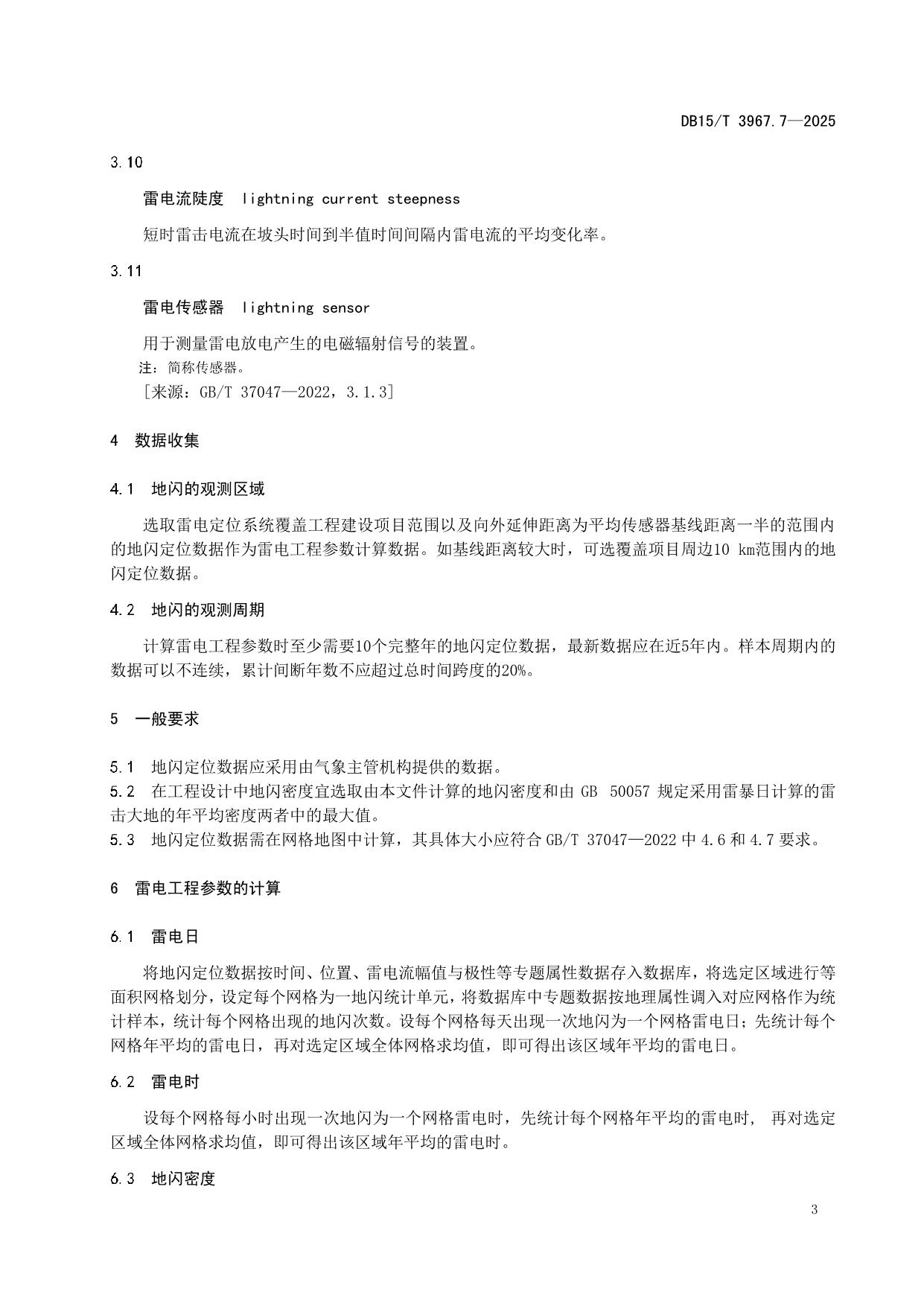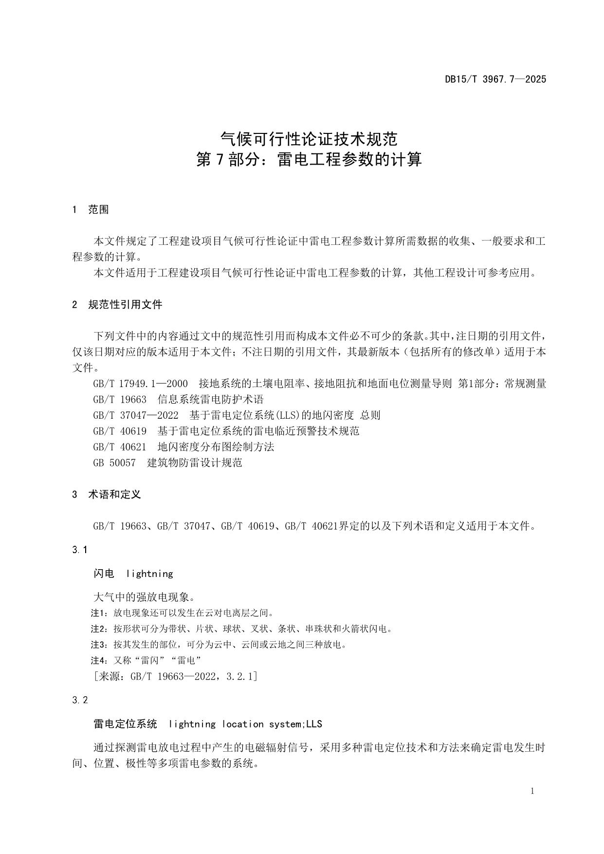 《气候可行性论证技术规范 第7部分:雷电工程参数的计算》(DB15/T 3967.7-2025)