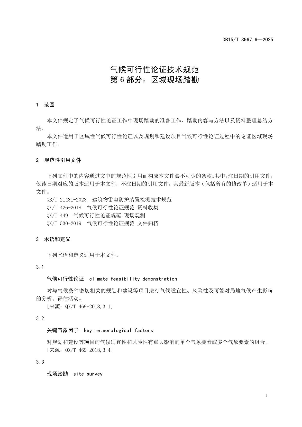 《气候可行性论证技术规范 第6部分:区域现场踏勘》(DB15/T 3967.6-2025)