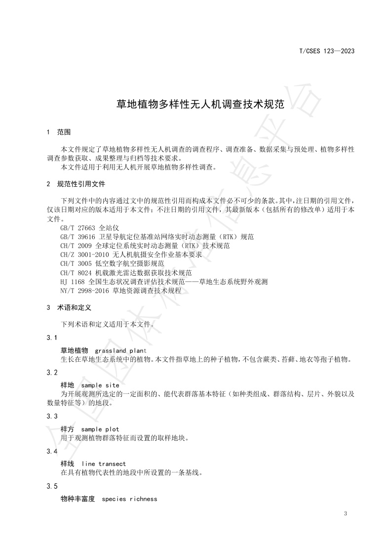 TCSES 123—2023《草地植物多样性无人机调查技术规范》