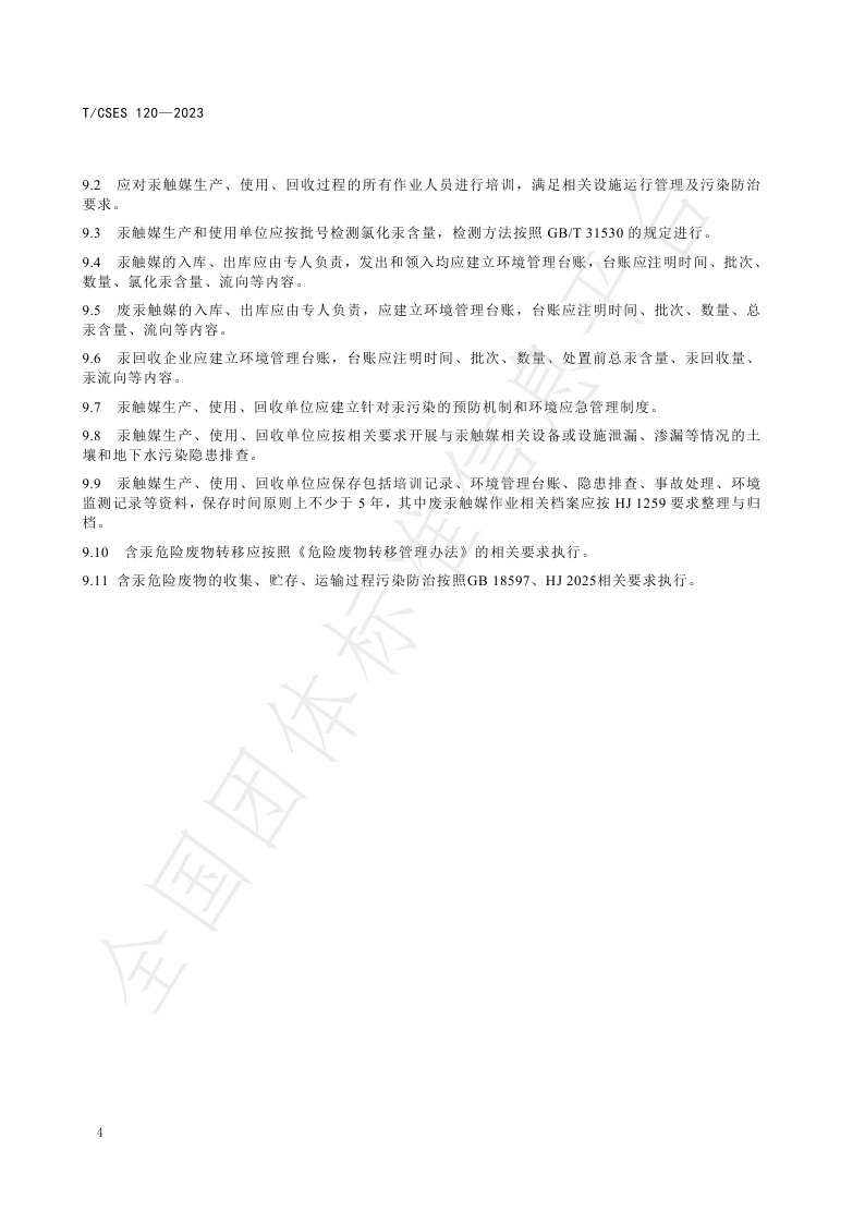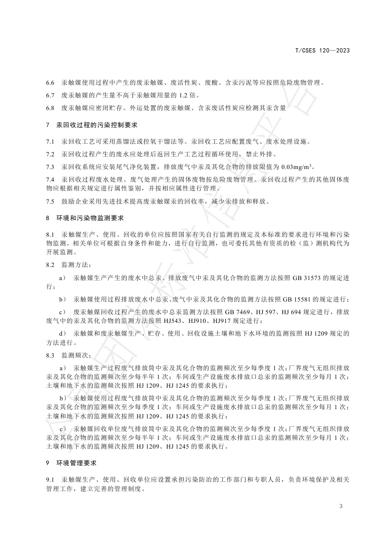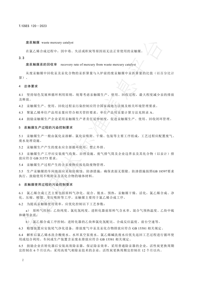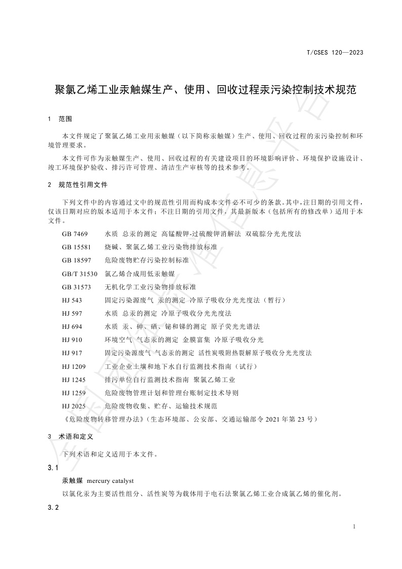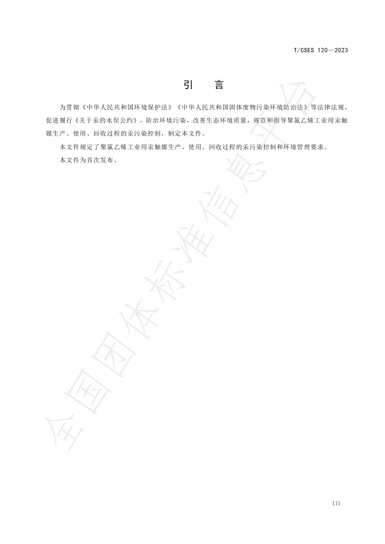 TCSES 120—2023《聚氯乙烯工业汞触媒生产、使用、回收过程汞污染控制技术规范》