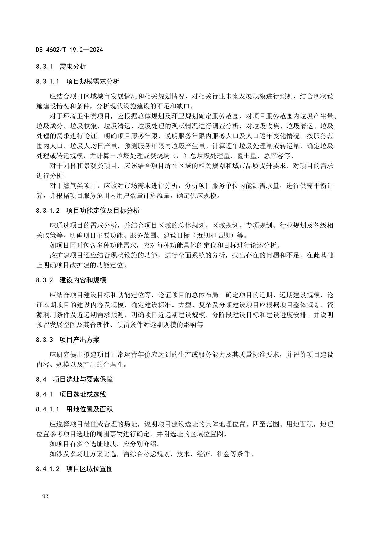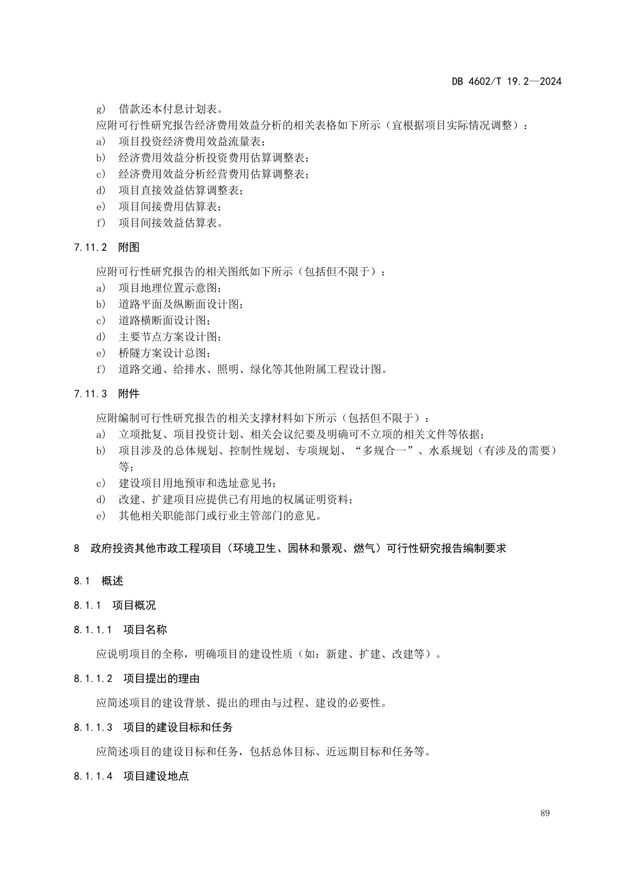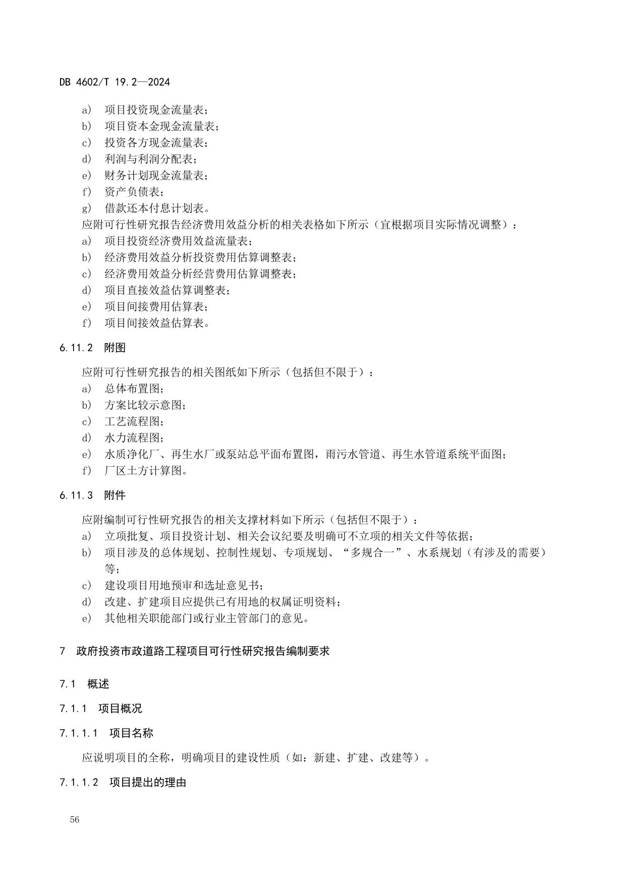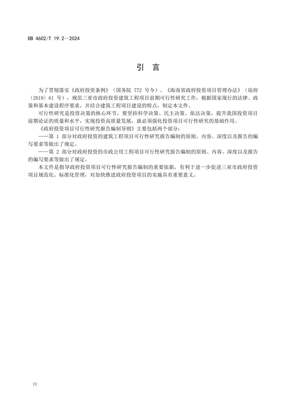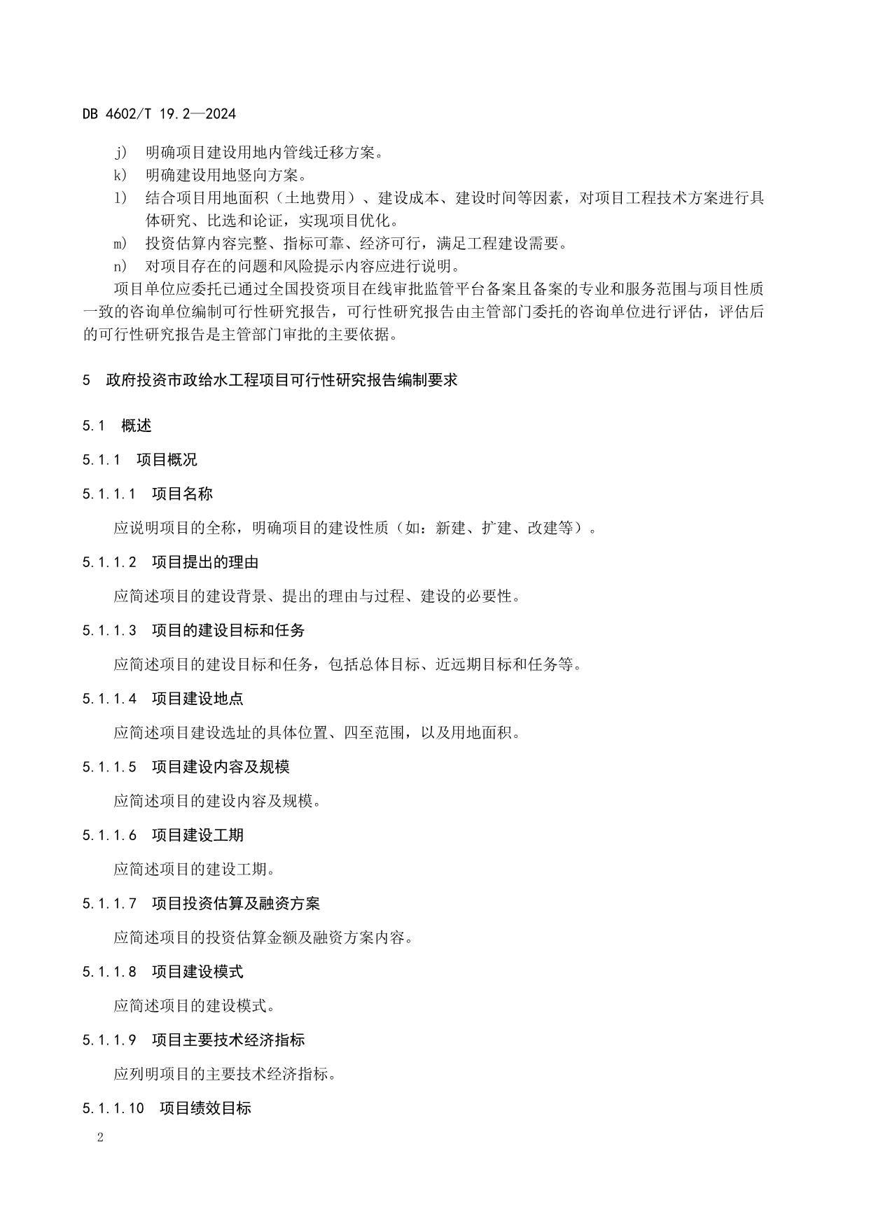 《政府投资项目可行性研究报告编制导则 第2部分:市政公用工程》(DB4602/T19.2-2024)