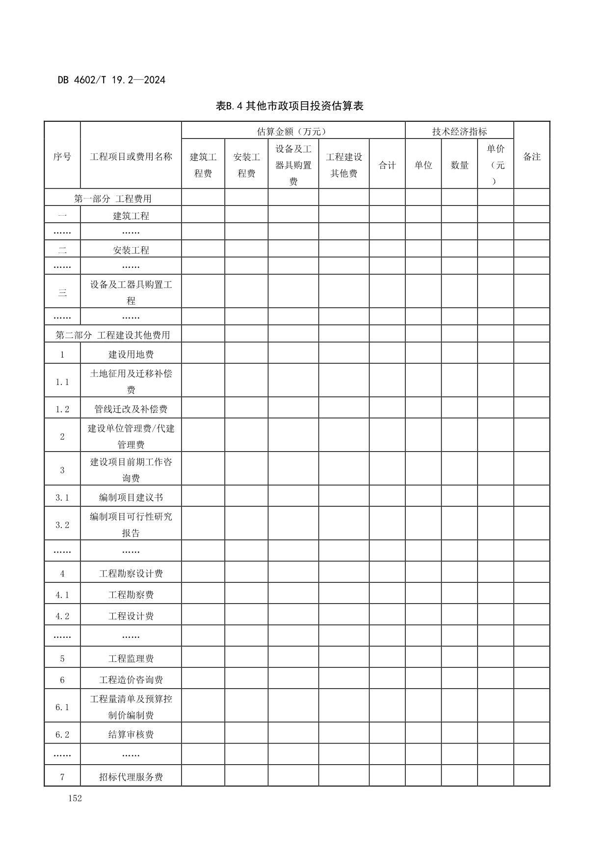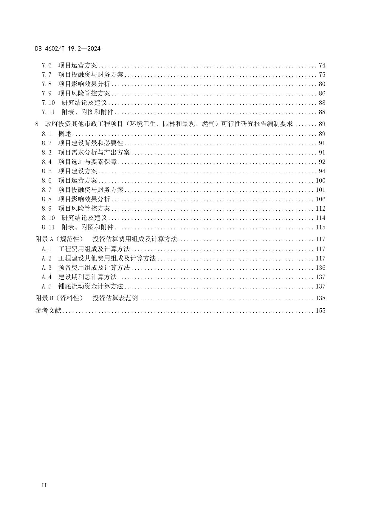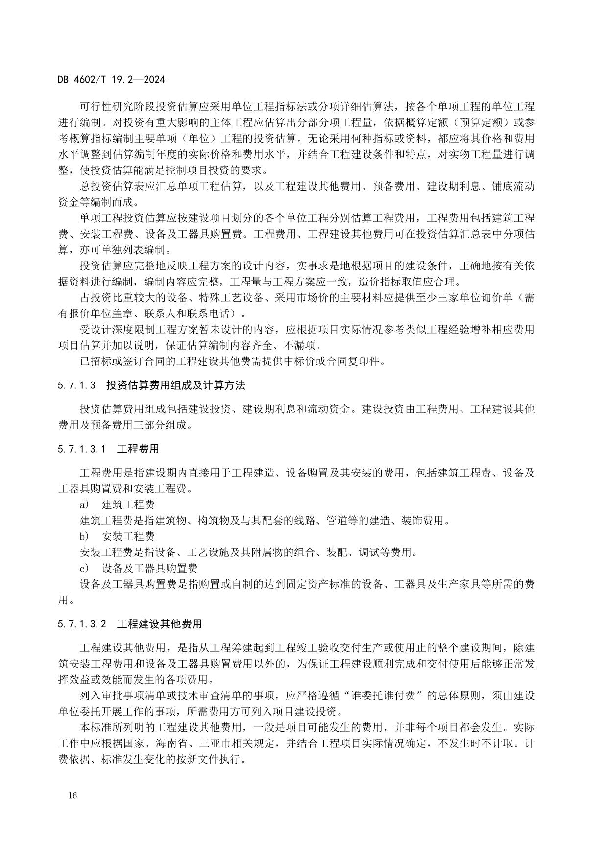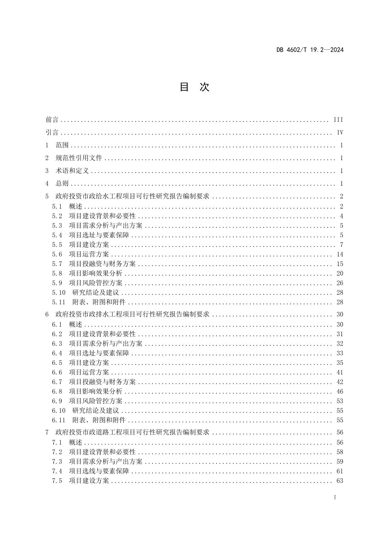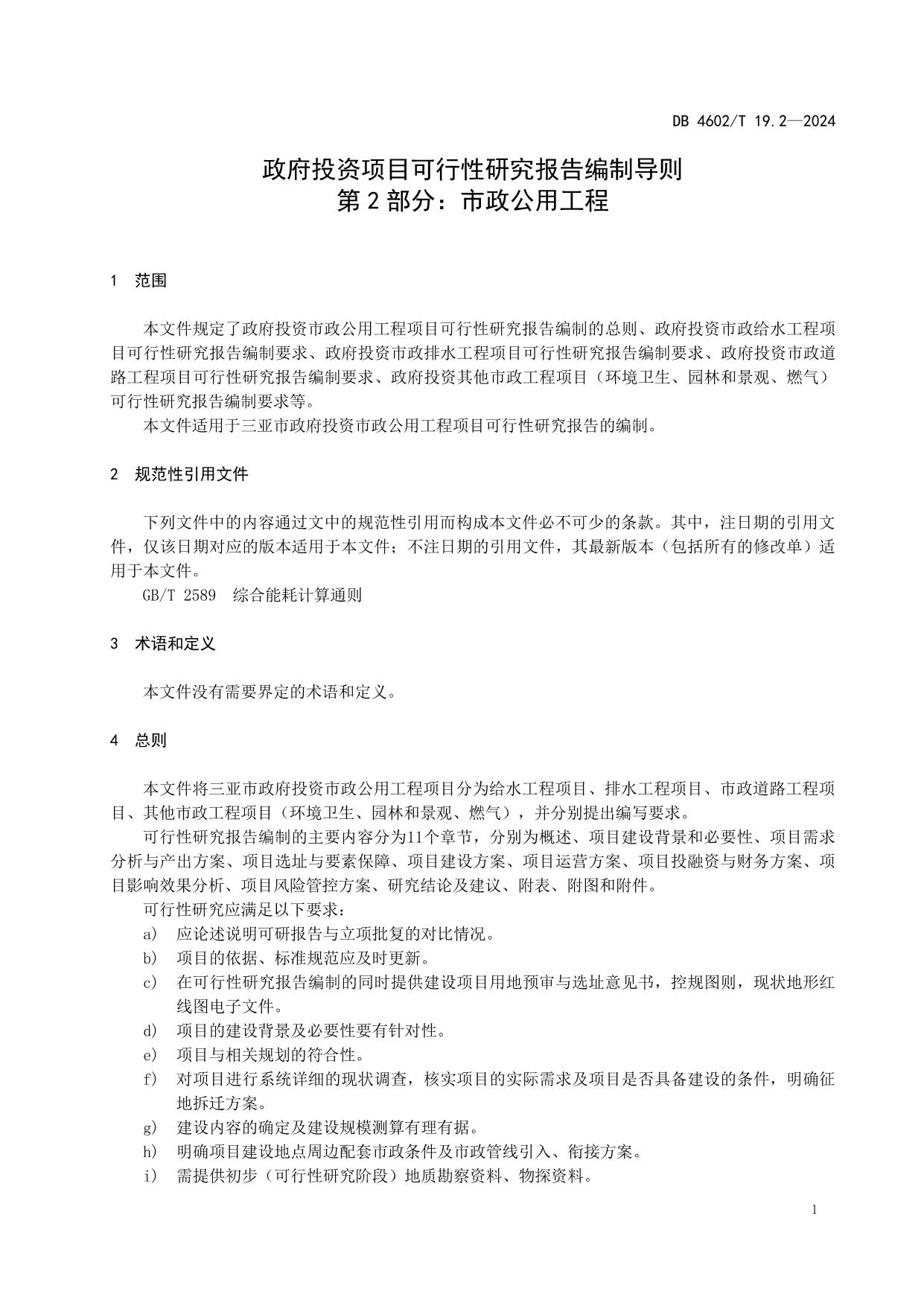 《政府投资项目可行性研究报告编制导则 第2部分:市政公用工程》(DB4602/T19.2-2024)