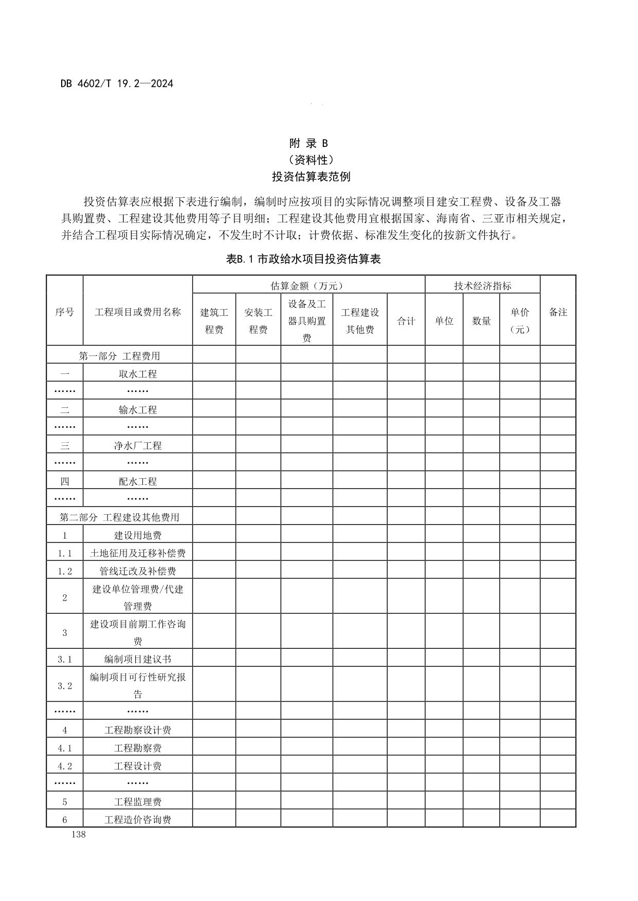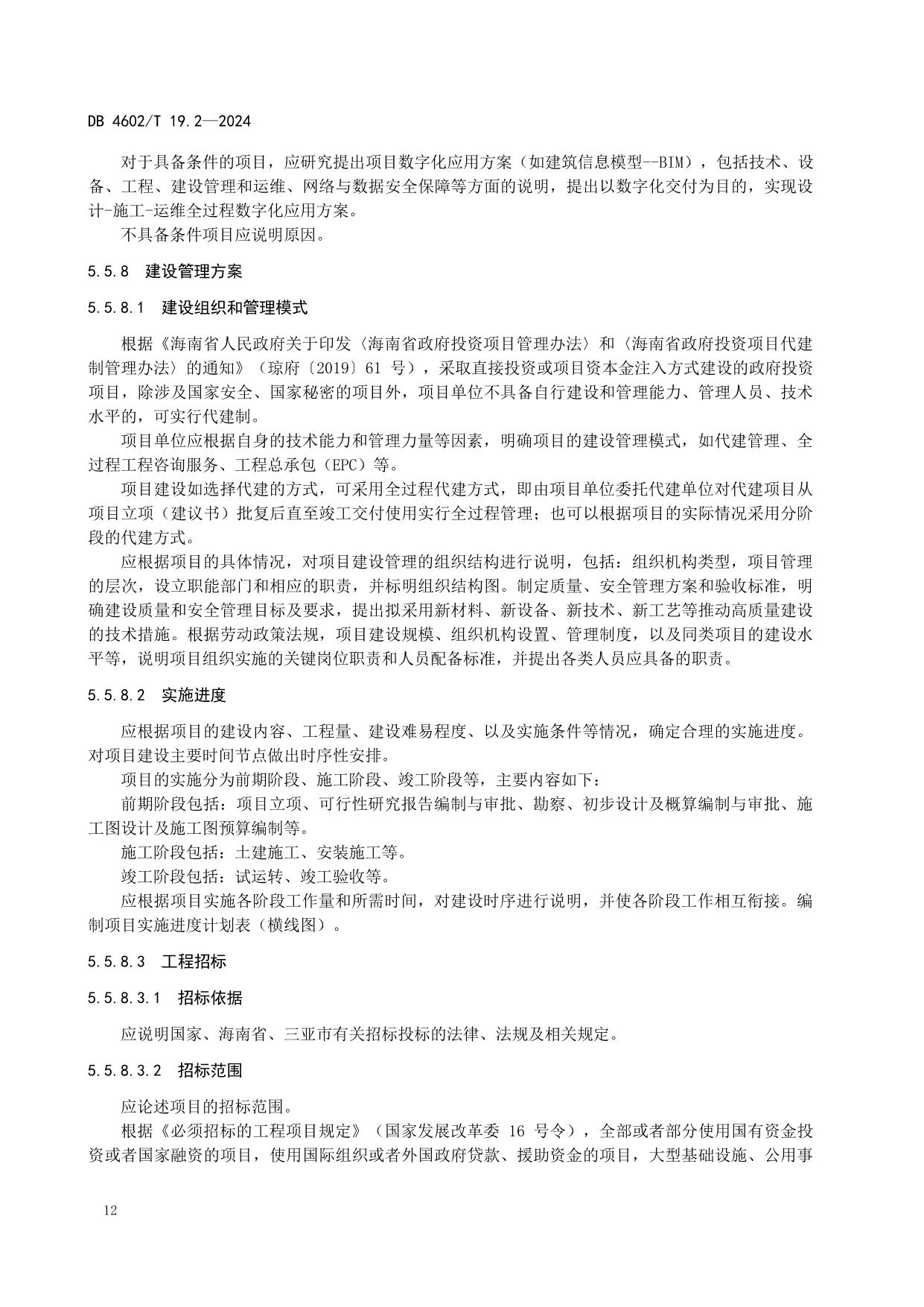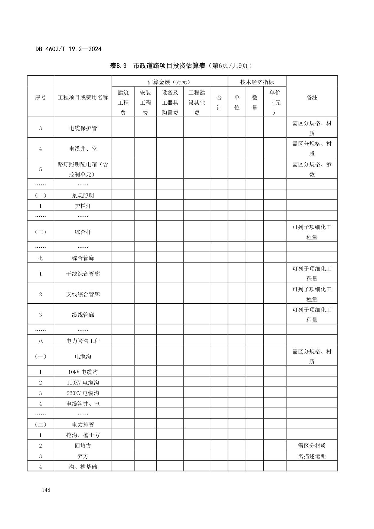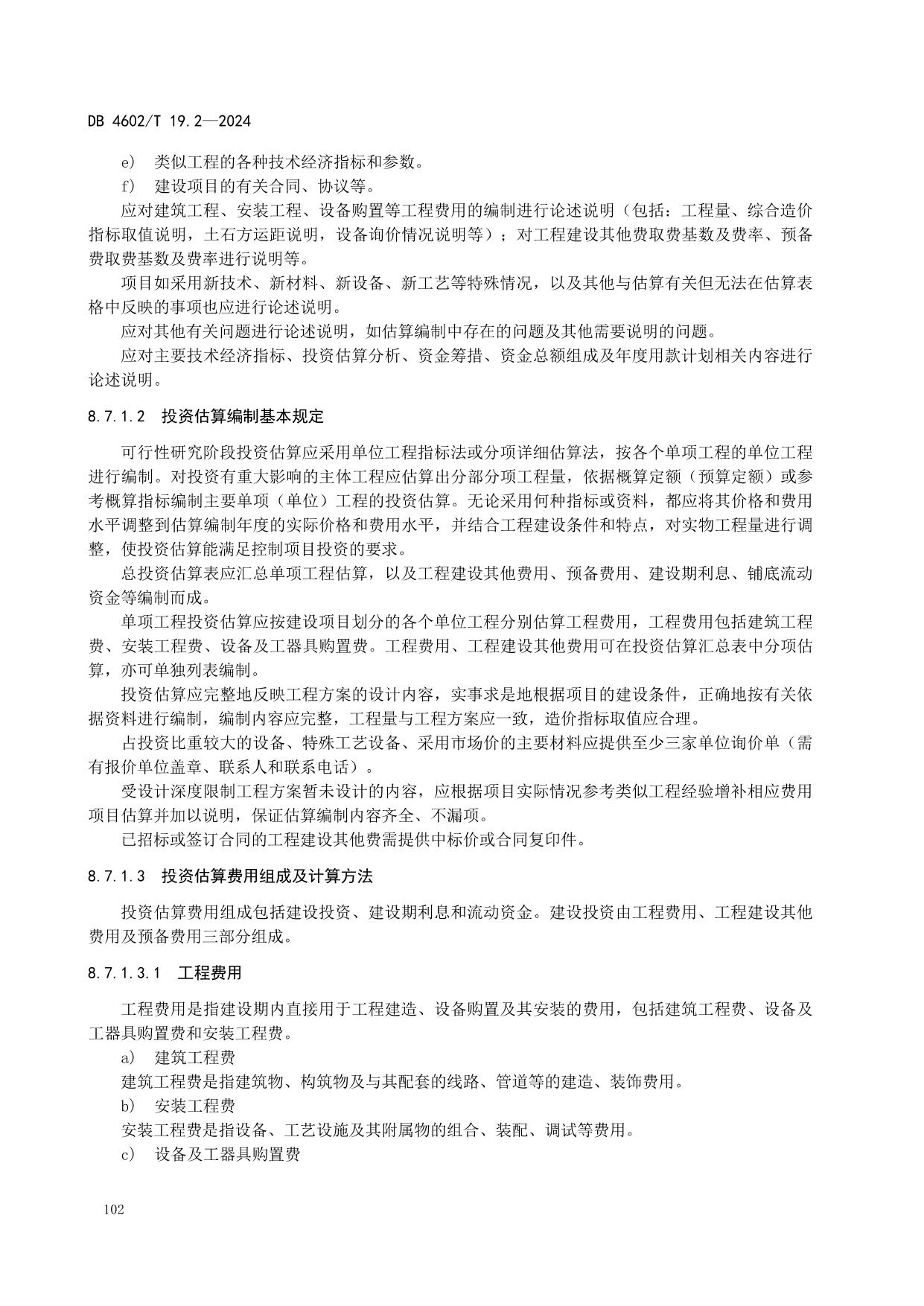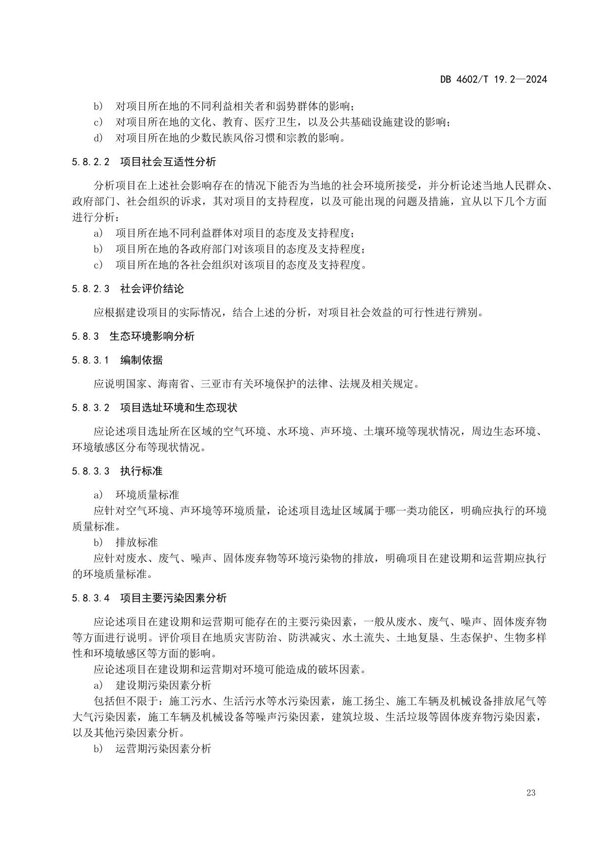 《政府投资项目可行性研究报告编制导则 第2部分:市政公用工程》(DB4602/T19.2-2024)