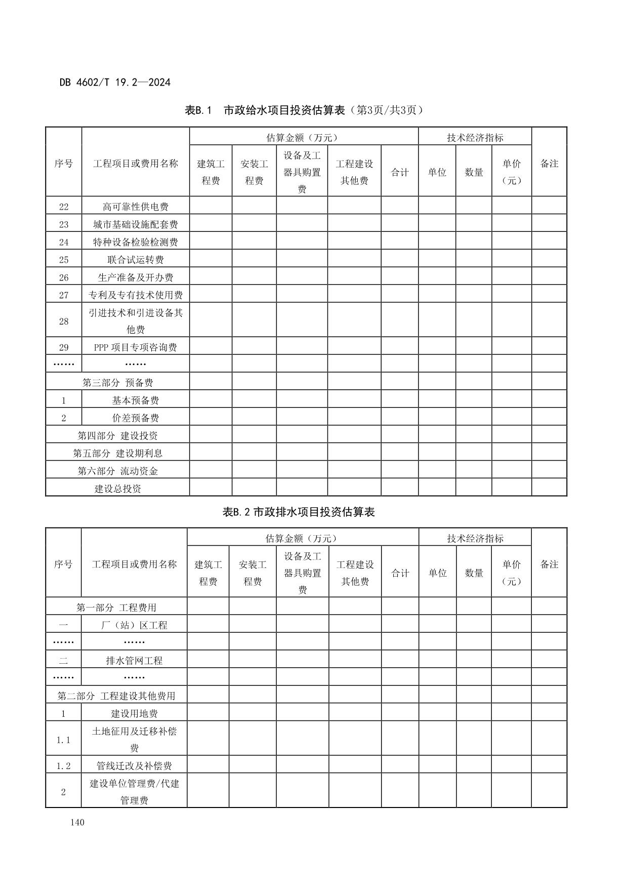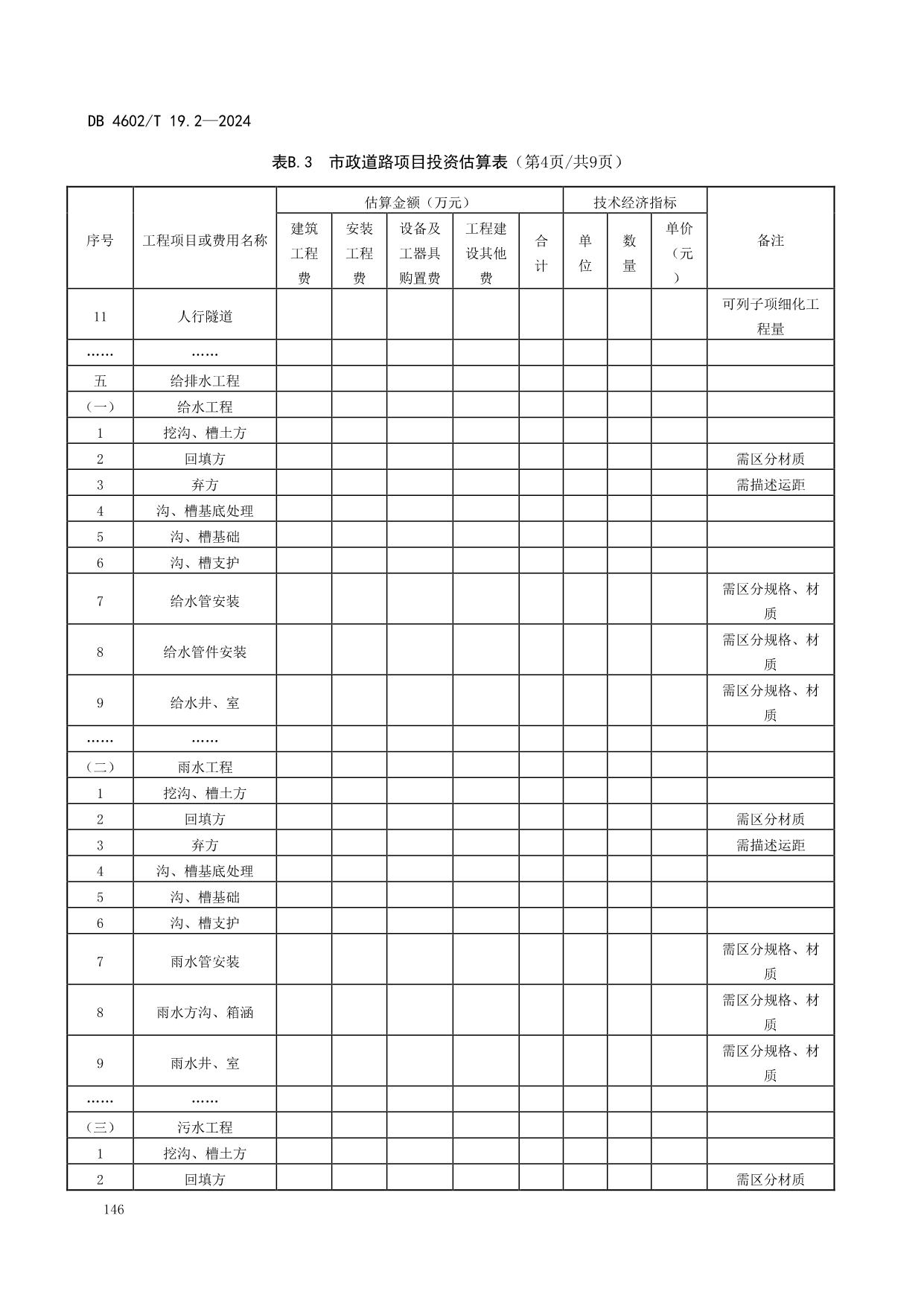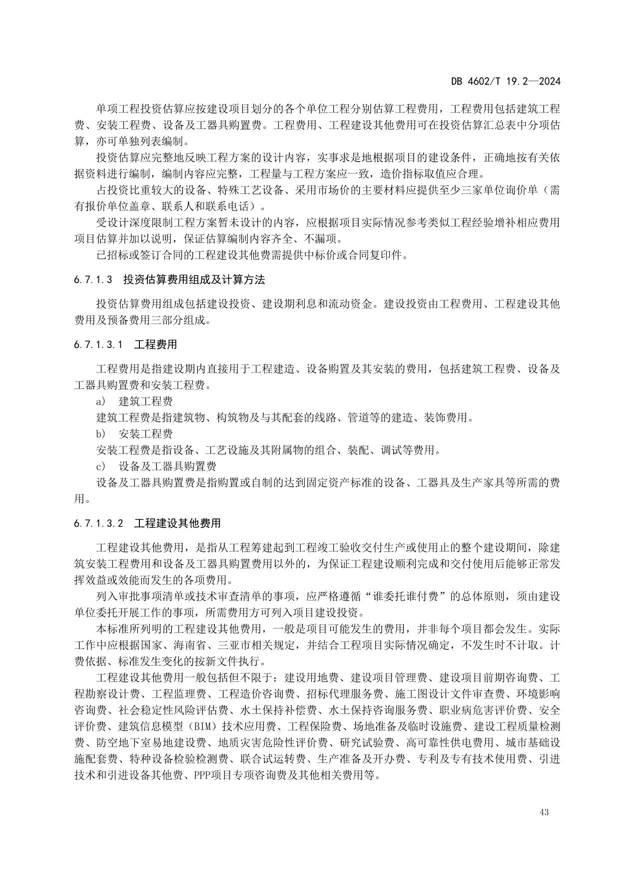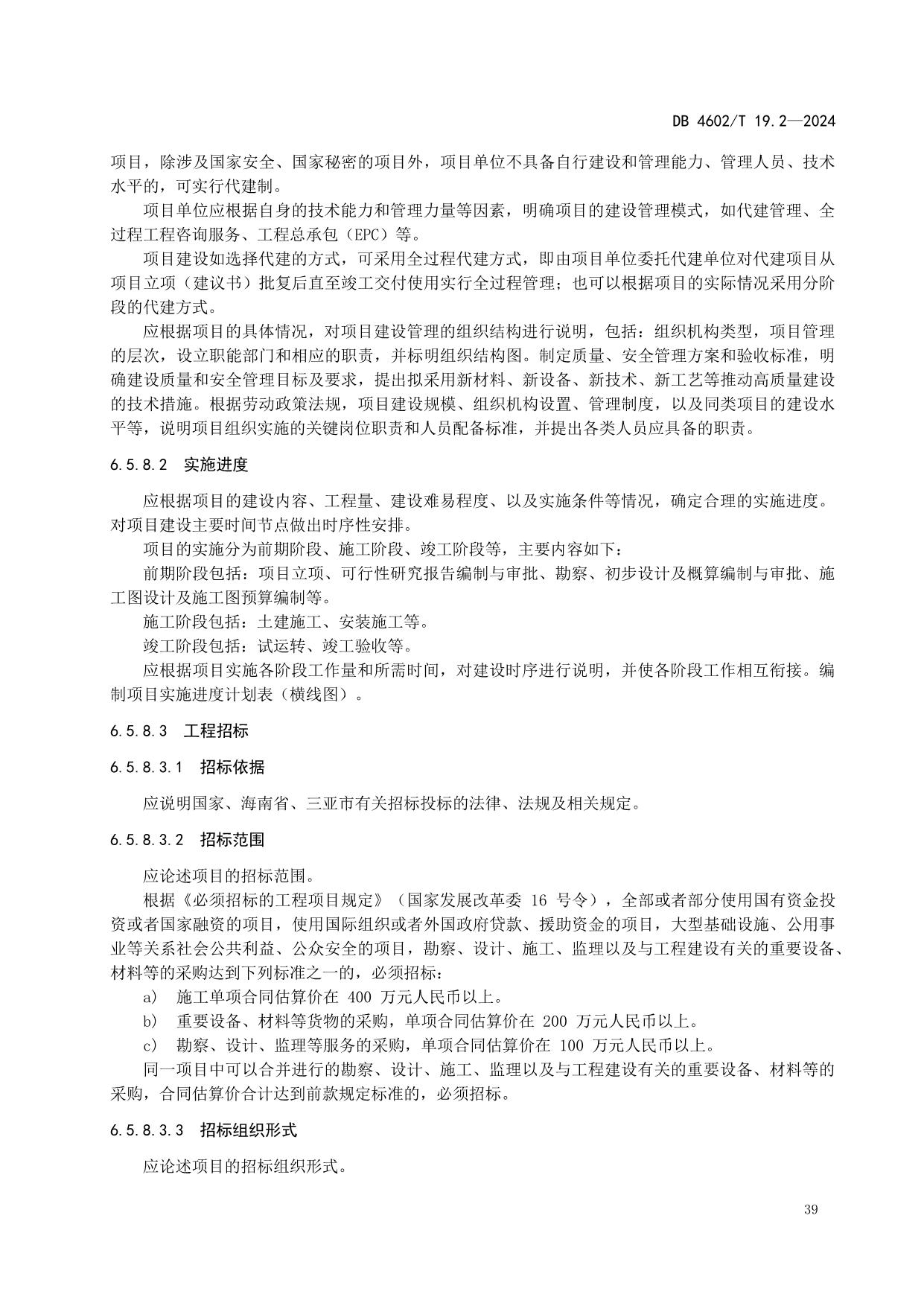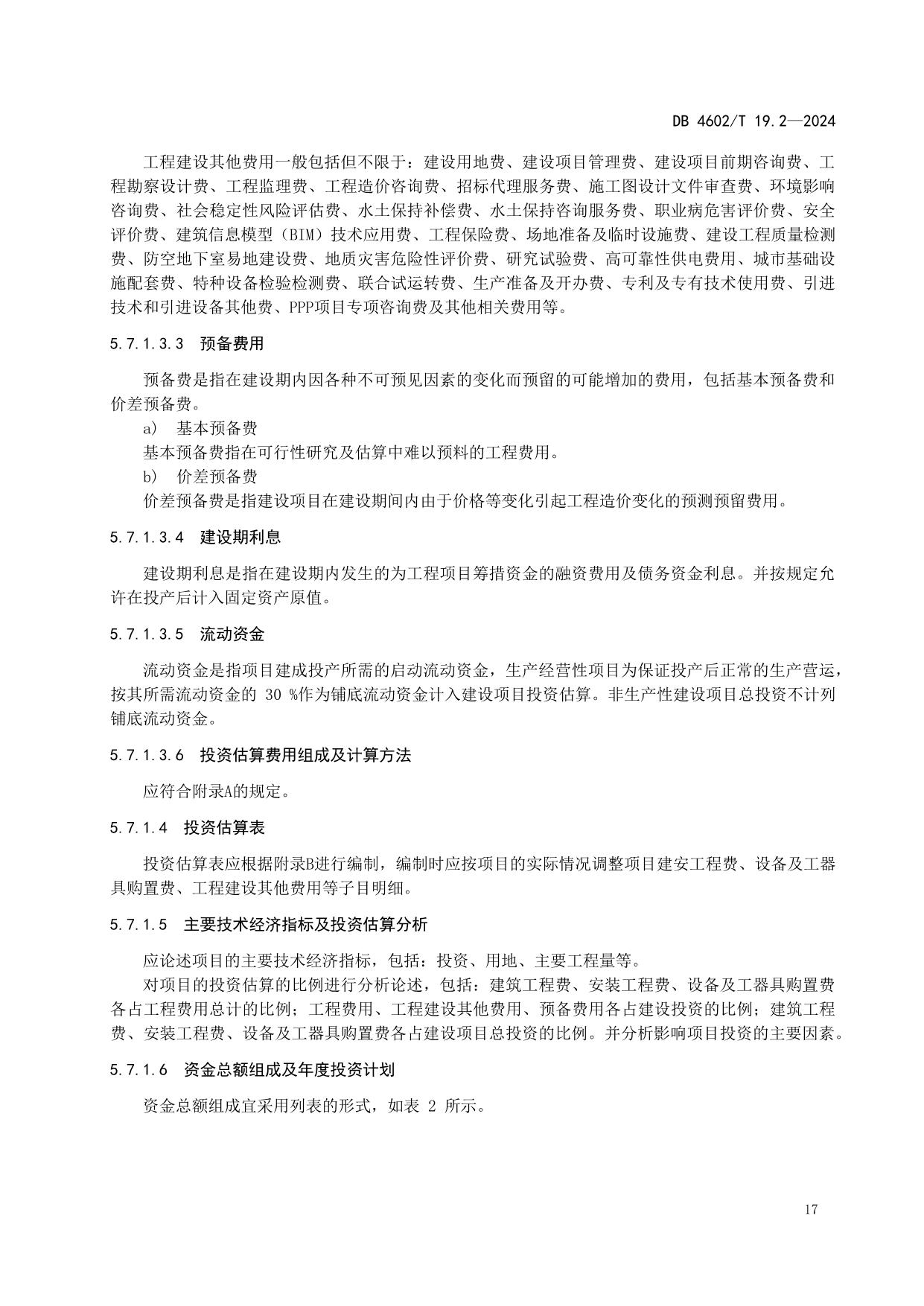 《政府投资项目可行性研究报告编制导则 第2部分:市政公用工程》(DB4602/T19.2-2024)