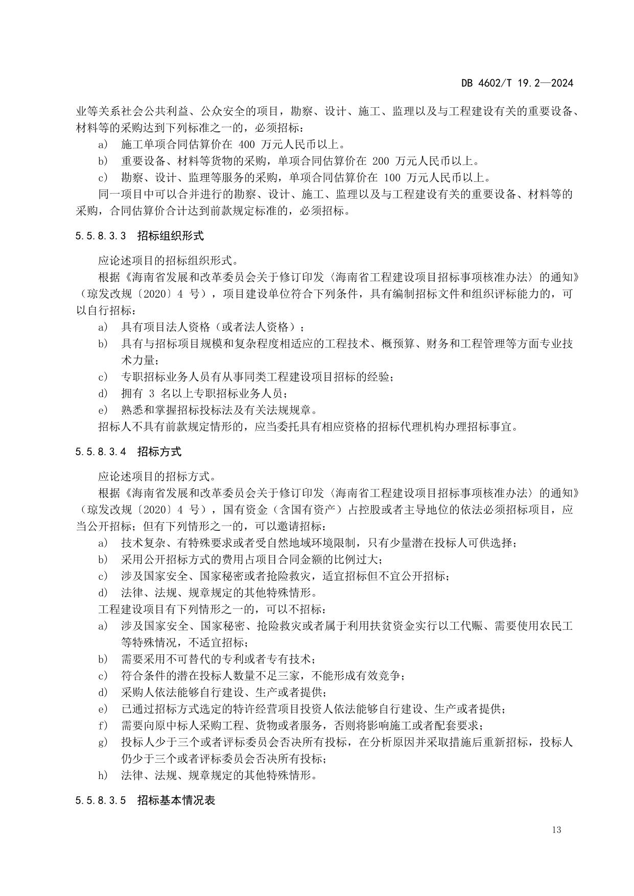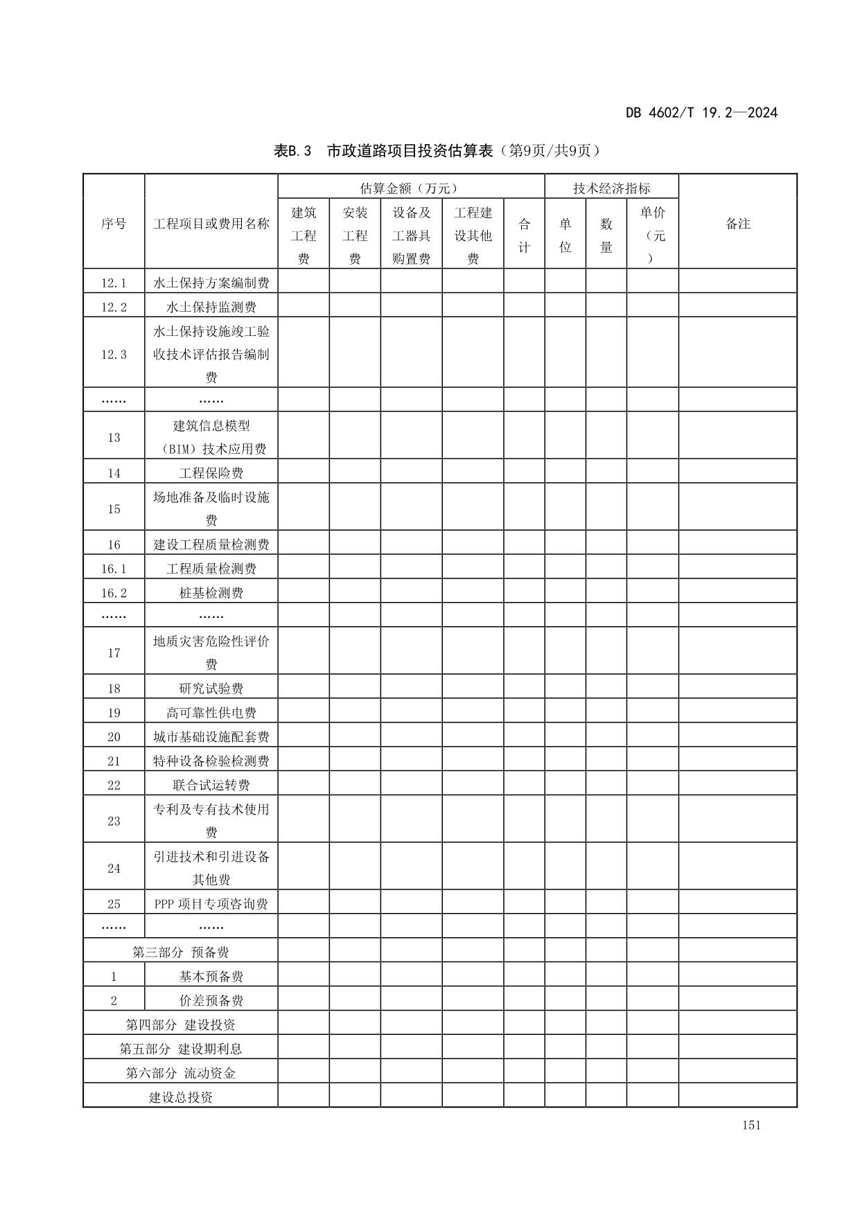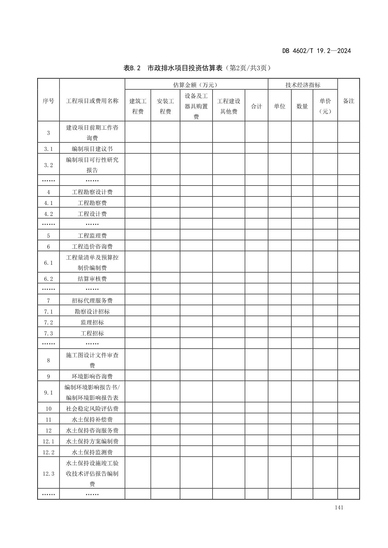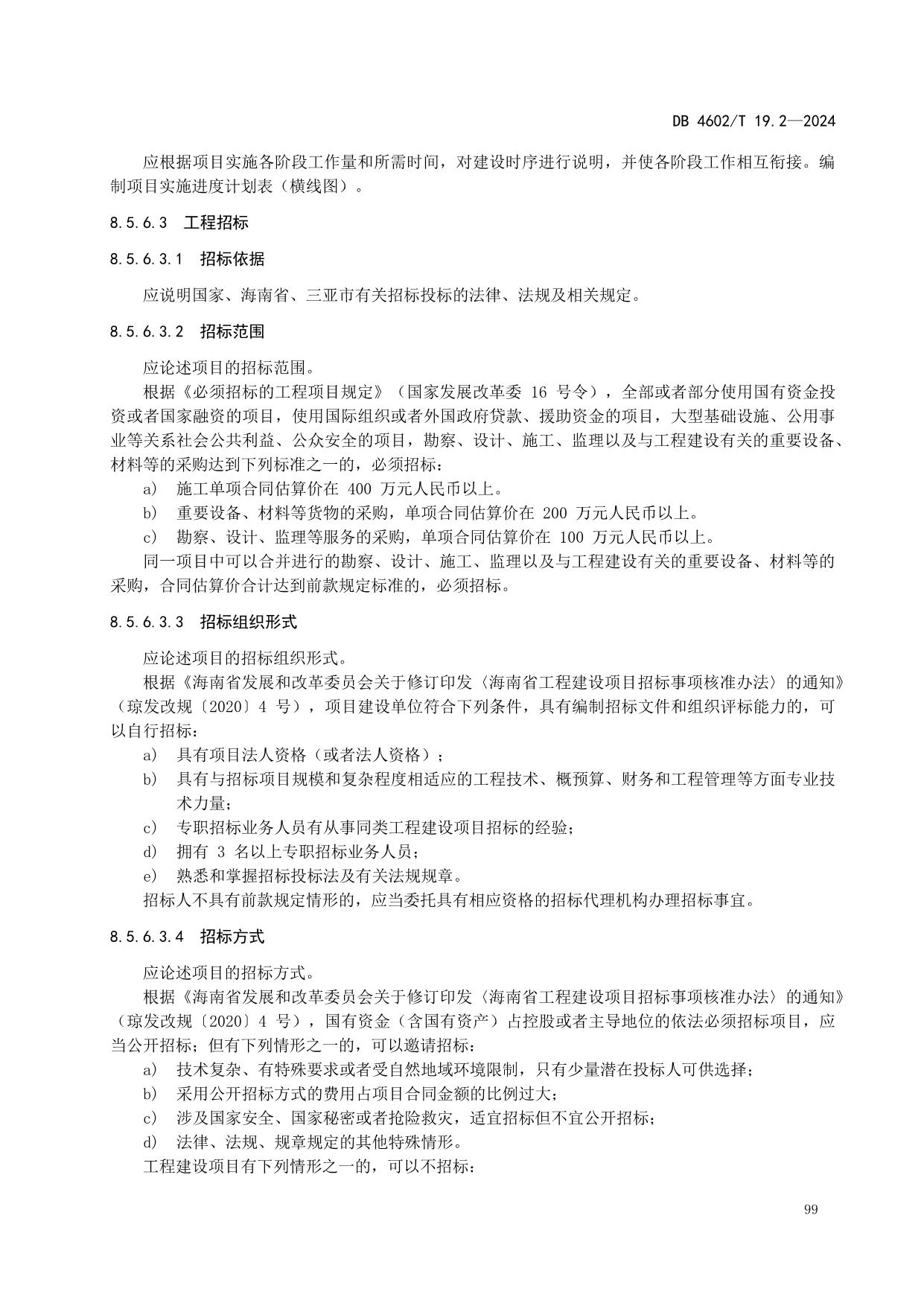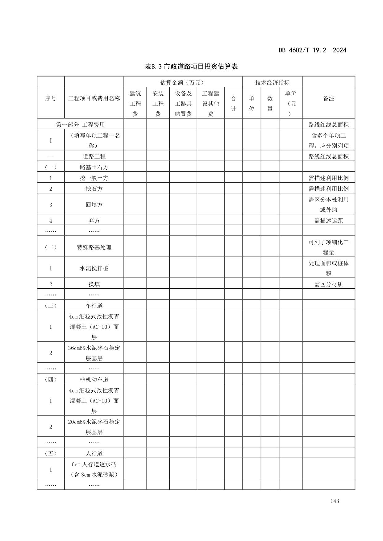 《政府投资项目可行性研究报告编制导则 第2部分:市政公用工程》(DB4602/T19.2-2024)