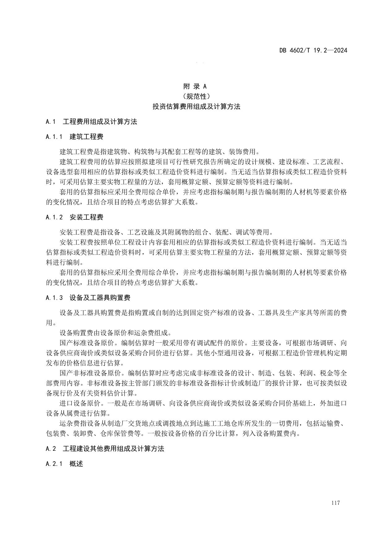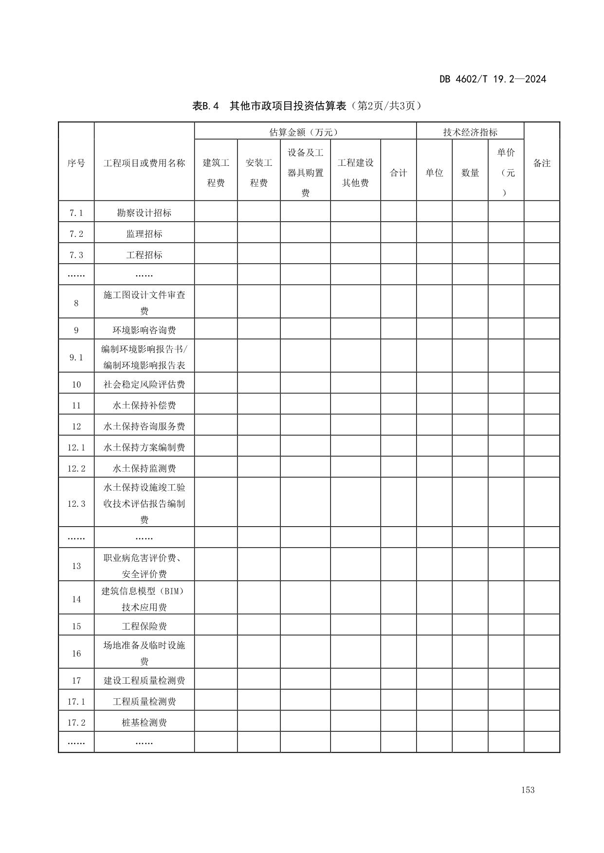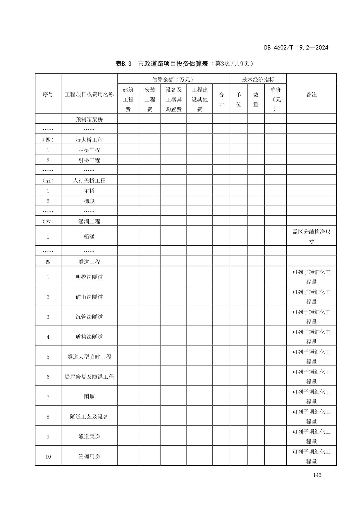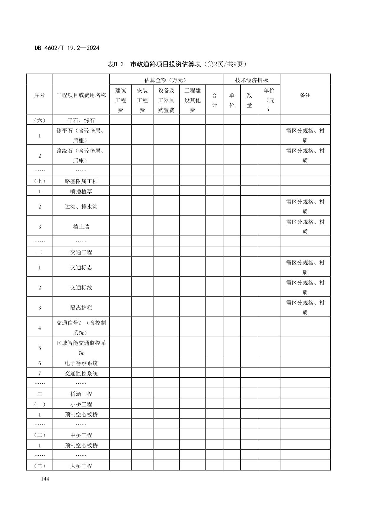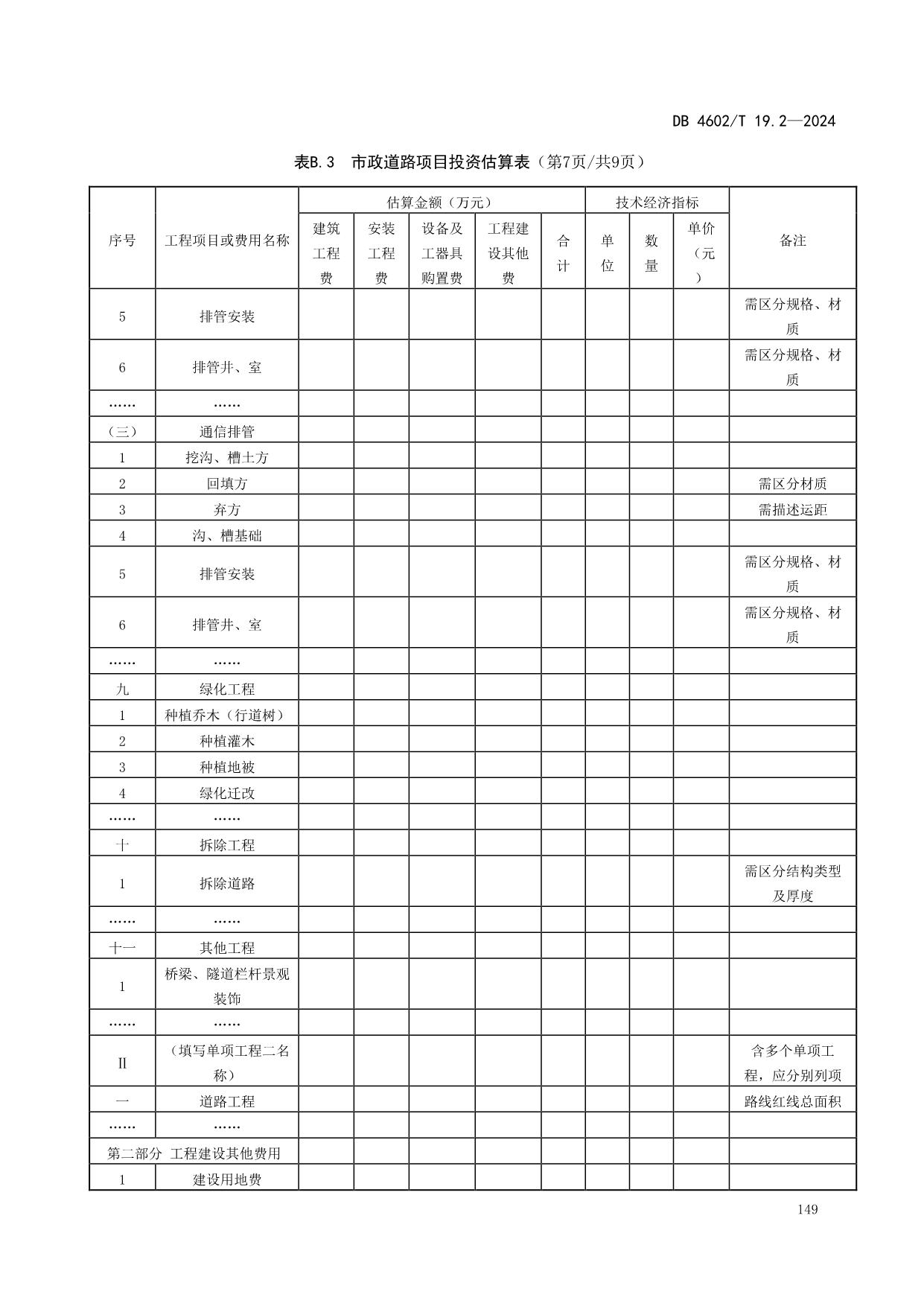 《政府投资项目可行性研究报告编制导则 第2部分:市政公用工程》(DB4602/T19.2-2024)