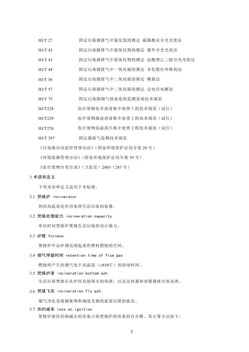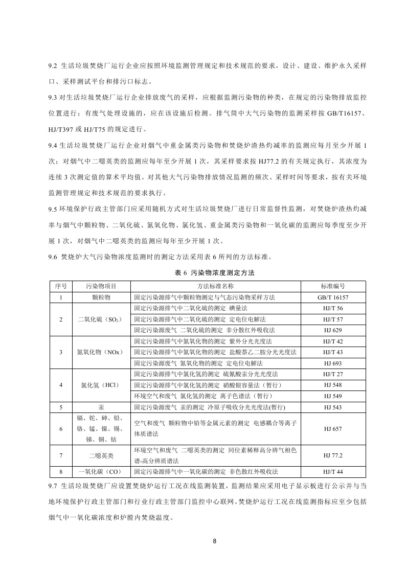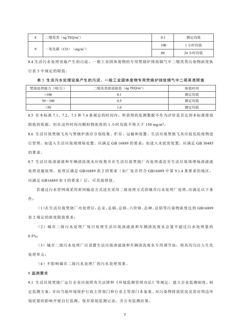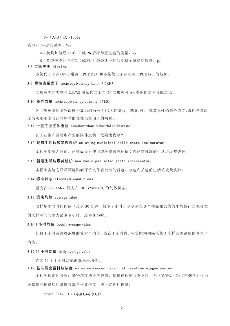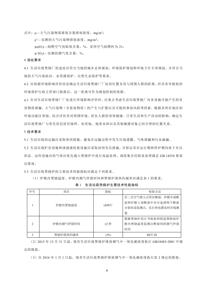 《生活垃圾焚烧污染控制标准》(GB 18485-2014)