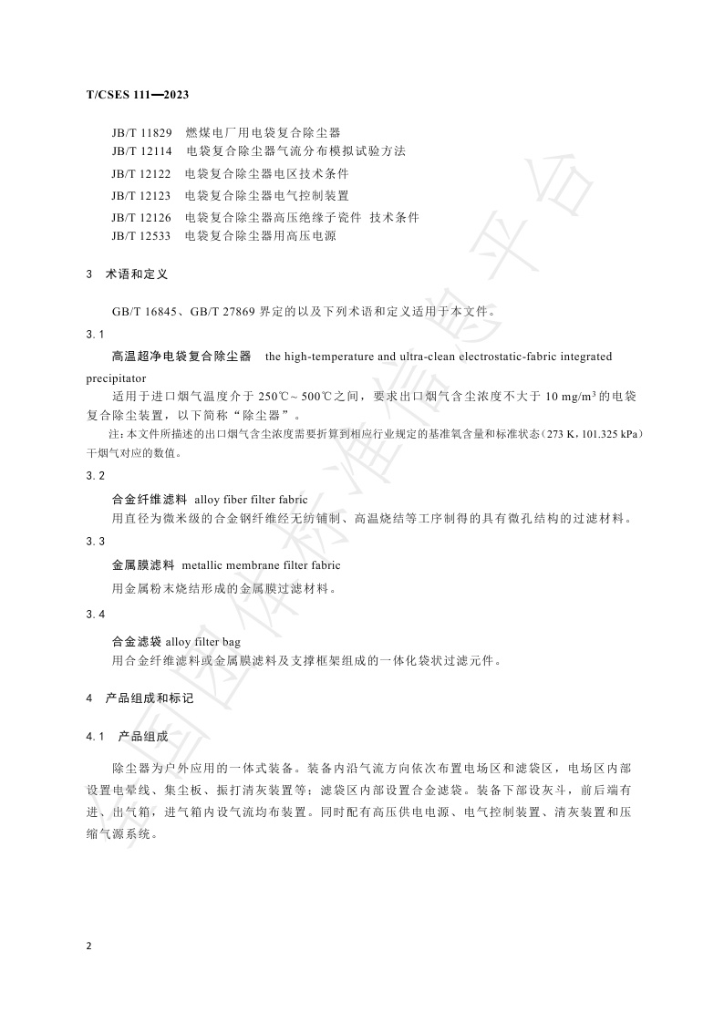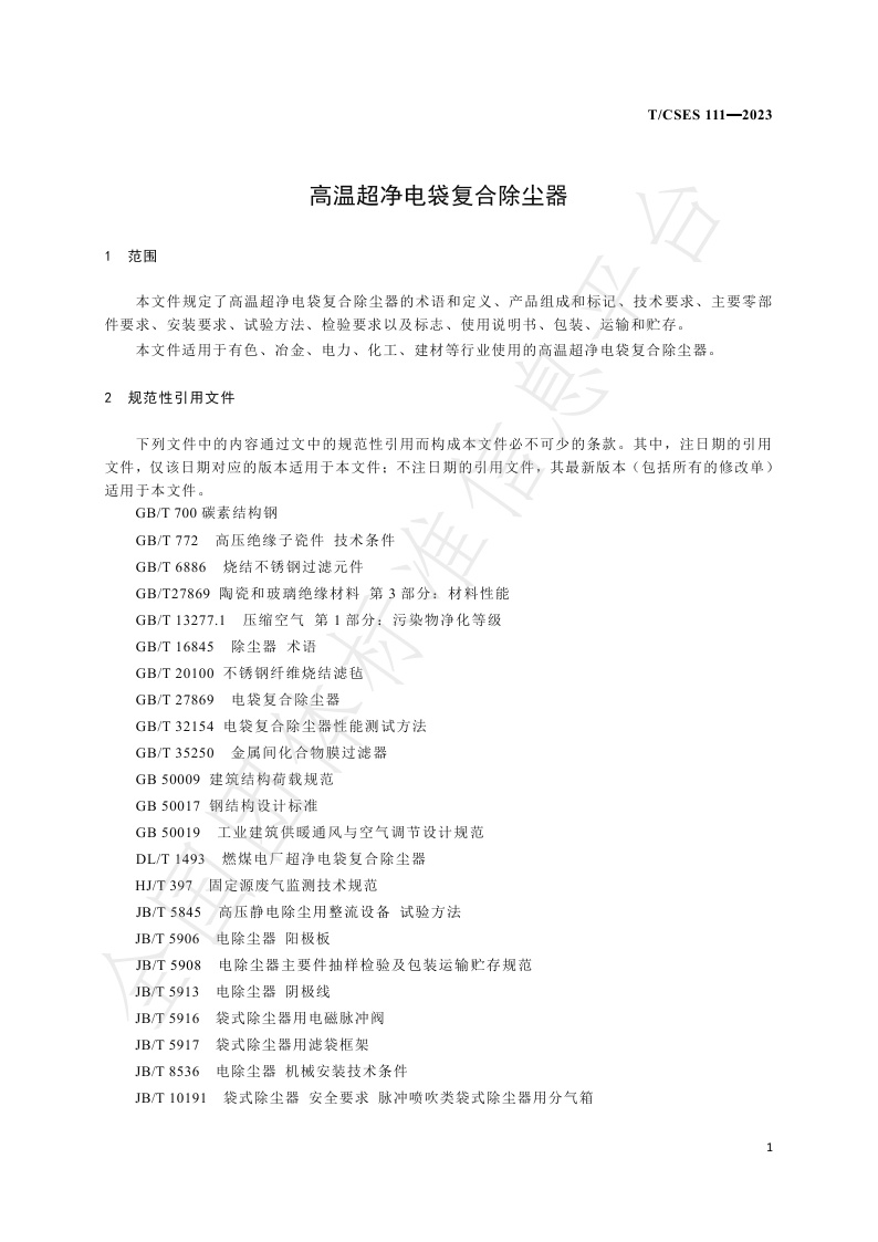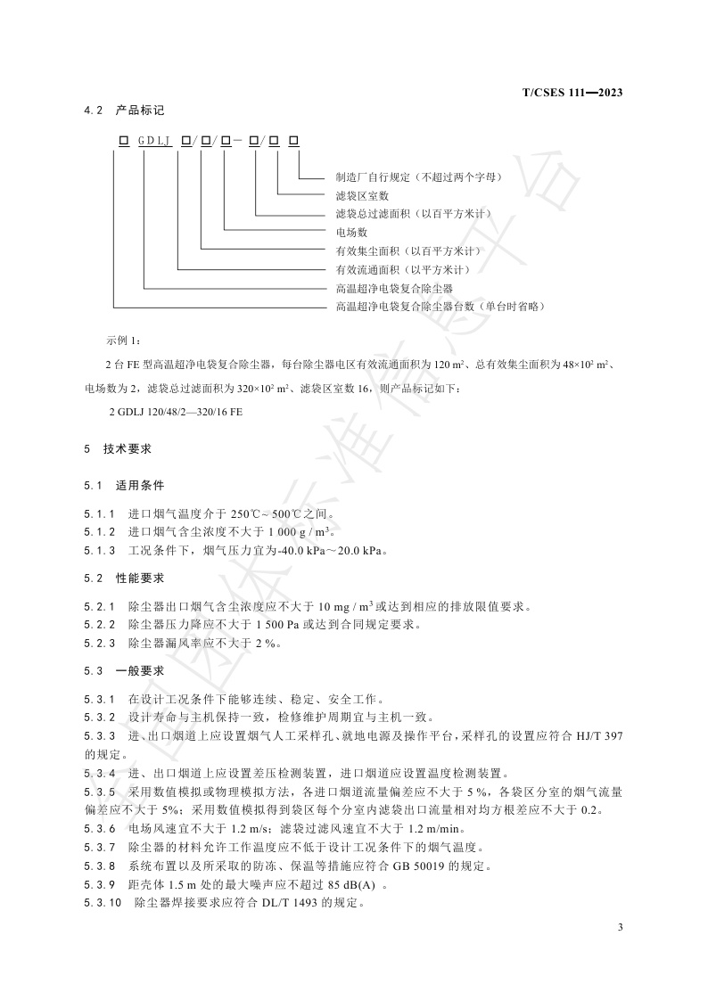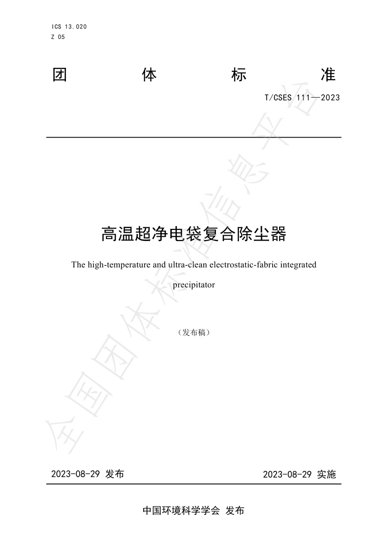 TCSES 111—2023《高温超净电袋复合除尘器》