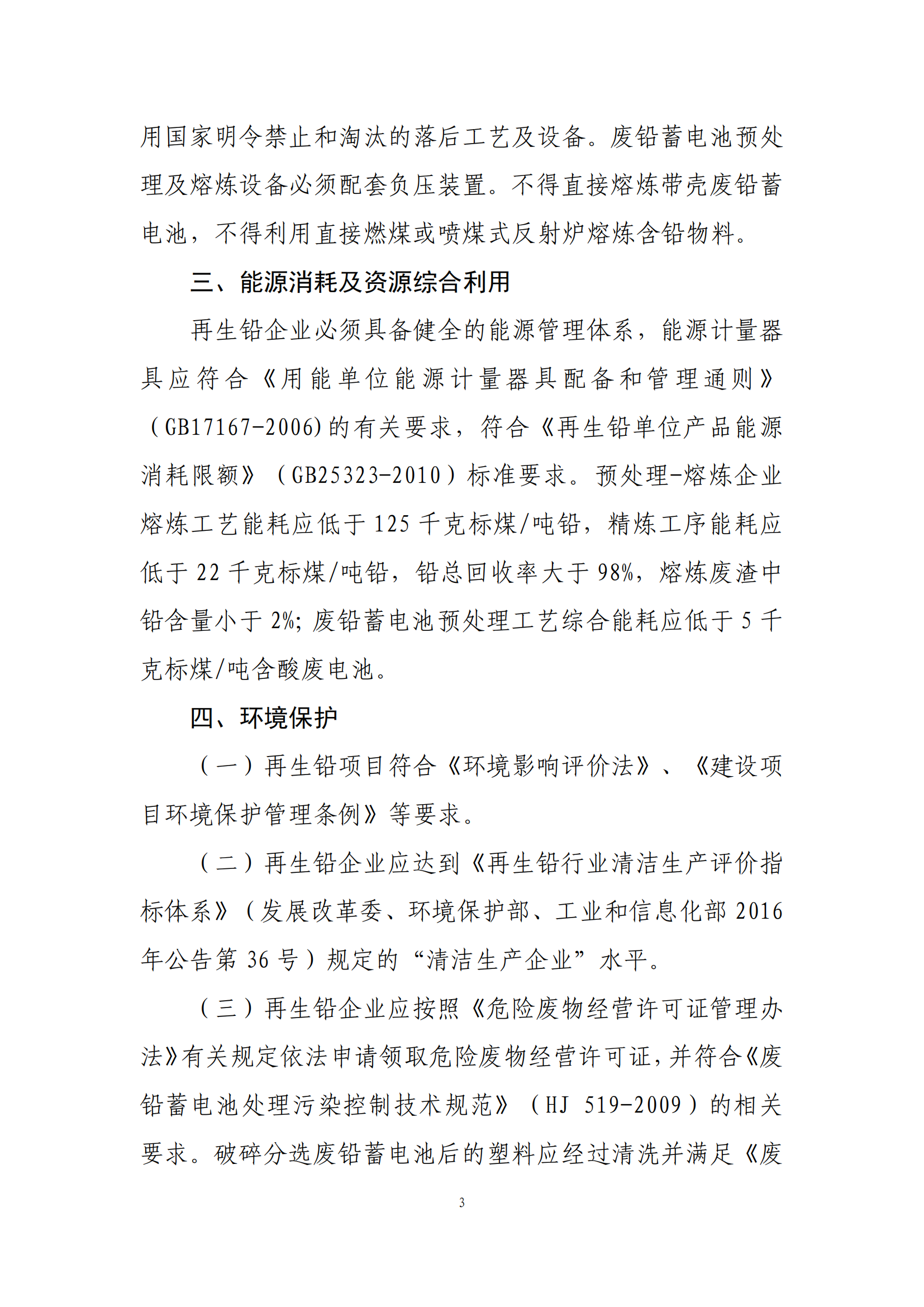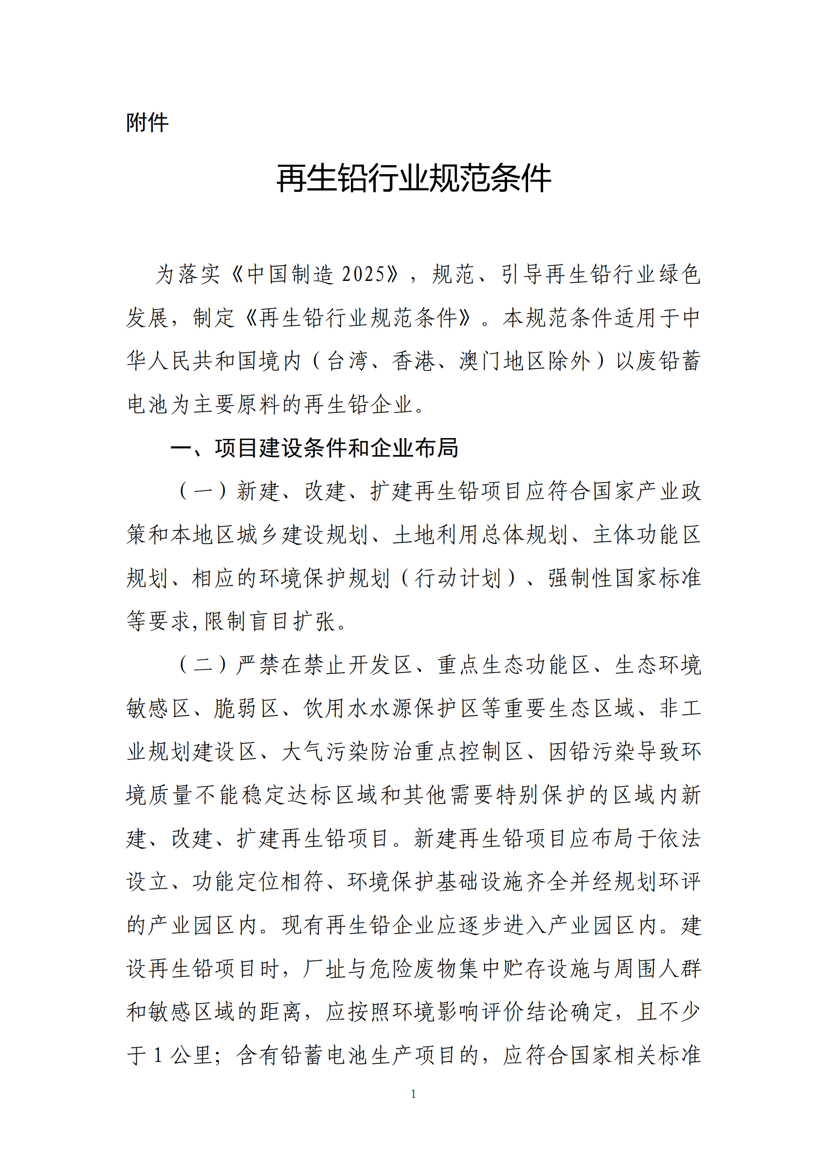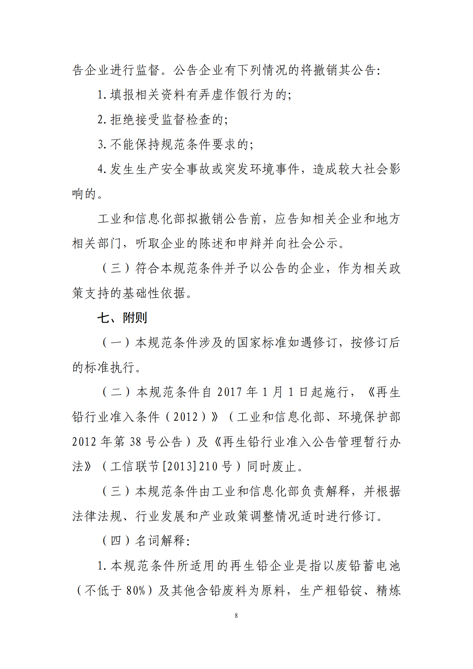 再生铅行业规范条件(工信部公告[2016]第60号)