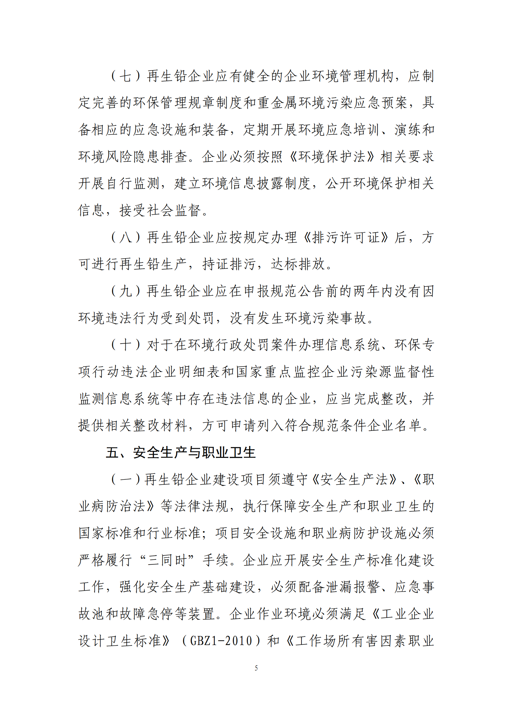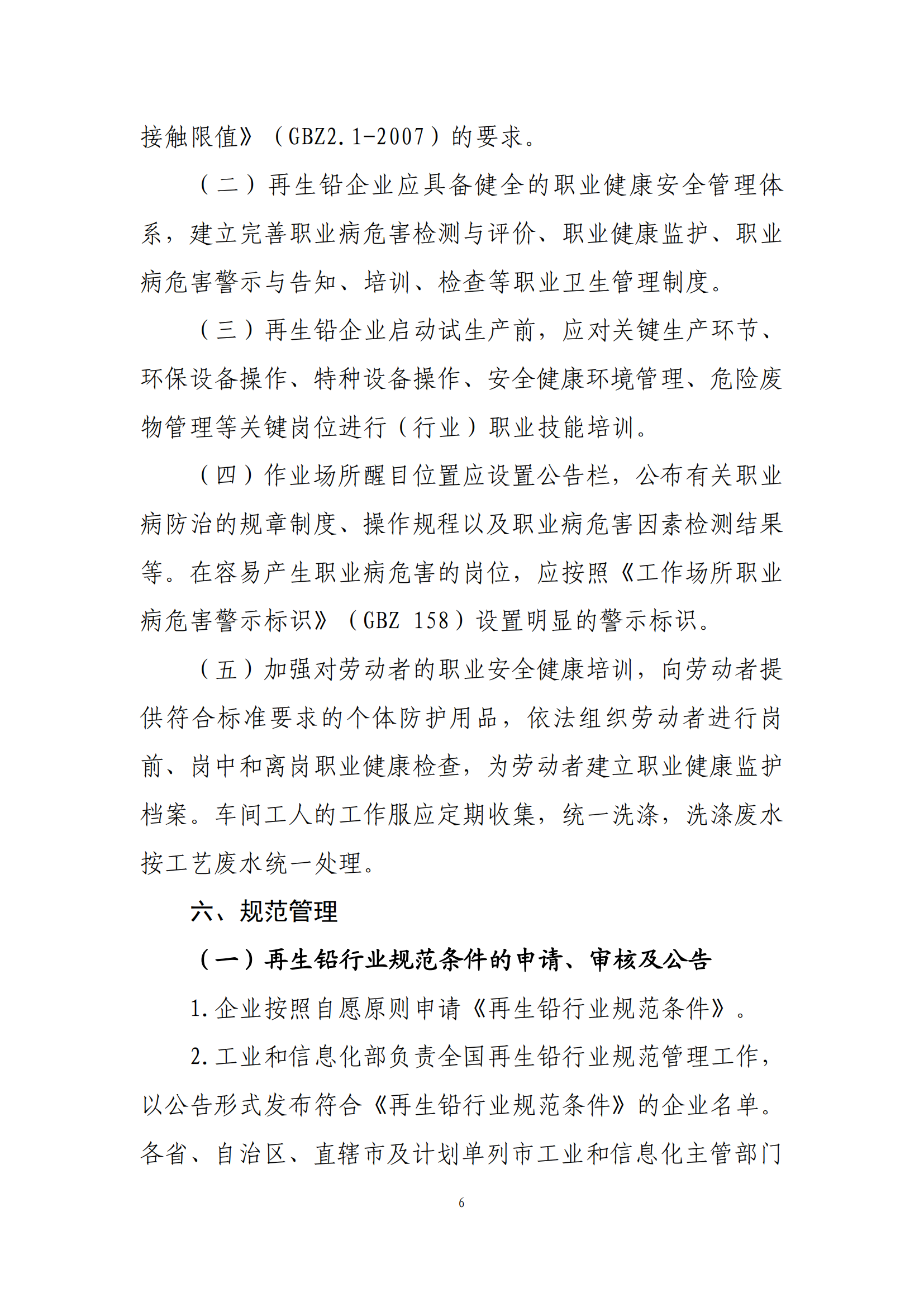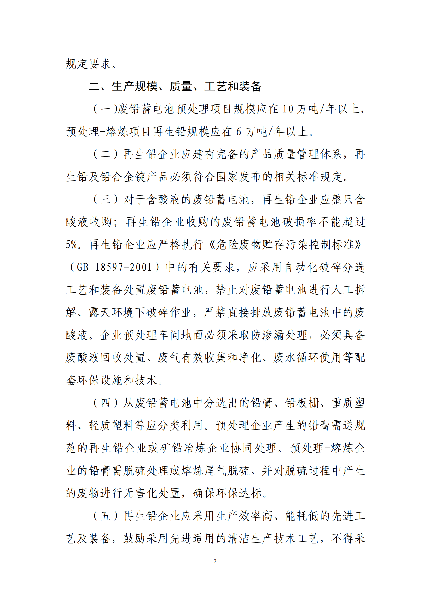 再生铅行业规范条件(工信部公告[2016]第60号)