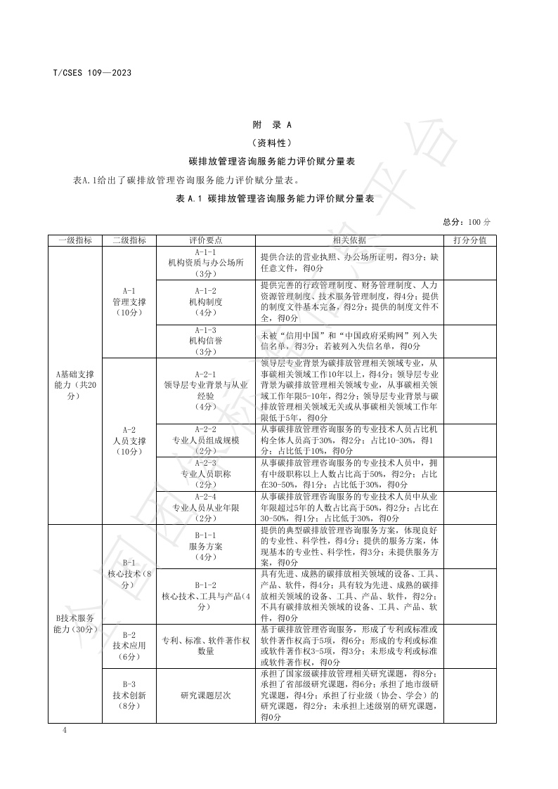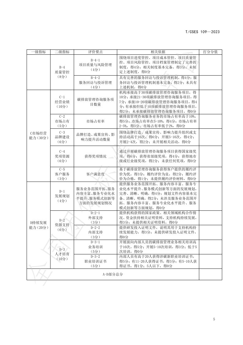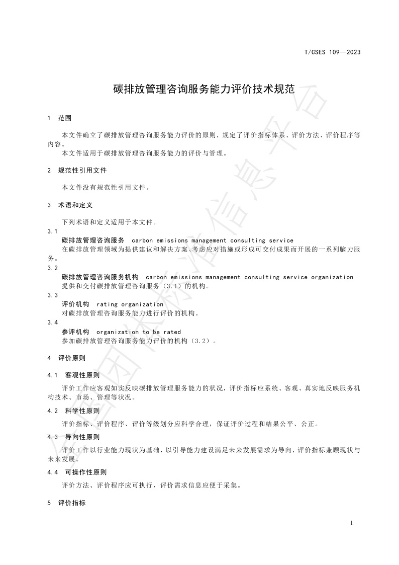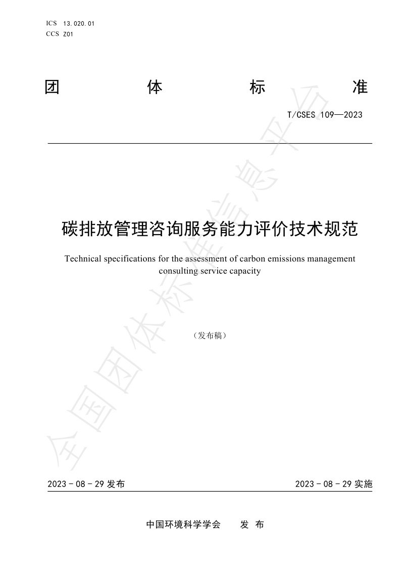 TCSES 109—2023《碳排放管理咨询服务能力评价技术规范》
