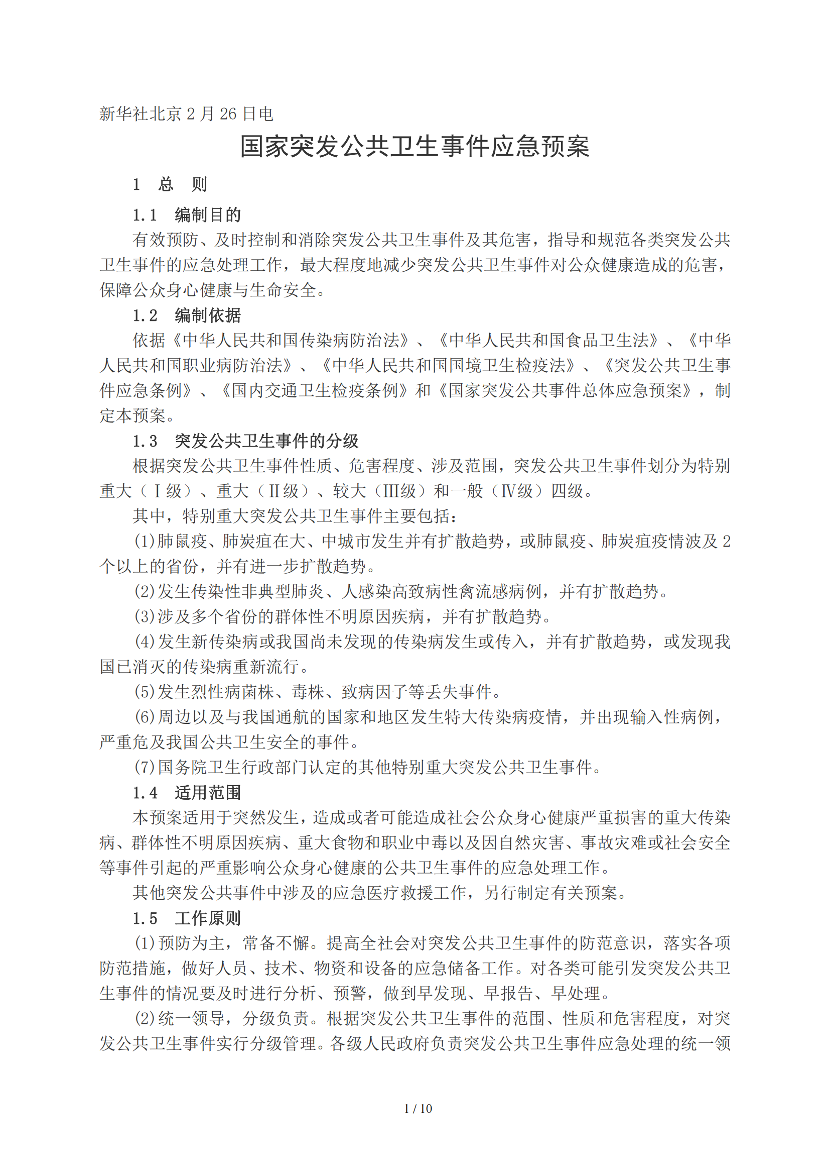国家突发公共卫生事件应急预案(2006年02月26日)