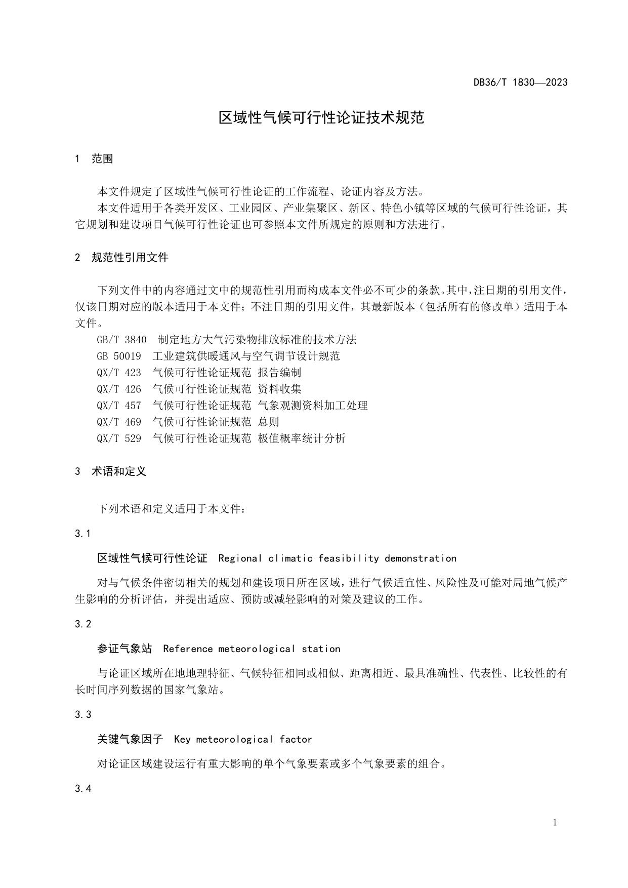 《区域性气候可行性论证技术规范》(DB36/T 1830-2023)