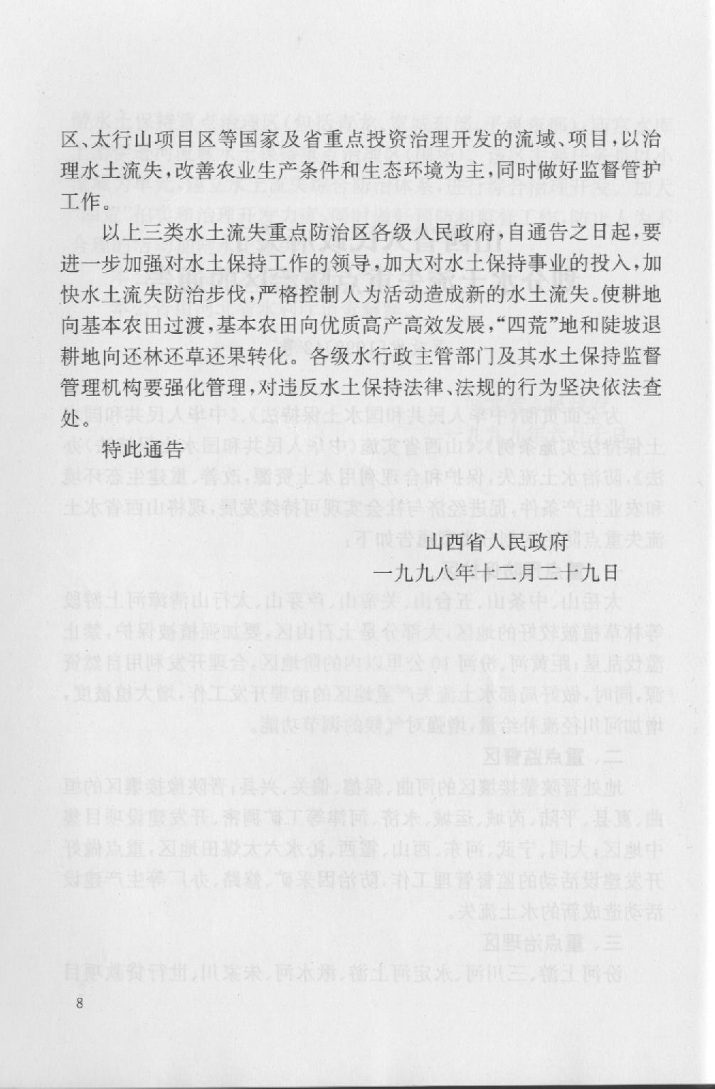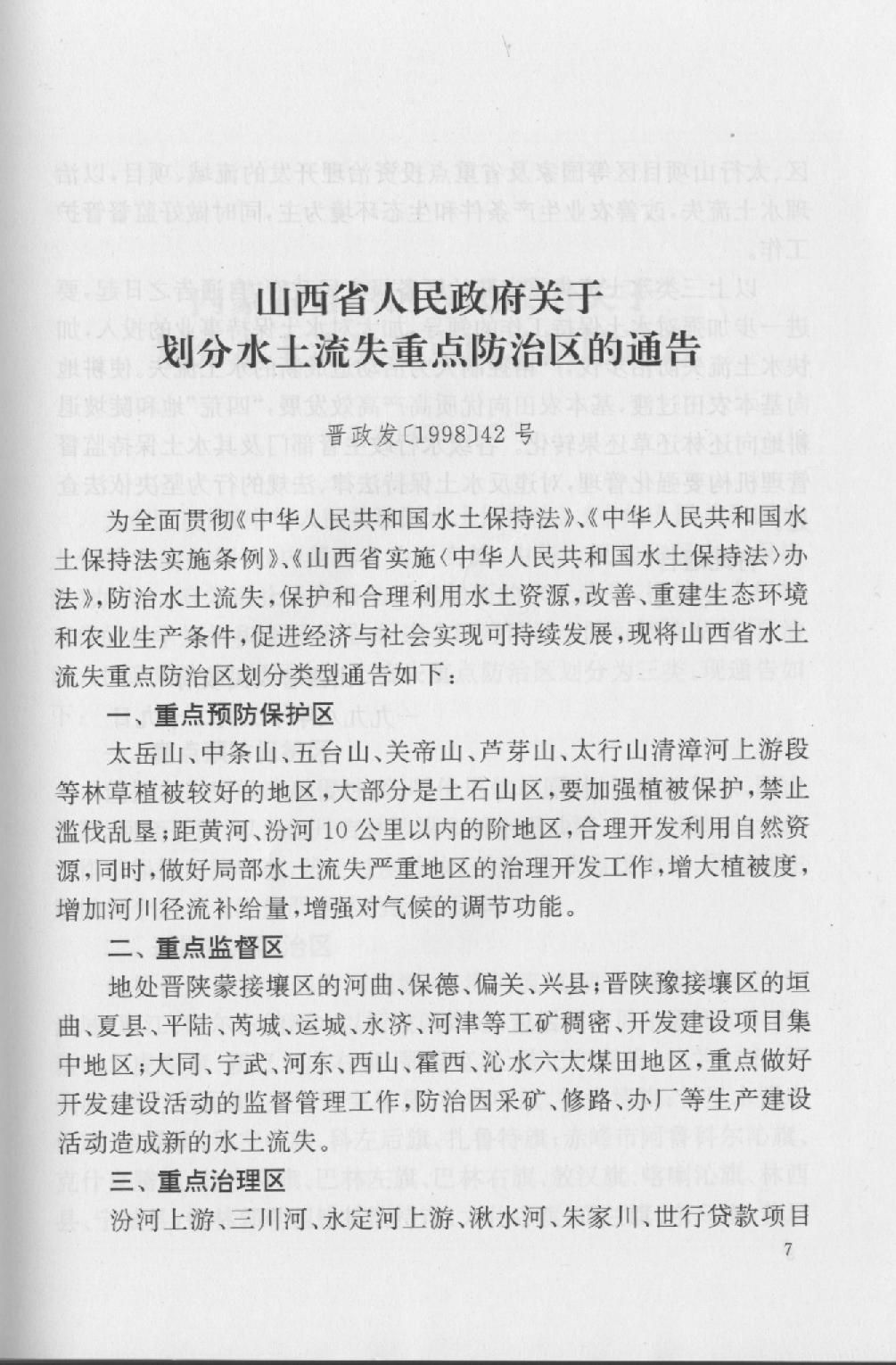 山西省人民政府关于划分水土流失重点防治区的通告(98年42号)