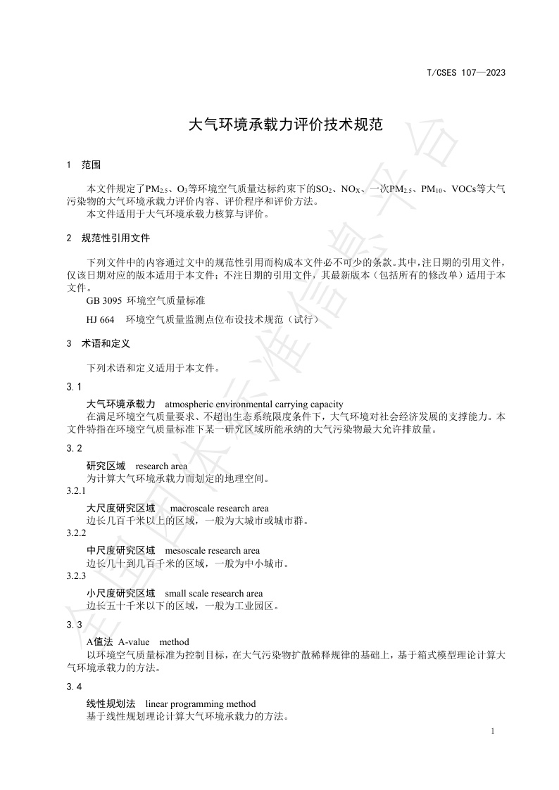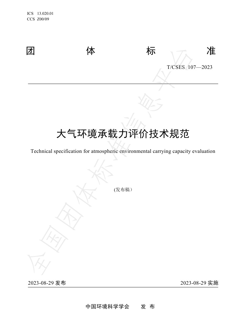 TCSES 107—2023《大气环境承载力评价技术规范》