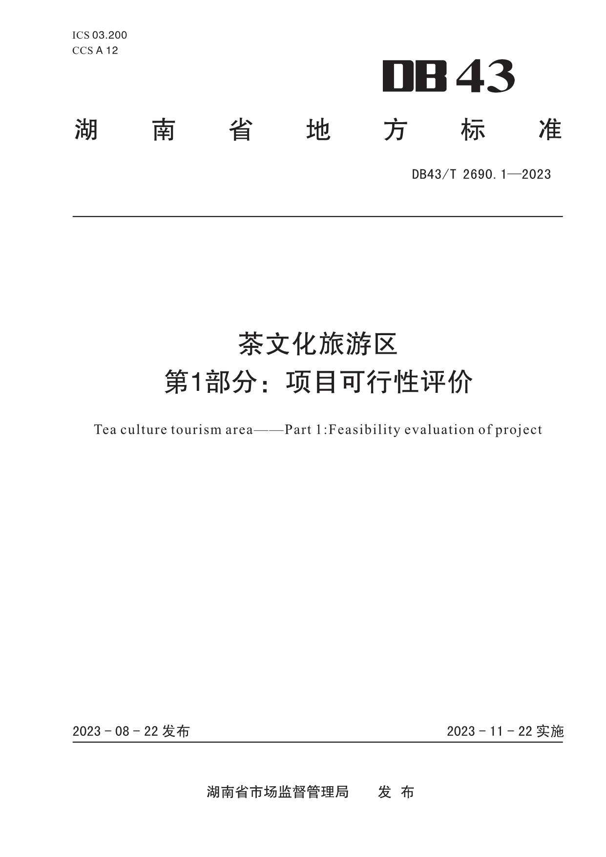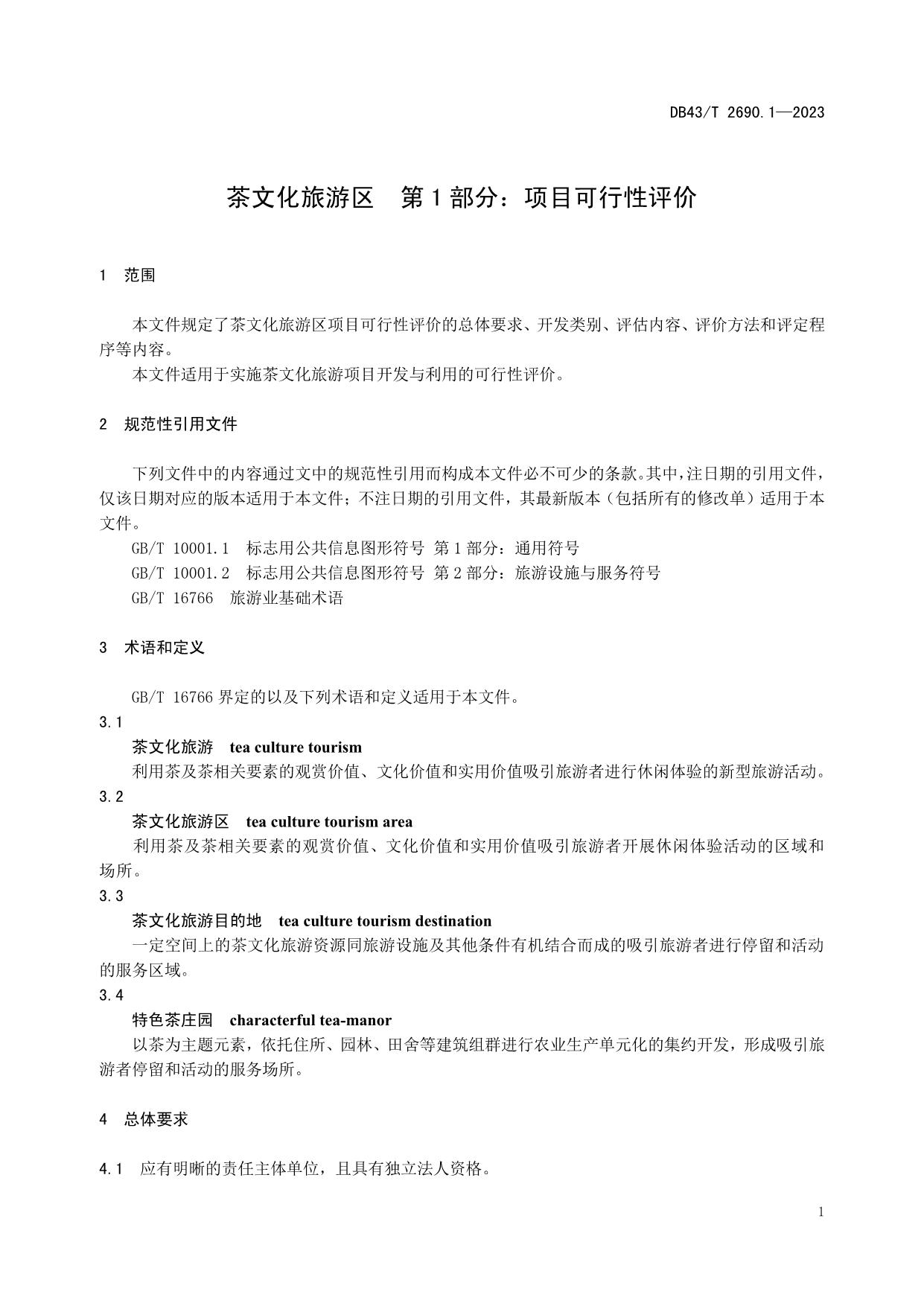 《茶文化旅游区 第1部分:项目可行性评价》(DB43/T 2690.1-2023)