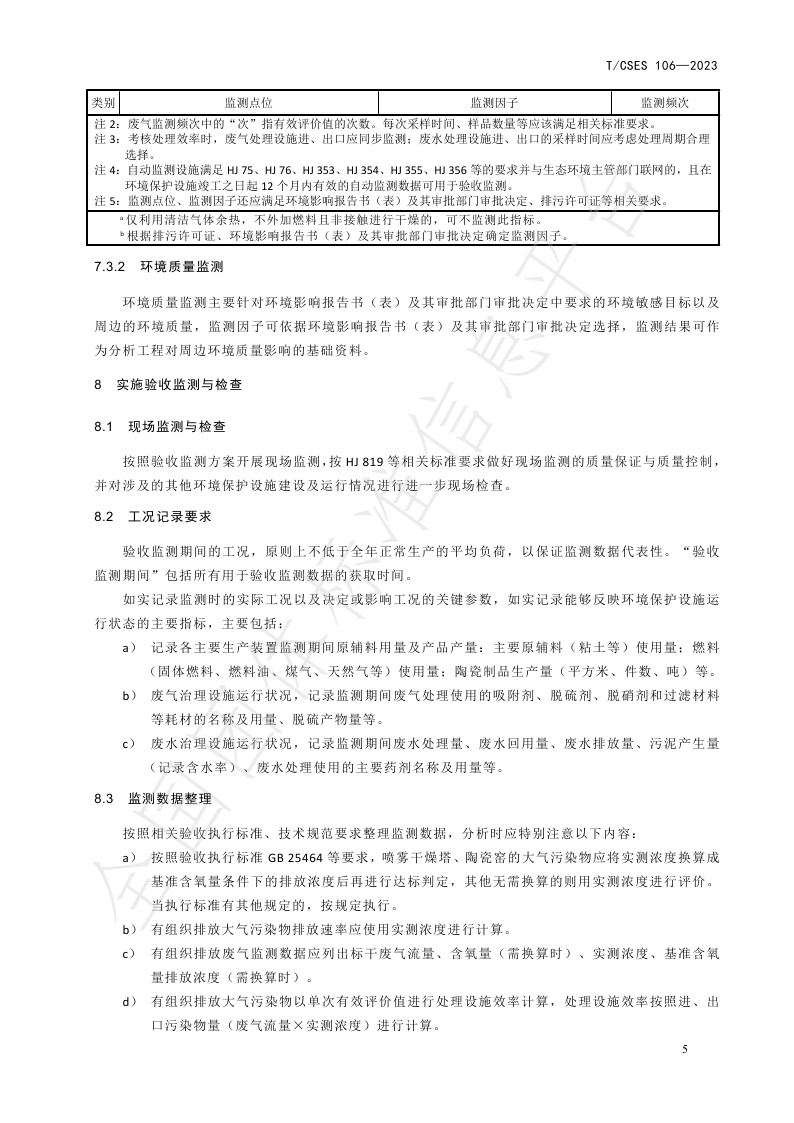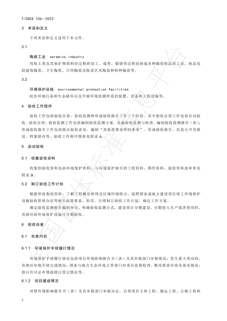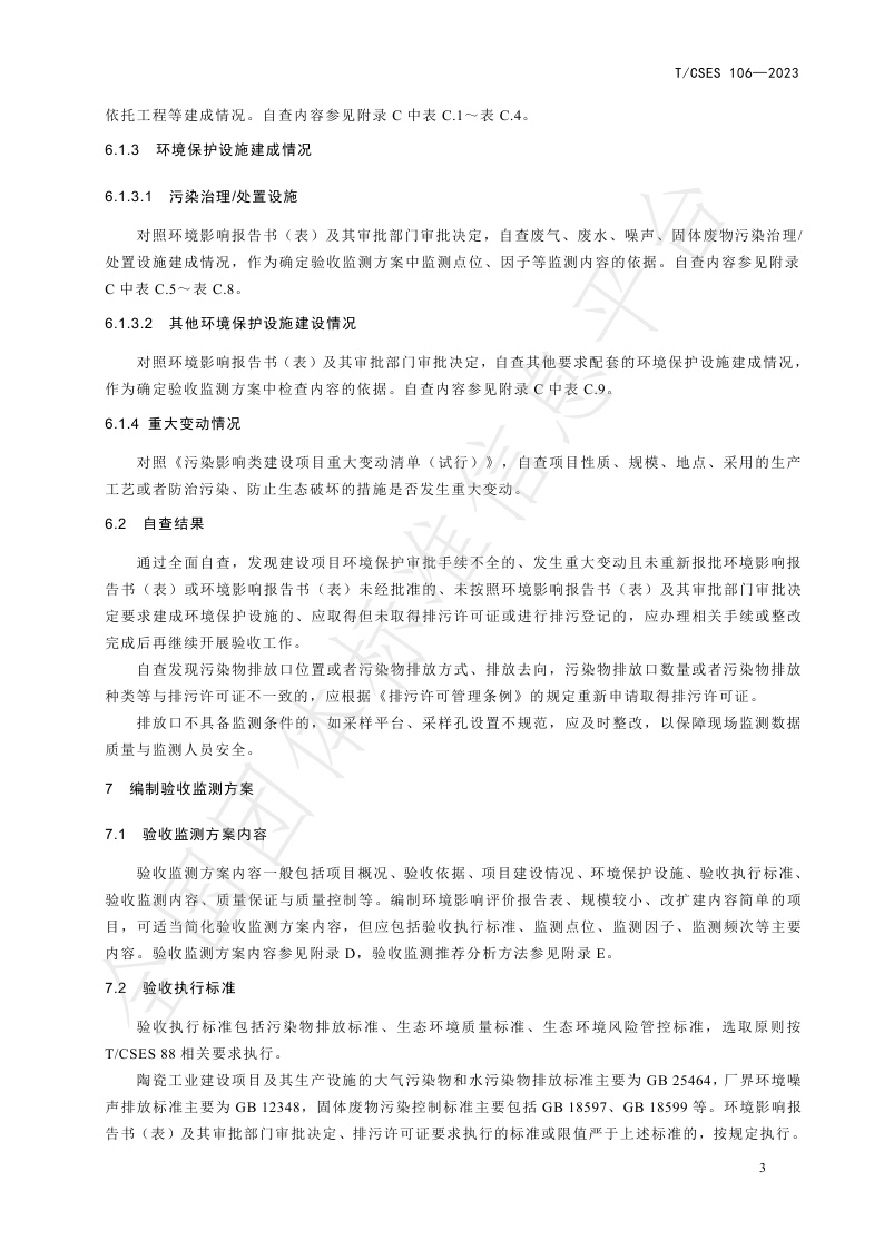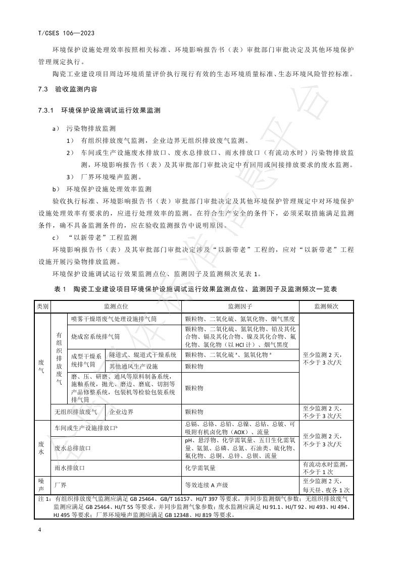 TCSES 106—2023《建设项目竣工环境保护设施验收技术规范 陶瓷工业》