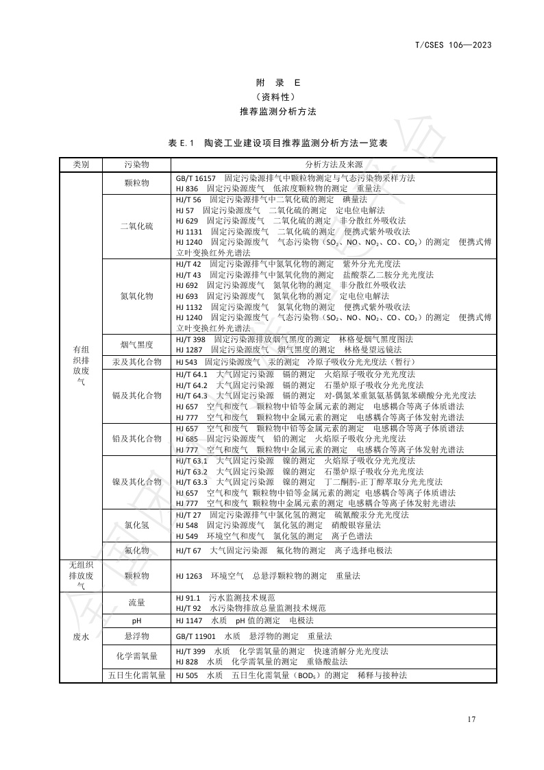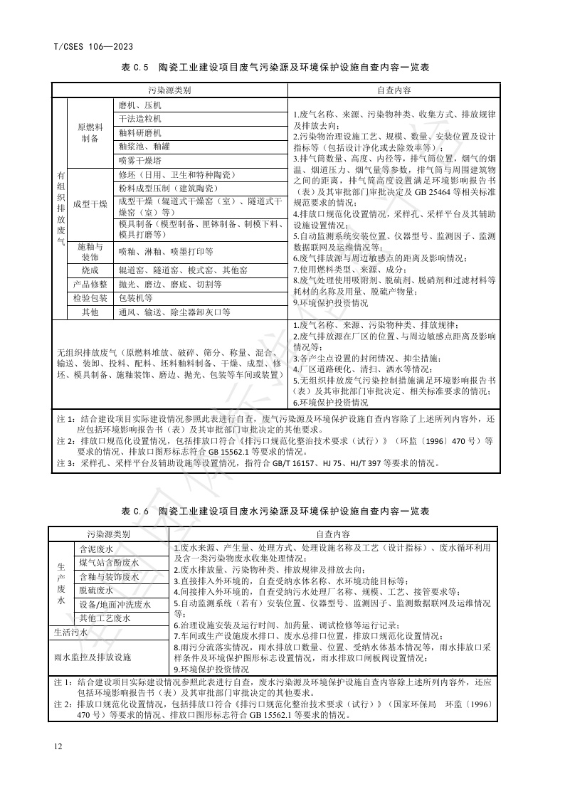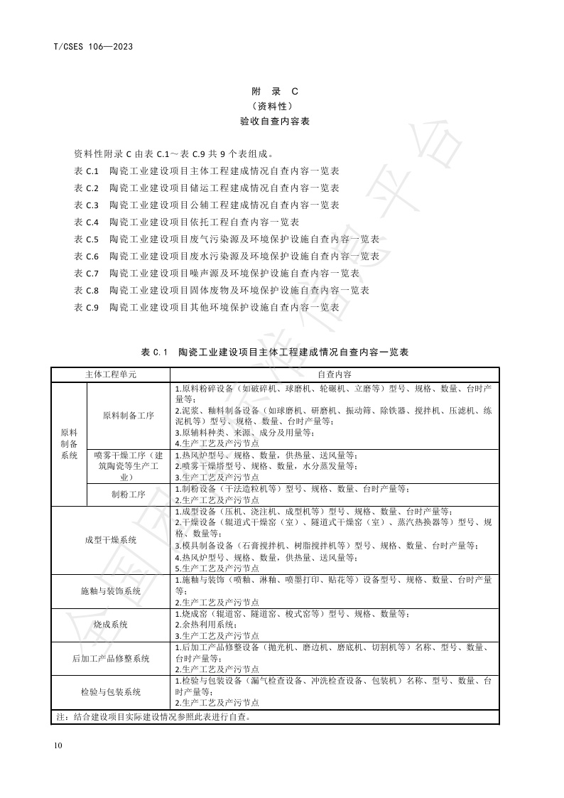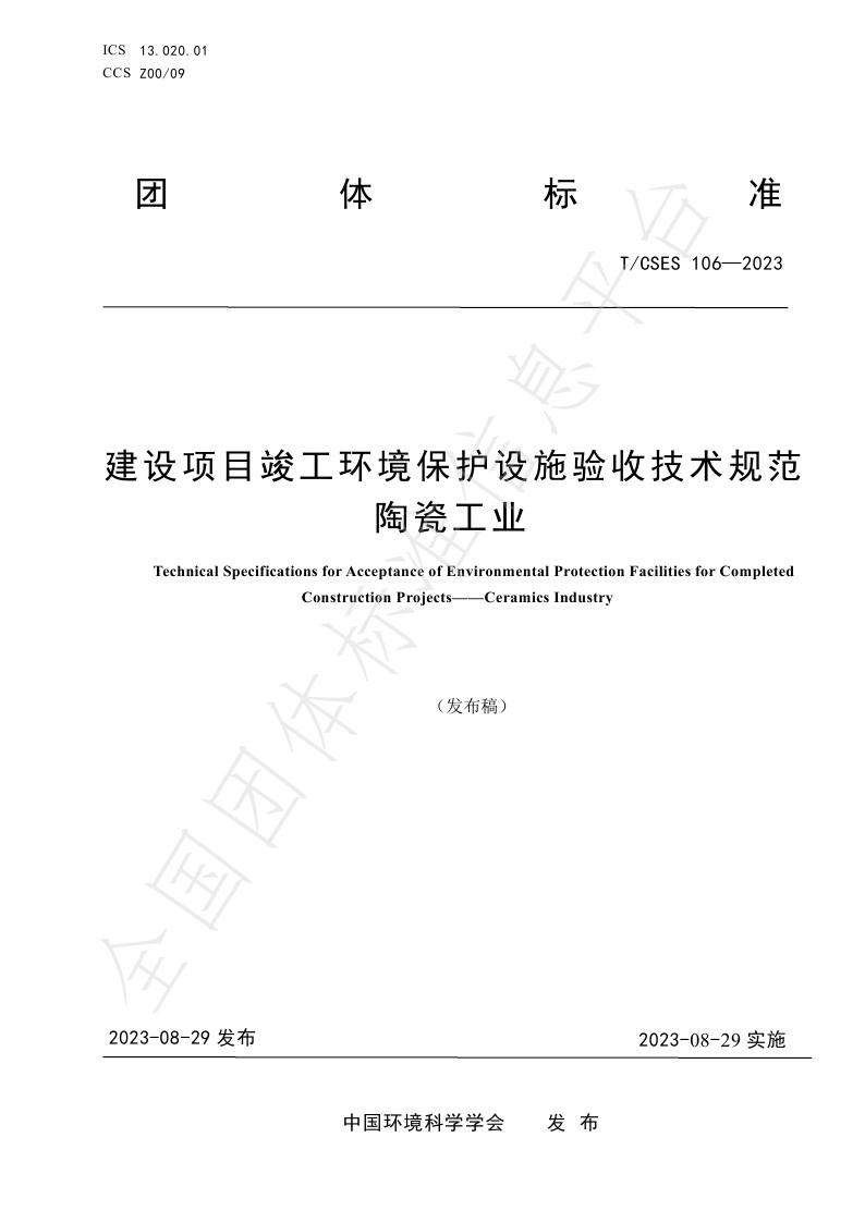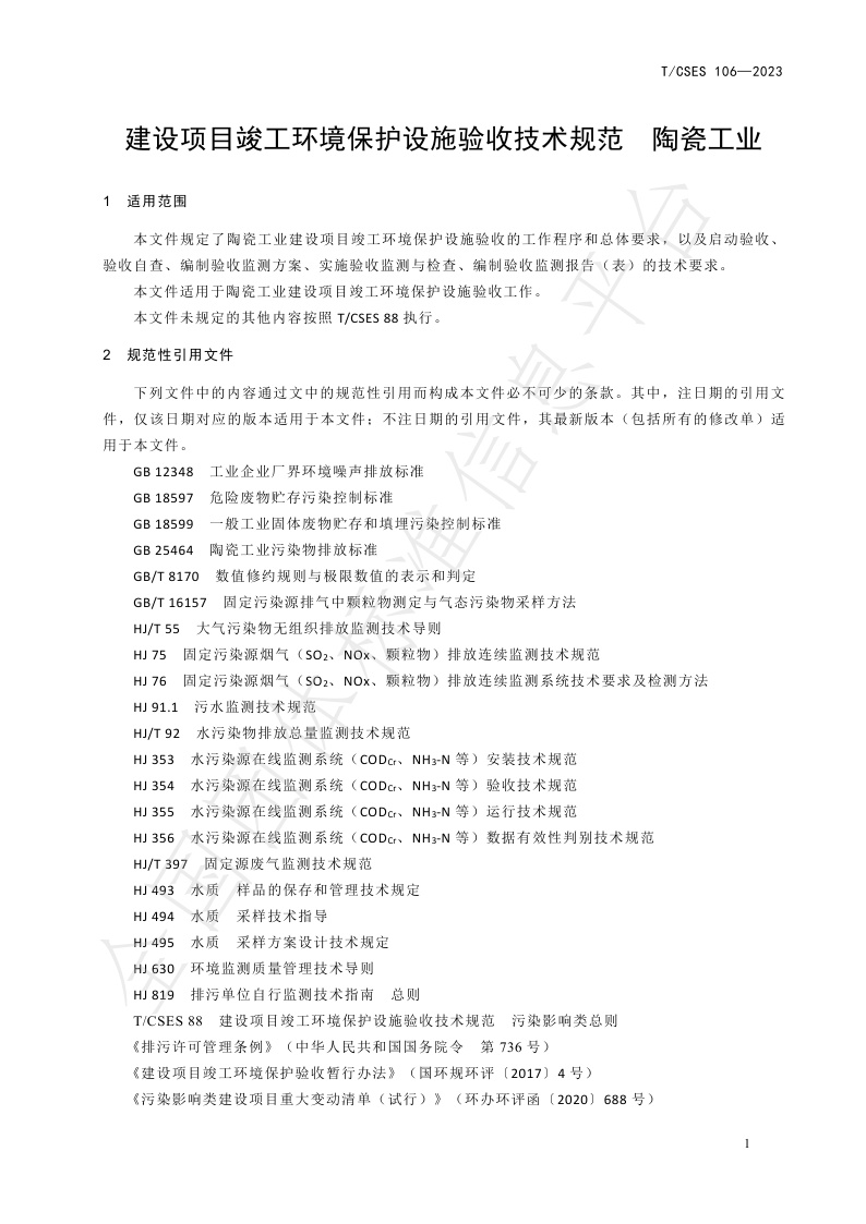 TCSES 106—2023《建设项目竣工环境保护设施验收技术规范 陶瓷工业》