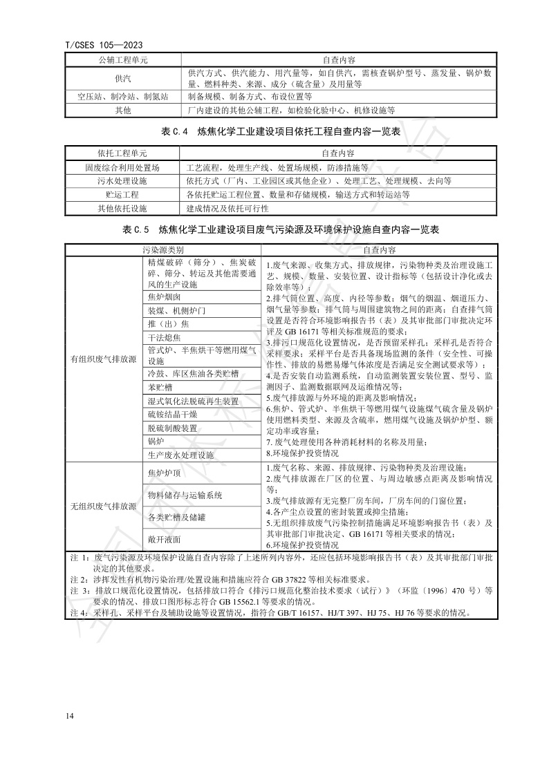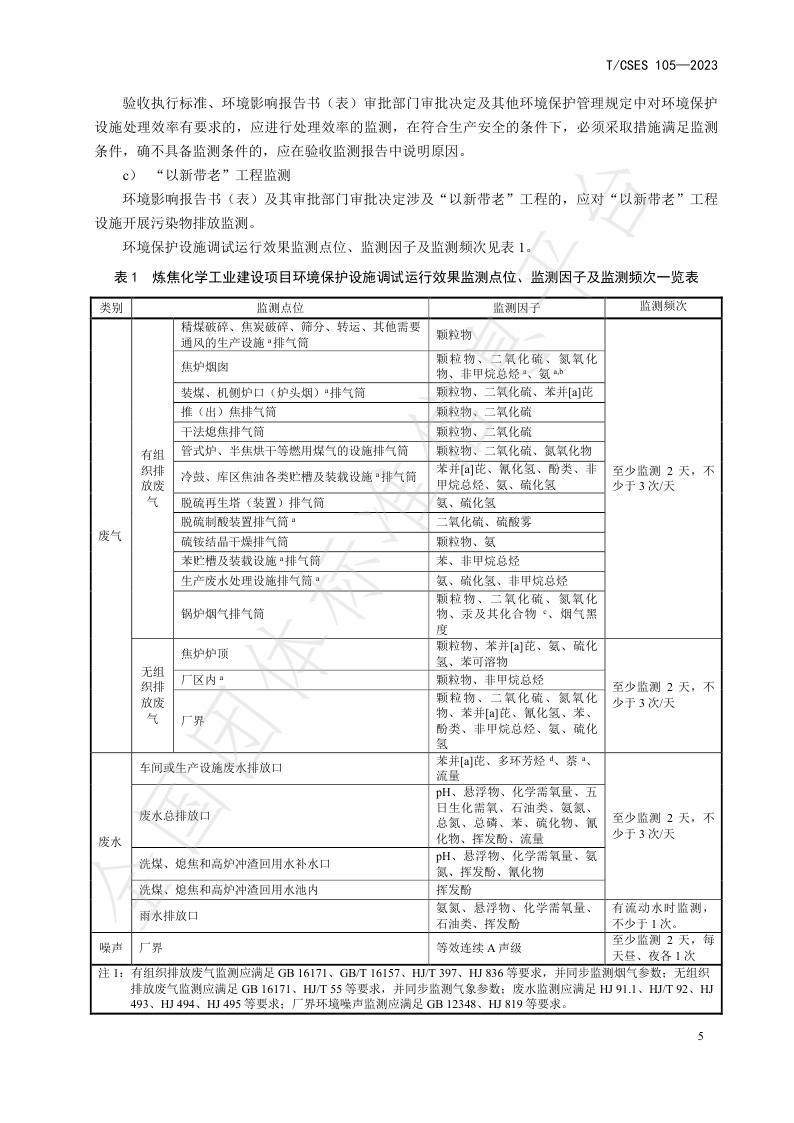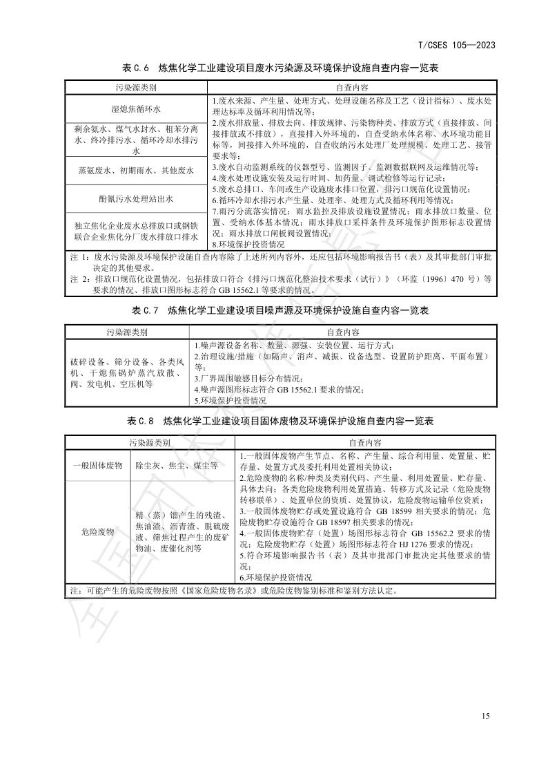 TCSES 105—2023《建设项目竣工环境保护设施验收技术规范 炼焦化学工业》