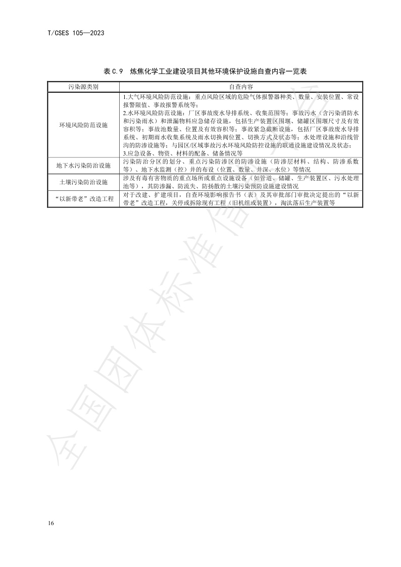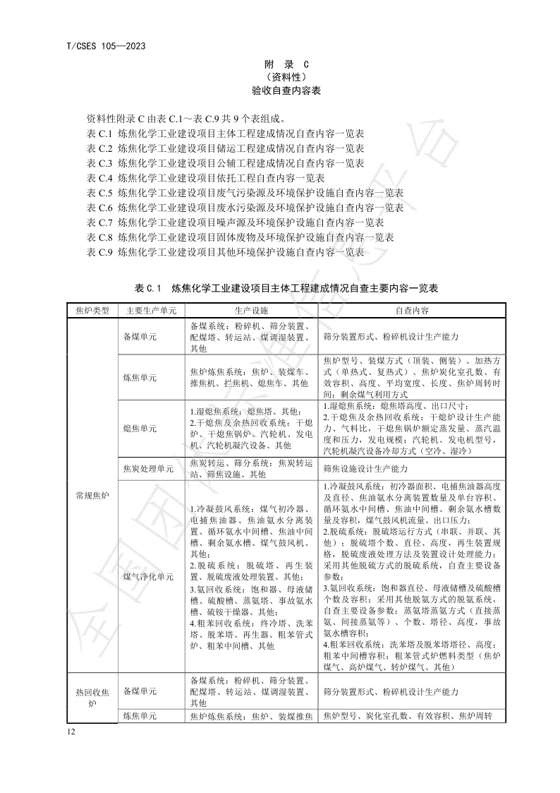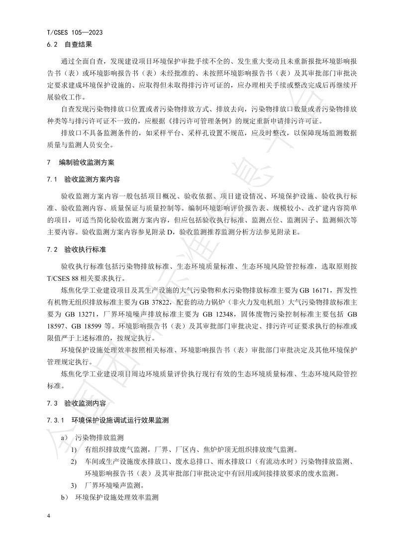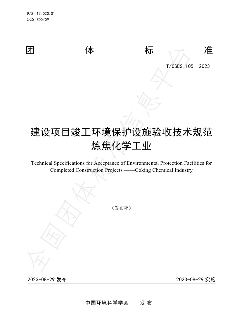 TCSES 105—2023《建设项目竣工环境保护设施验收技术规范 炼焦化学工业》