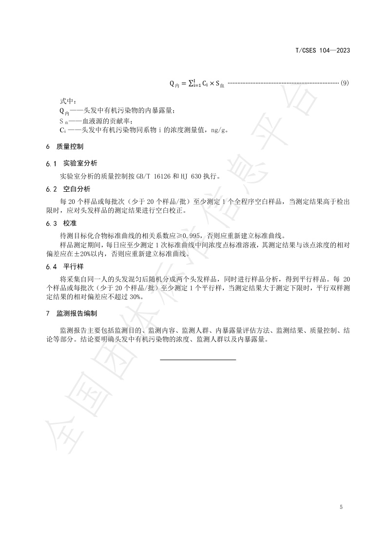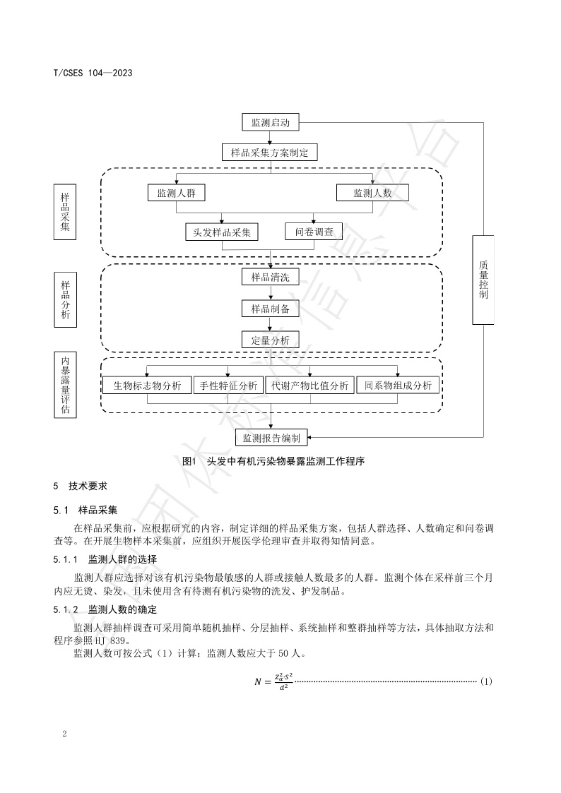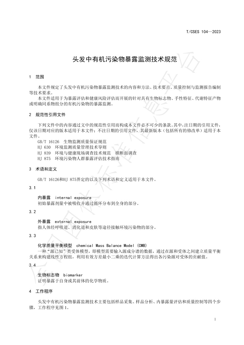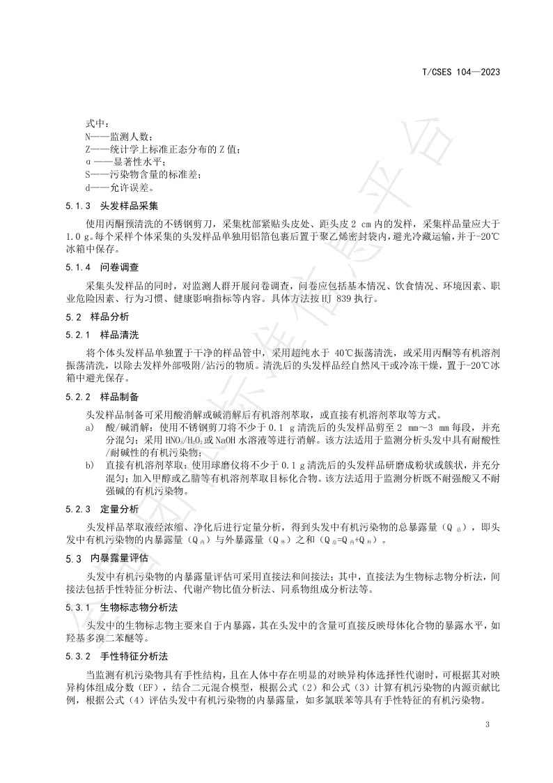 TCSES 104—2023《头发中有机污染物暴露监测技术规范》