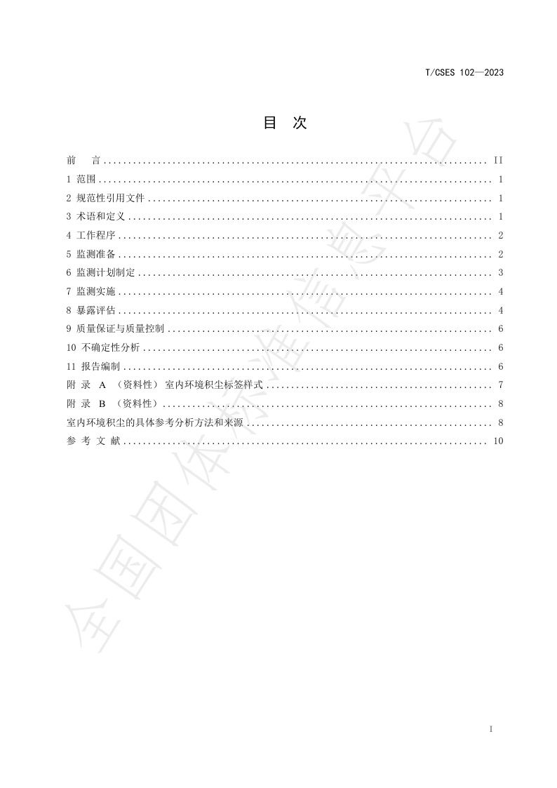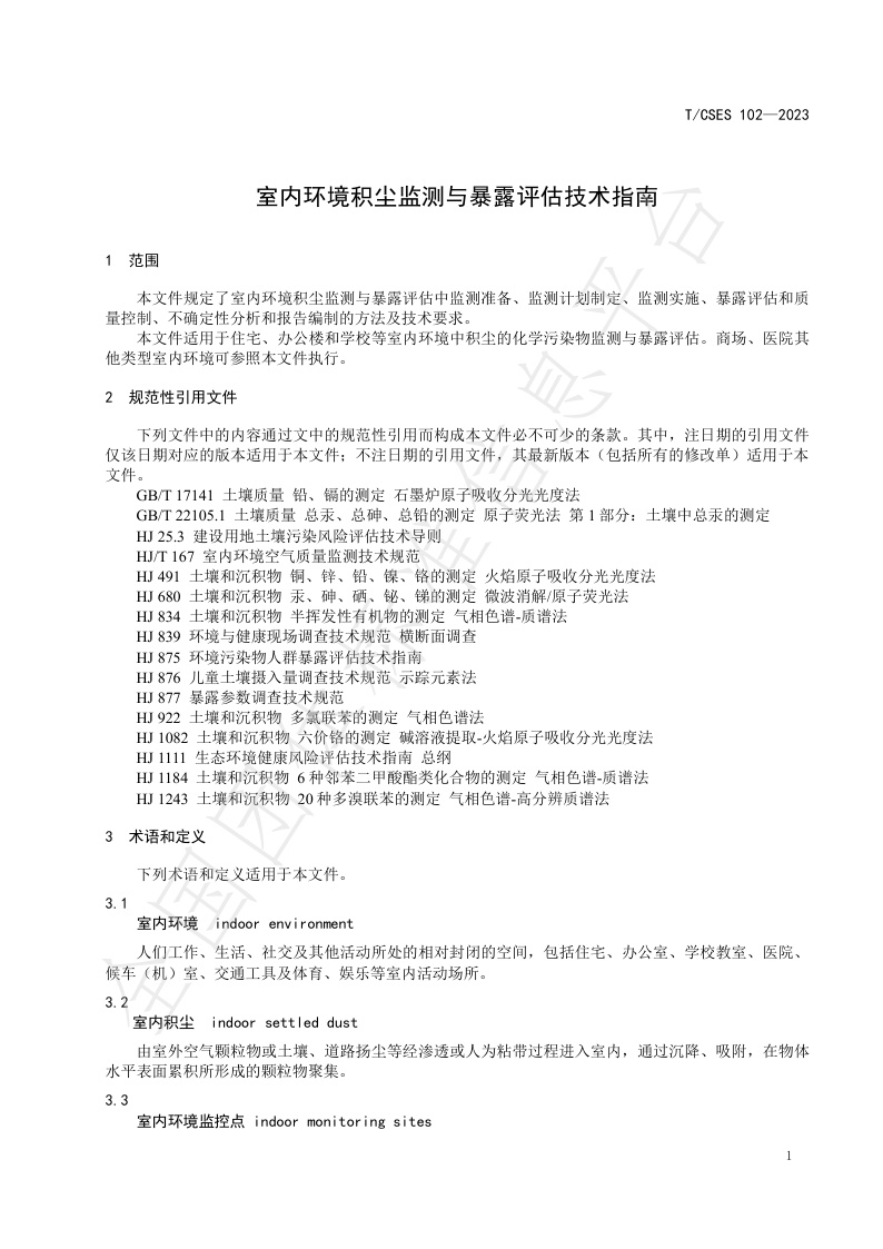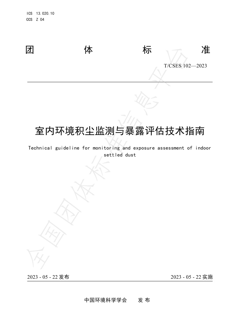 TCSES 102—2023《室内环境积尘监测与暴露评估技术指南》