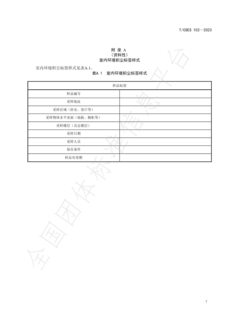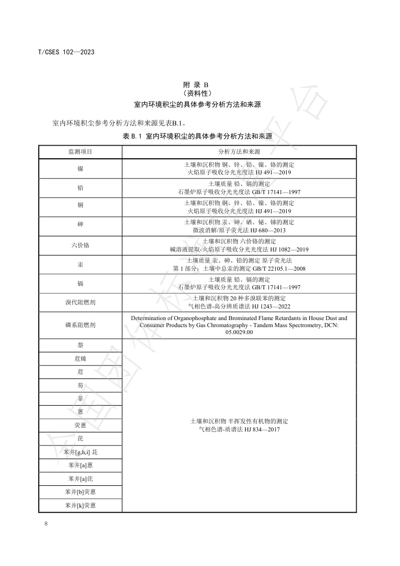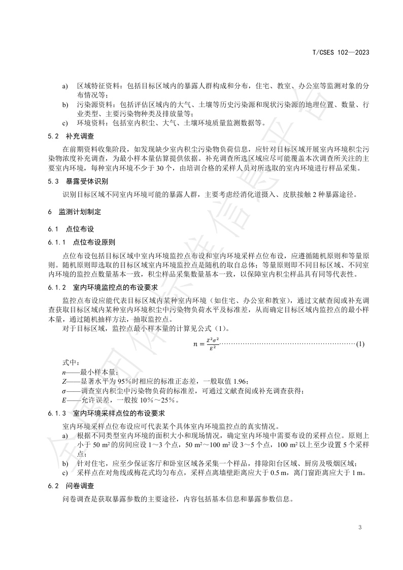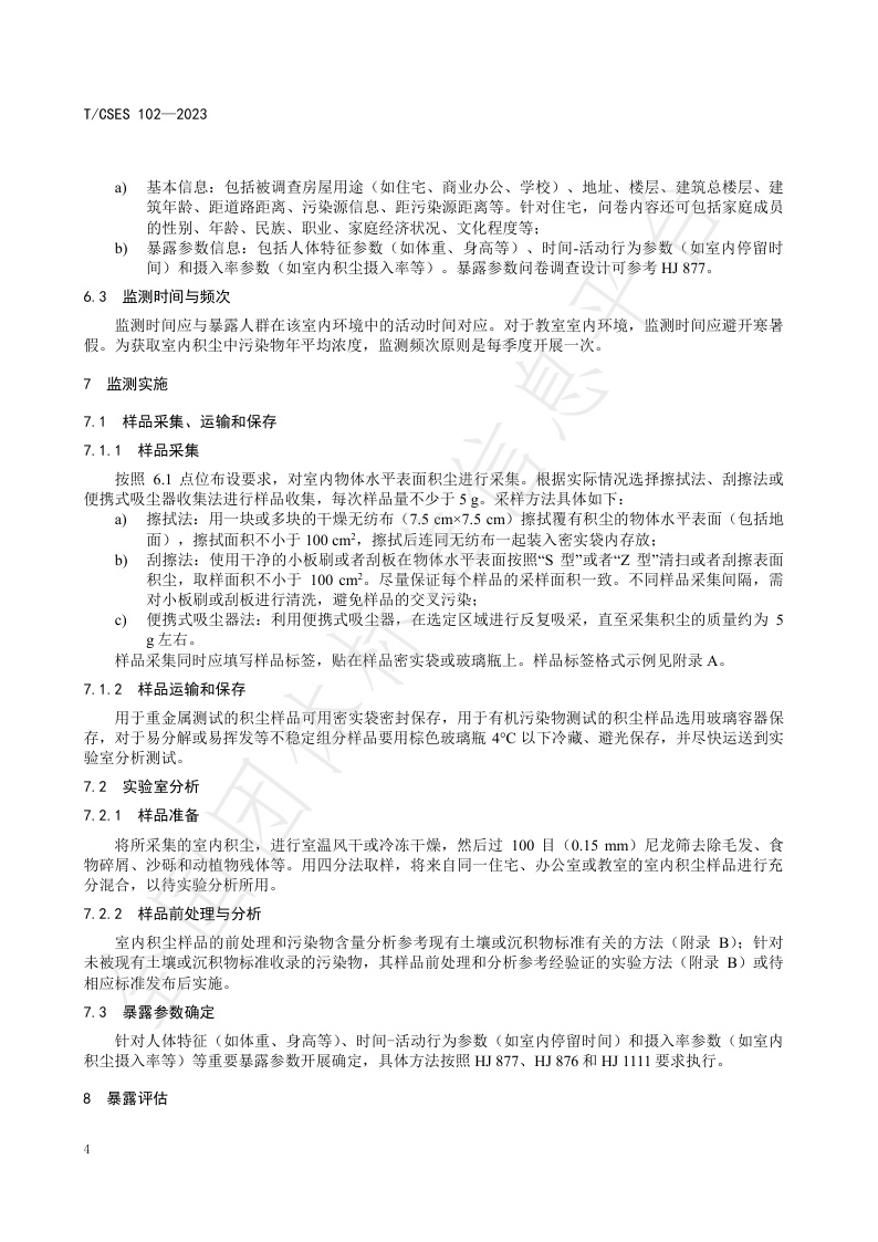 TCSES 102—2023《室内环境积尘监测与暴露评估技术指南》