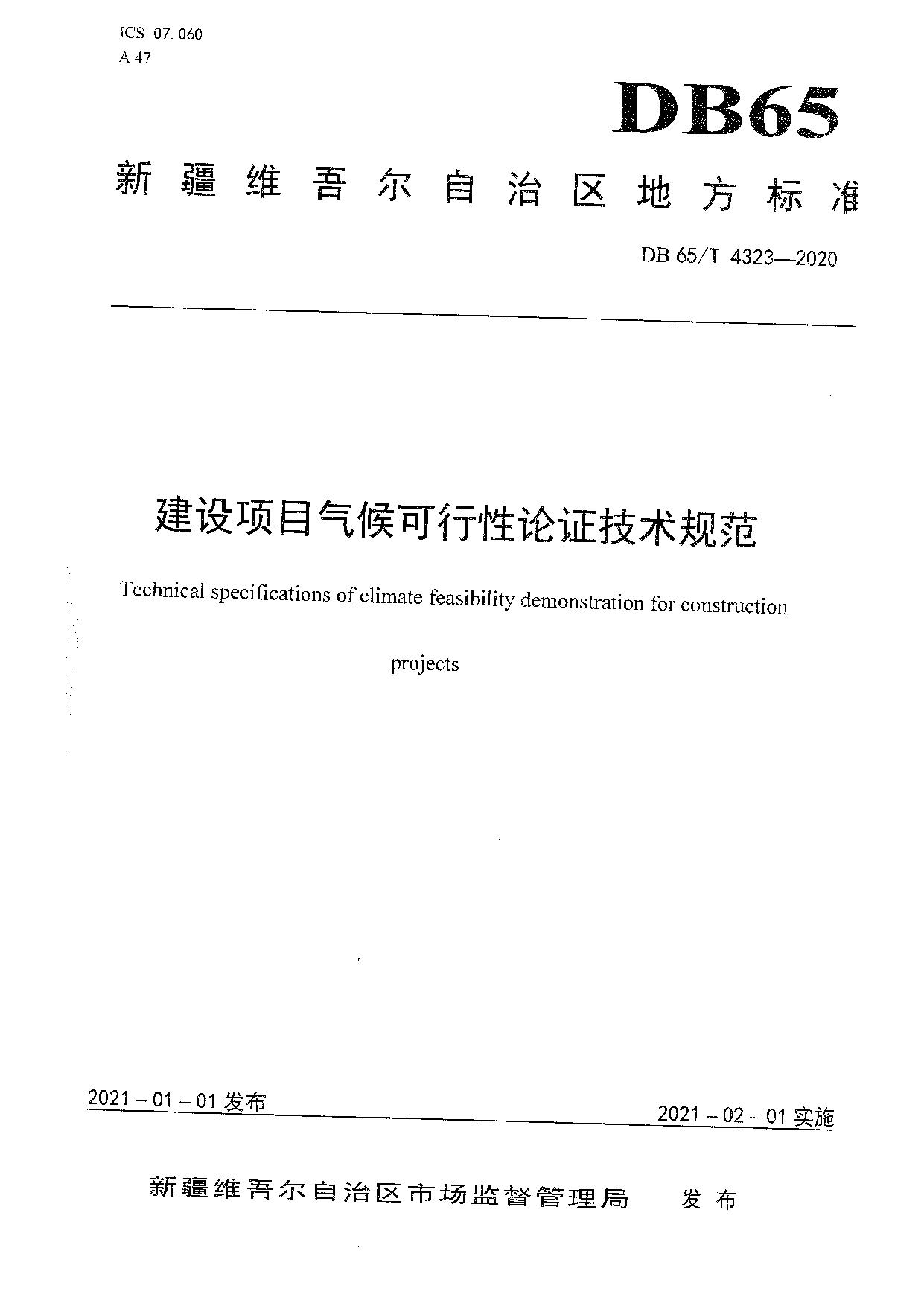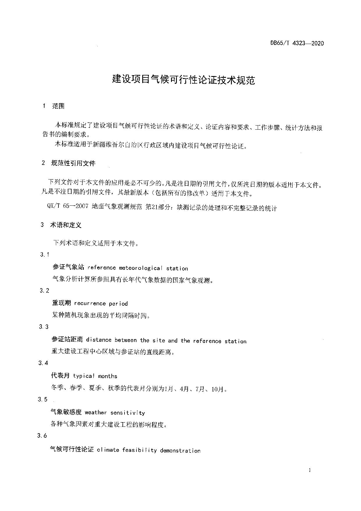 《建设项目气候可行性论证技术规范》(DB65/T 4323-2020)