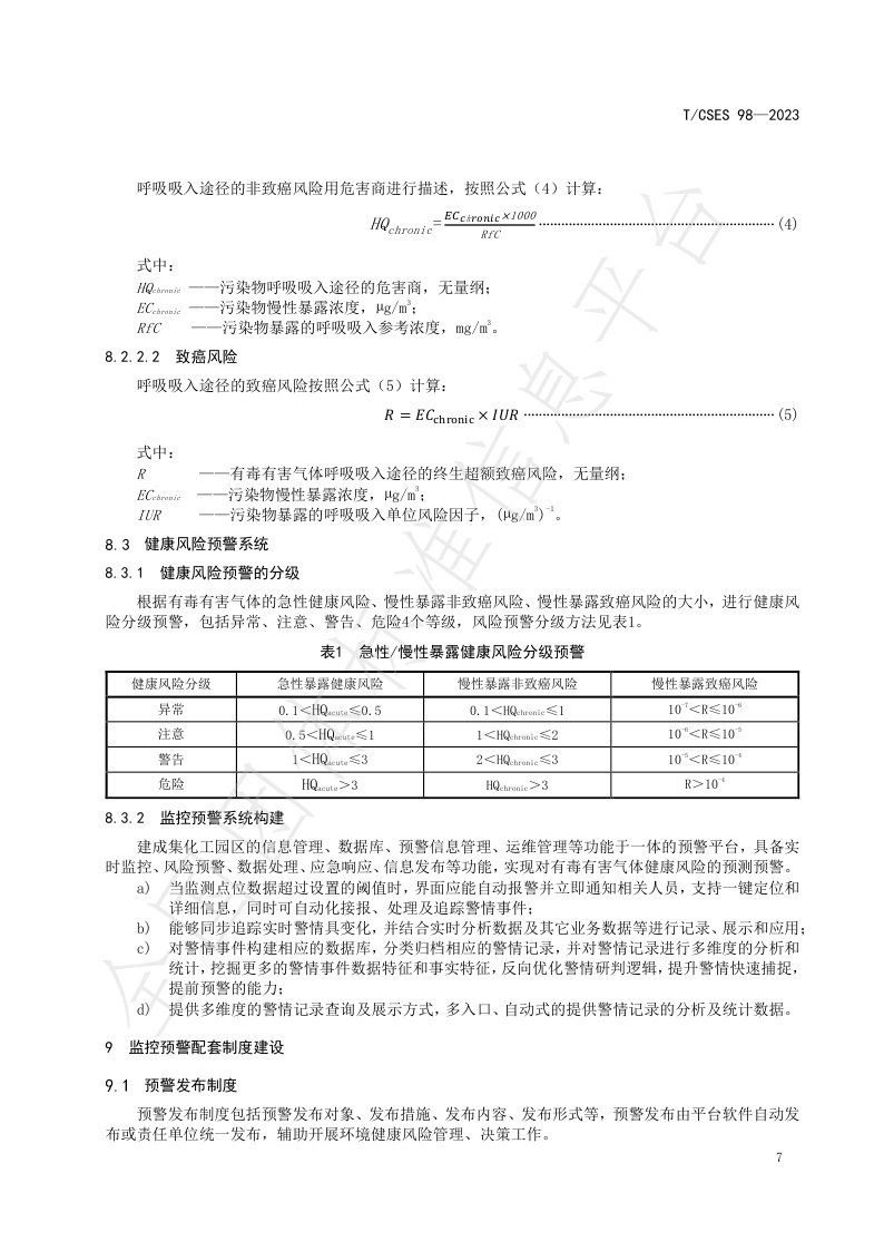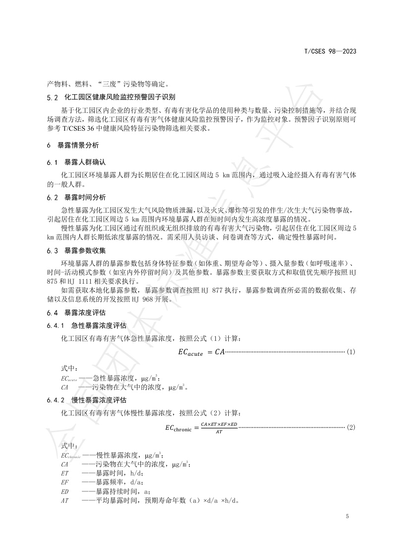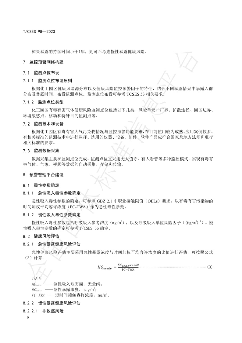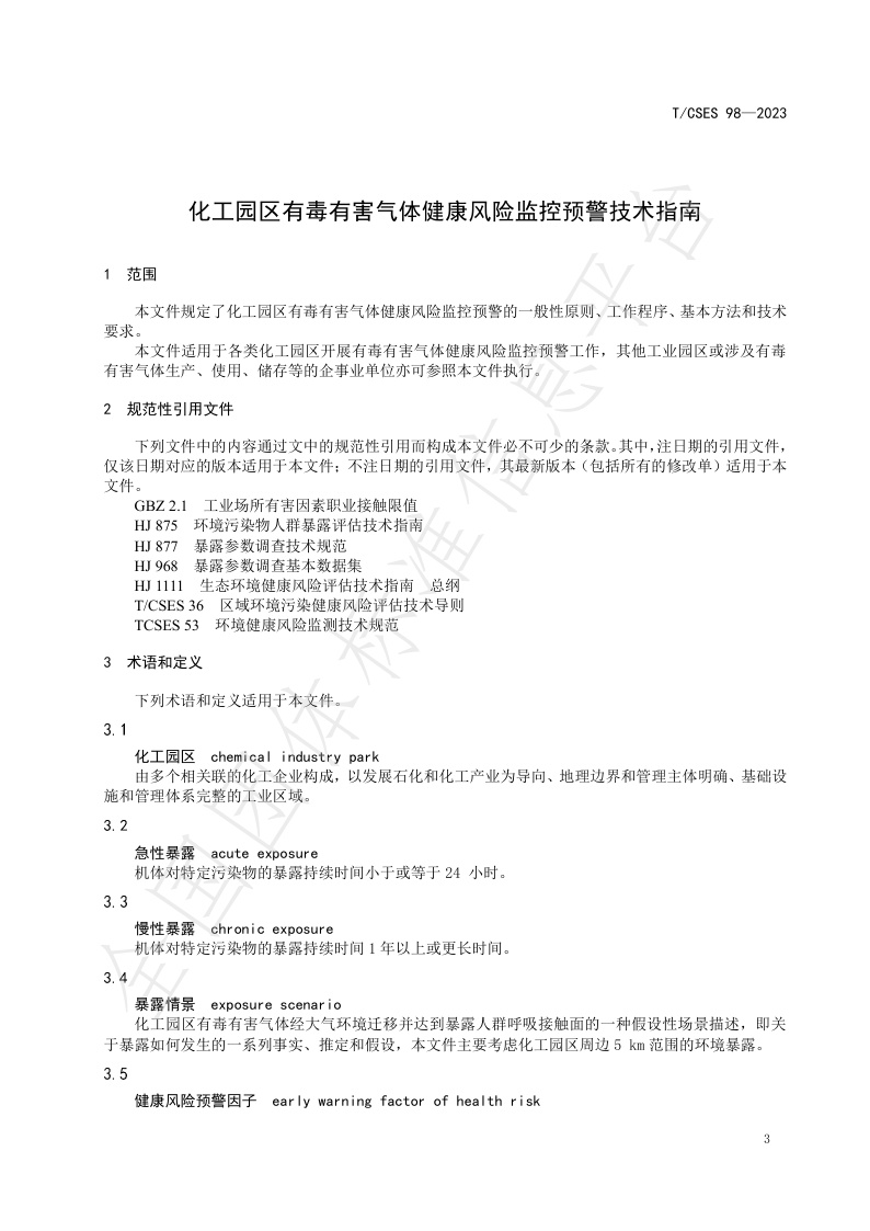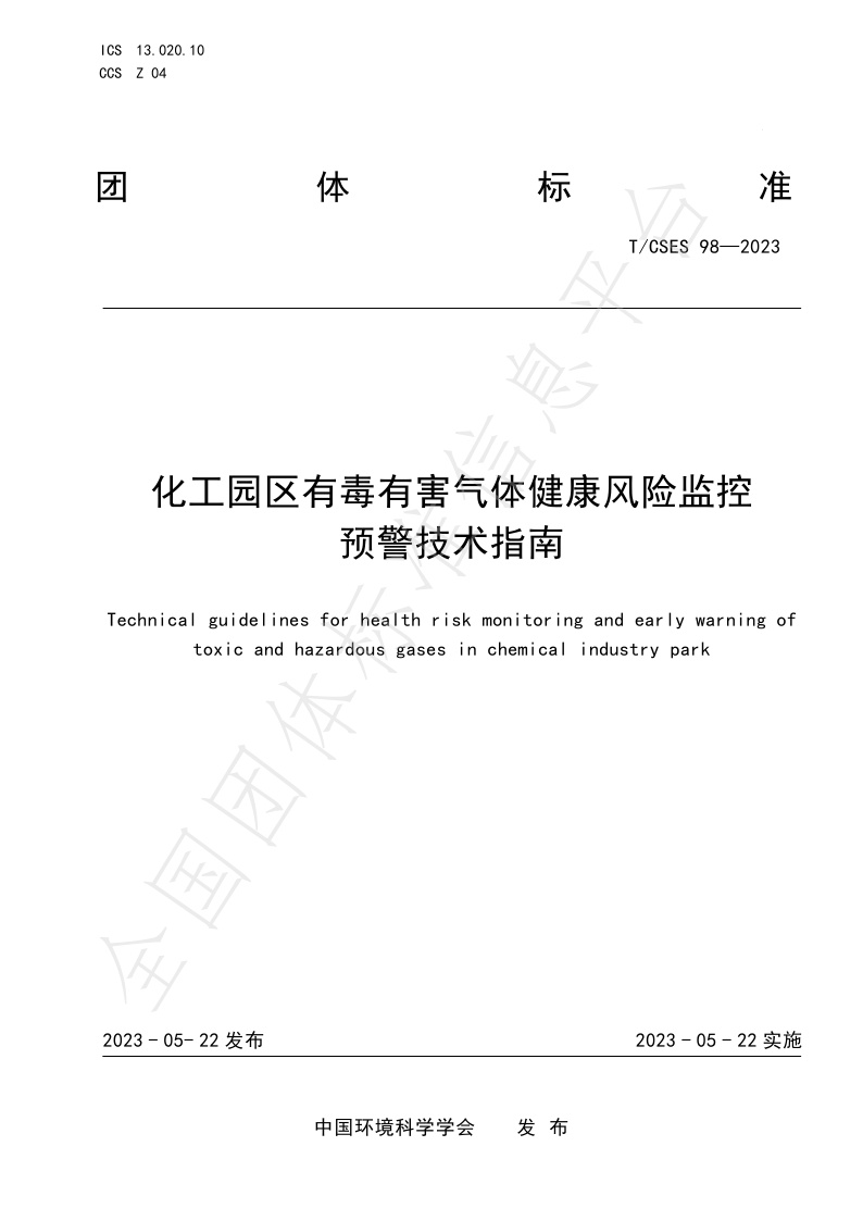 TCSES 98—2023《化工园区有毒有害气体健康风险监控预警技术指南》