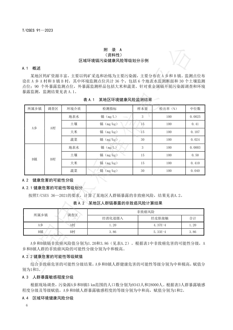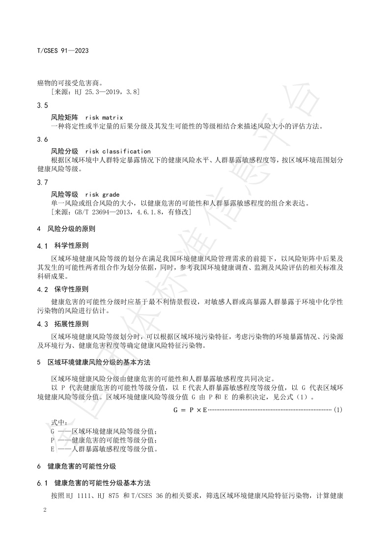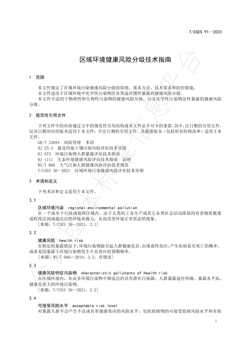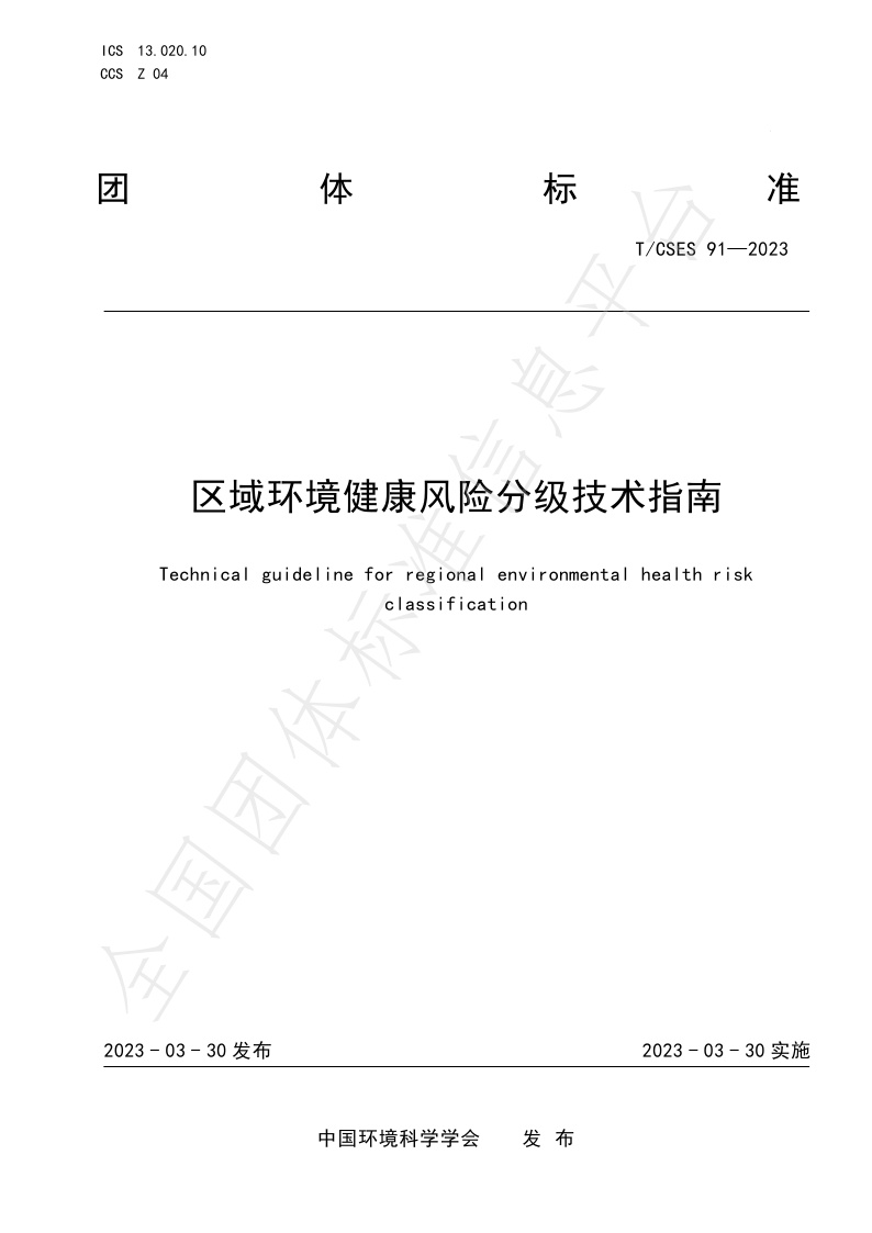 TCSES 91—2023《区域环境健康风险分级技术指南》
