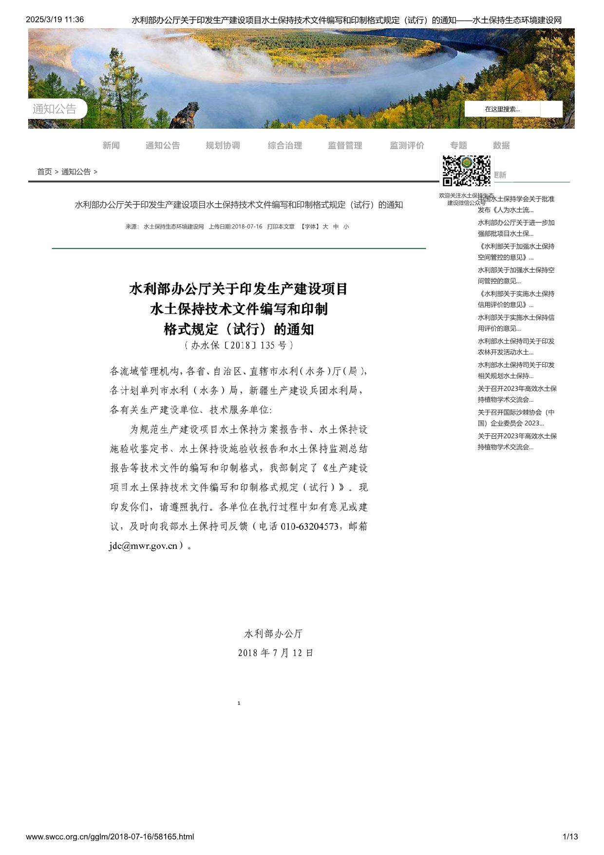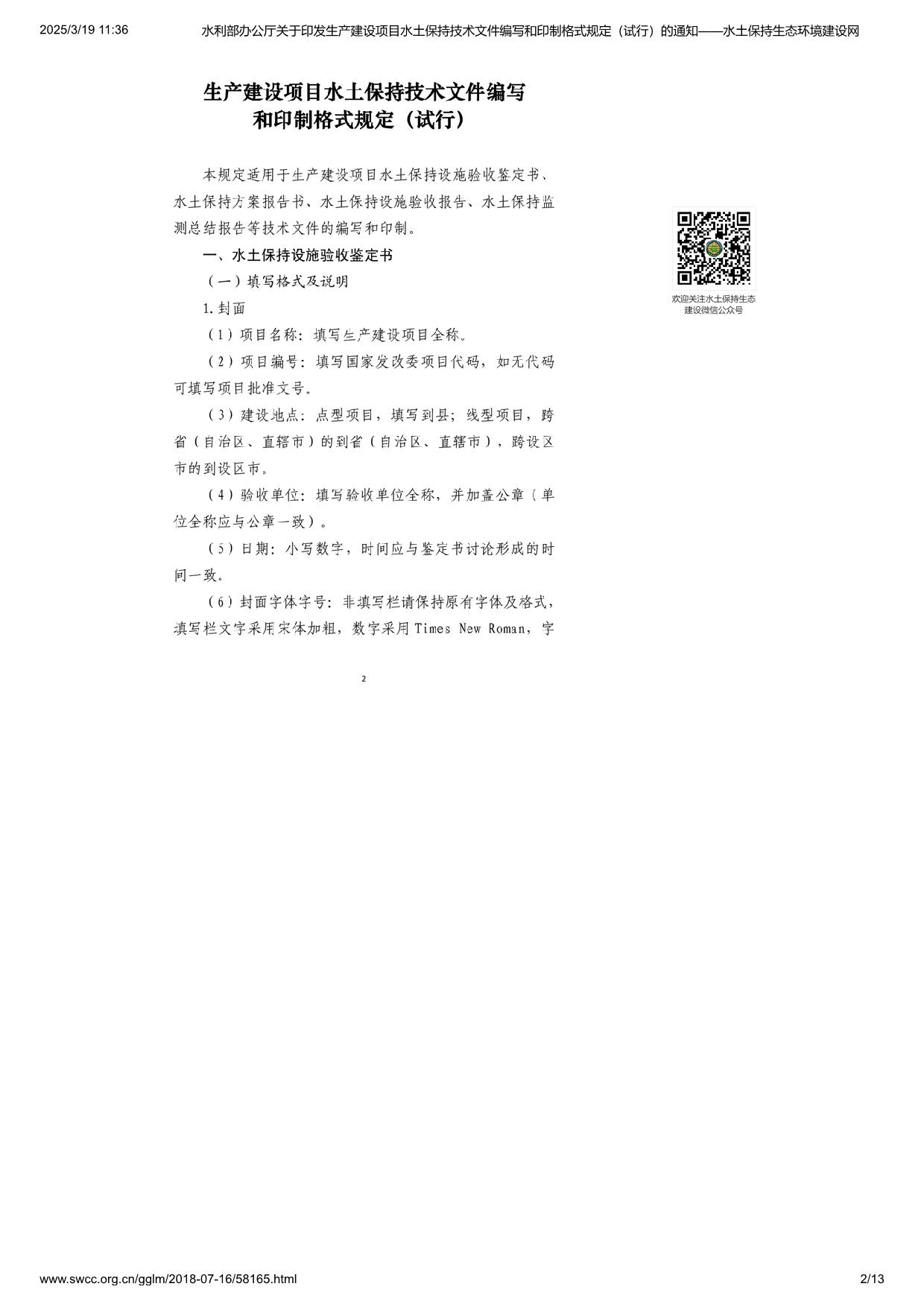 水利部办公厅关于印发生产建设项目水土保持技术文件编写和印制格式规定(试行)的通知