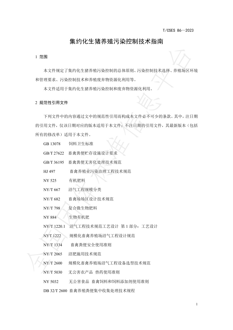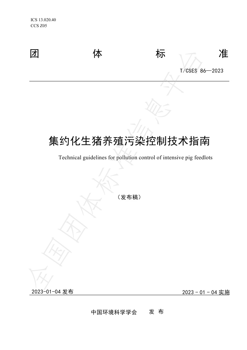 TCSES 86—2023《集约化生猪养殖污染控制技术指南》