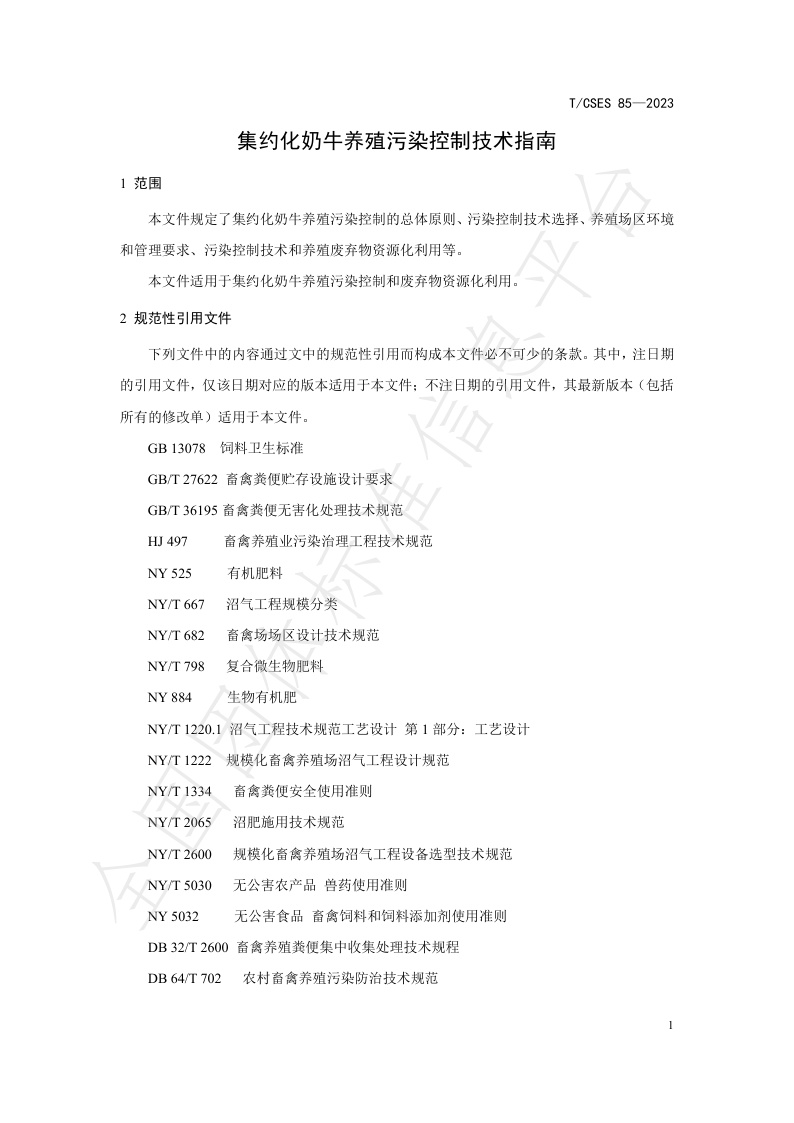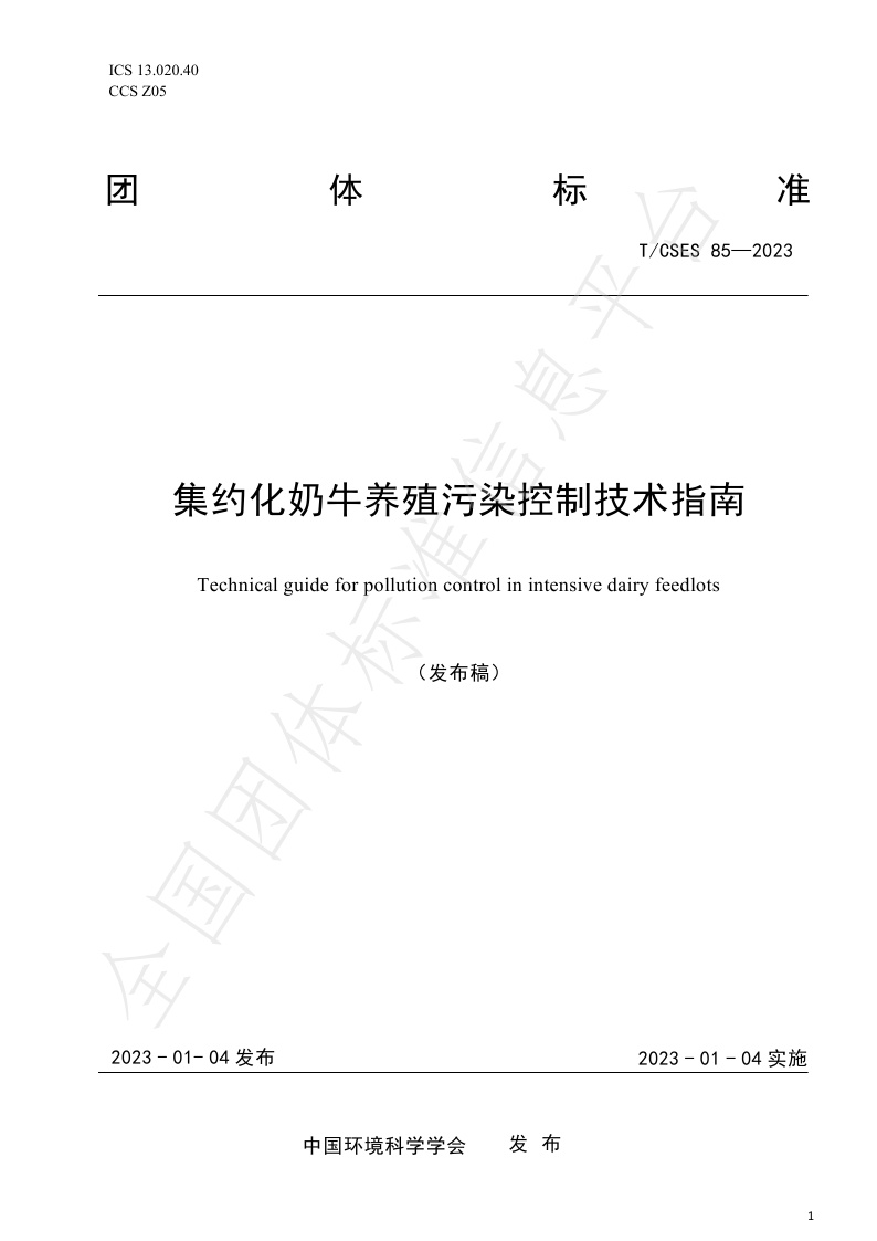 TCSES 85—2023《集约化奶牛养殖污染控制技术指南》