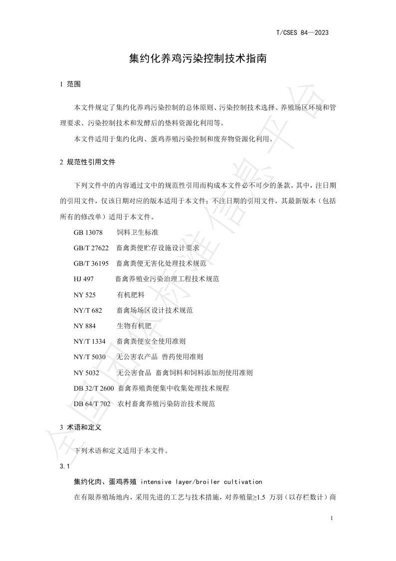 TCSES 84—2023《集约化养鸡污染控制技术指南》