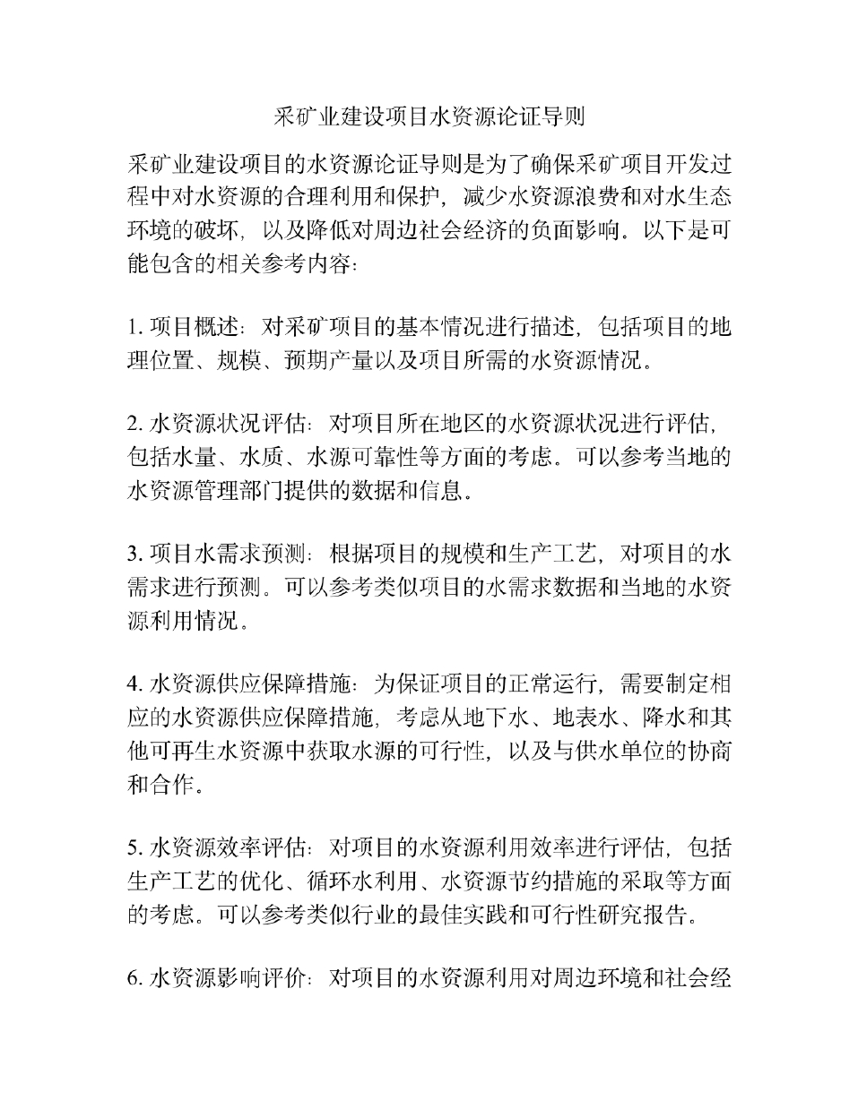 采矿业建设项目水资源论证导则