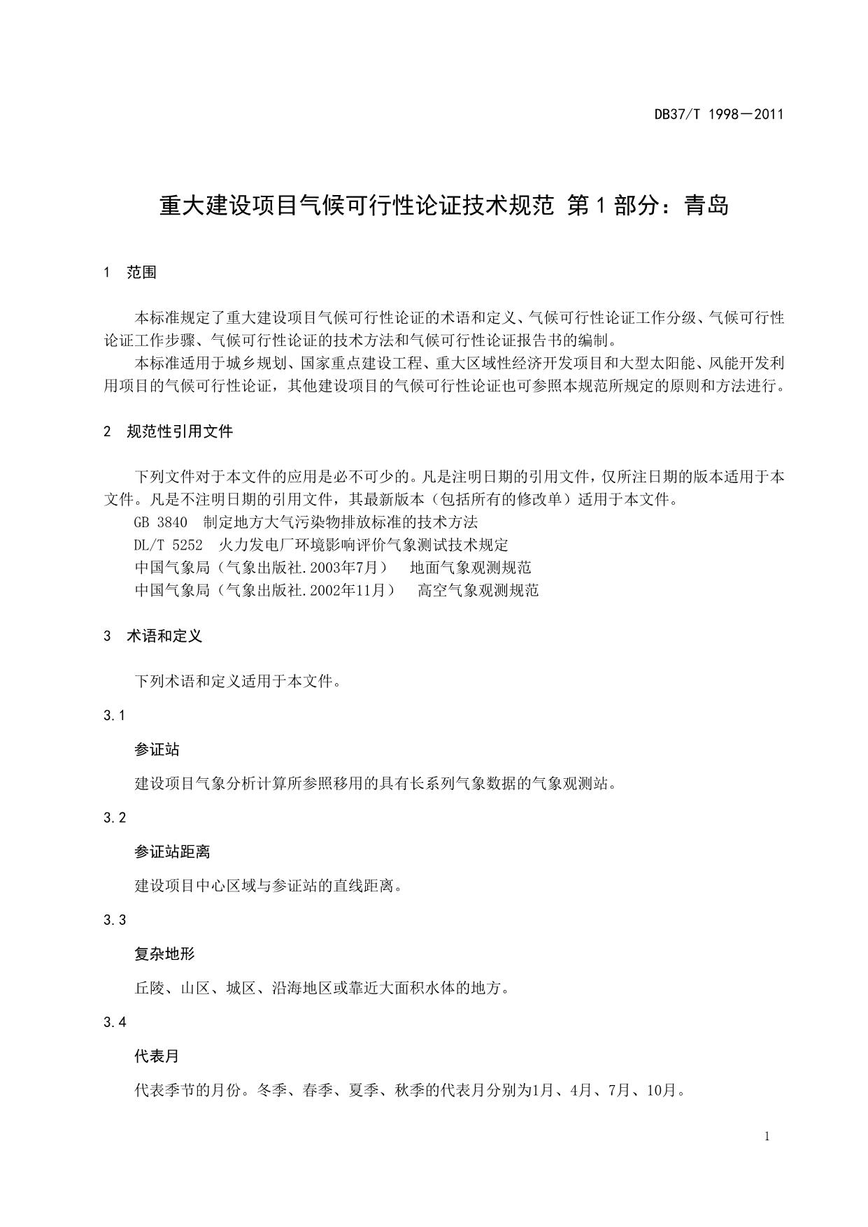 《重大建设项目气候可行性论证技术规范 第1部分 青岛》(DB37/T 1998-2011 )