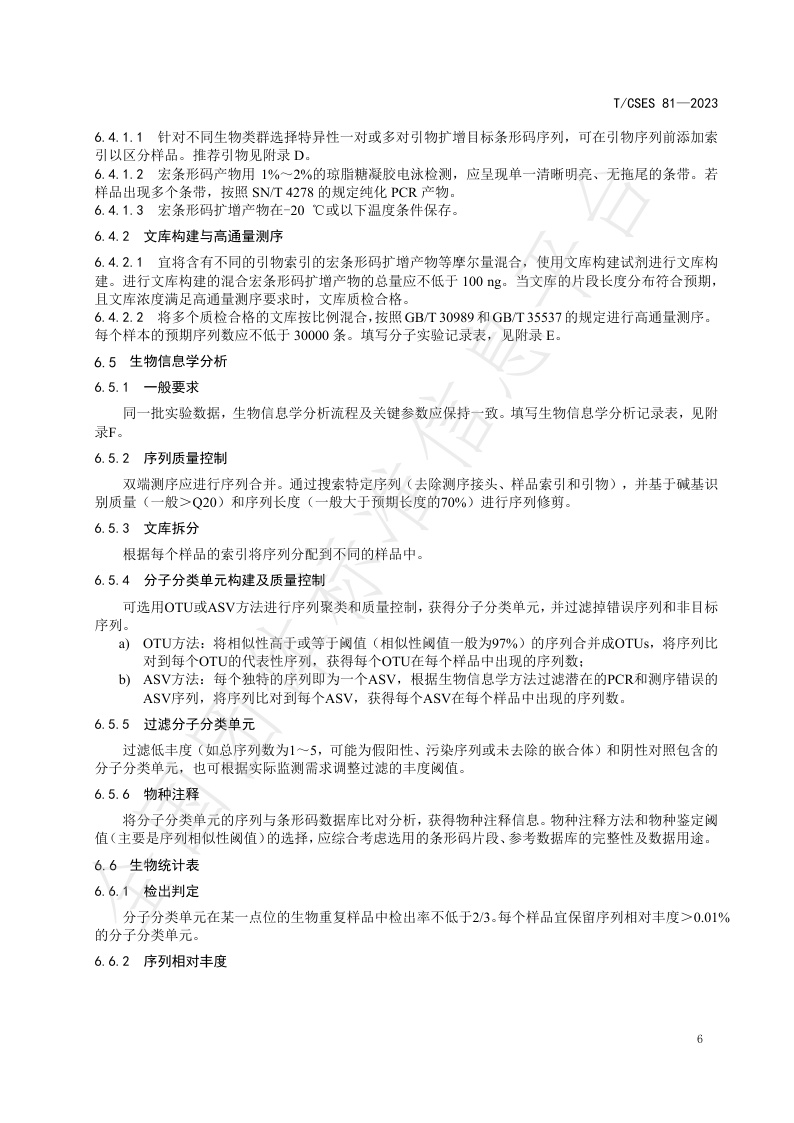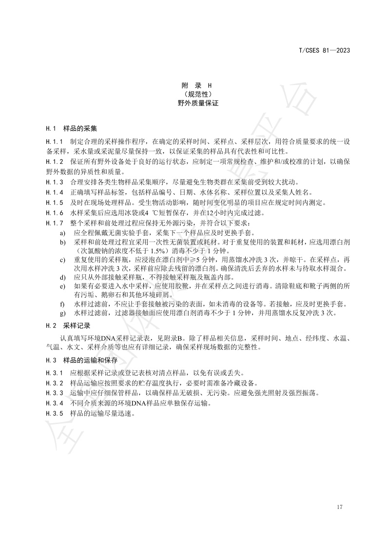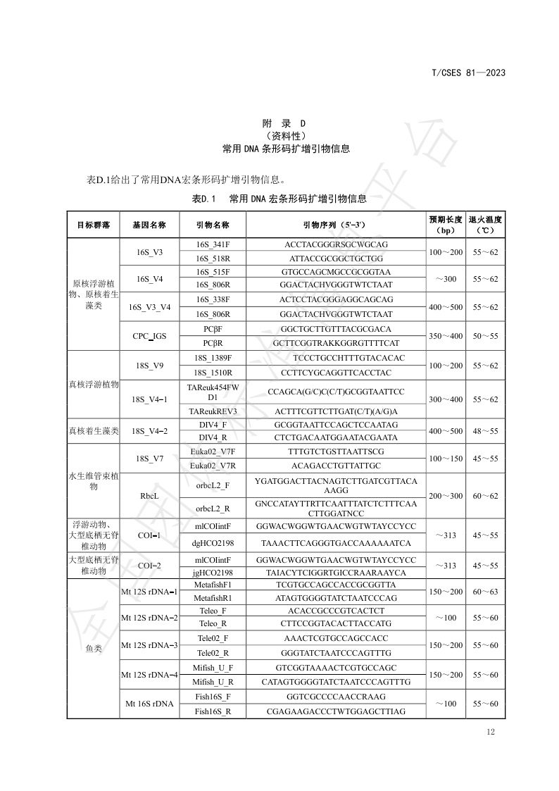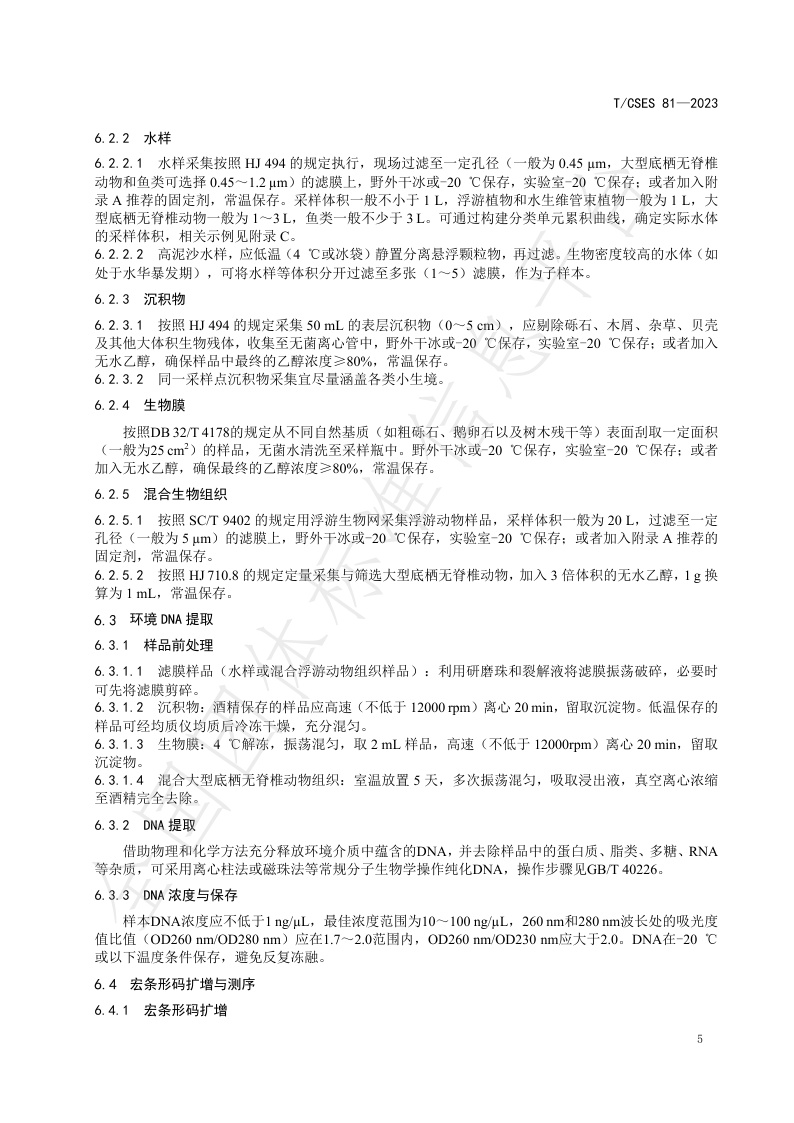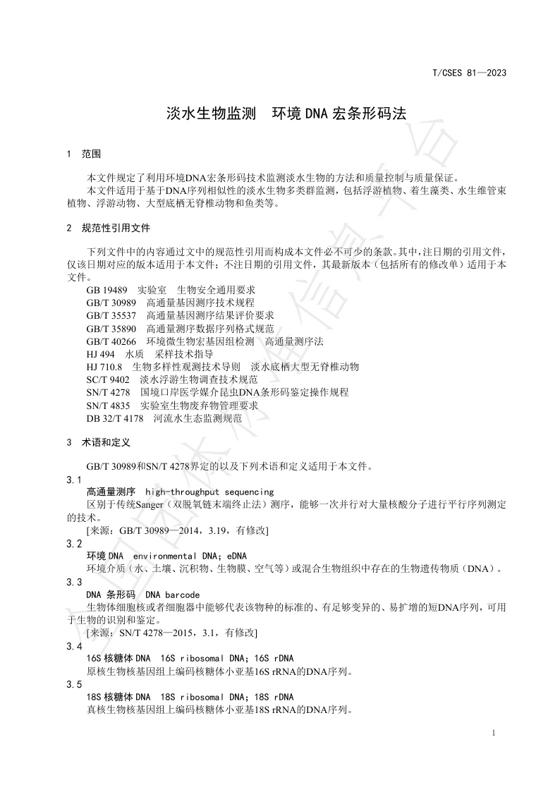 TCSES 81—2023《淡水生物监测 环境DNA宏条形码法》