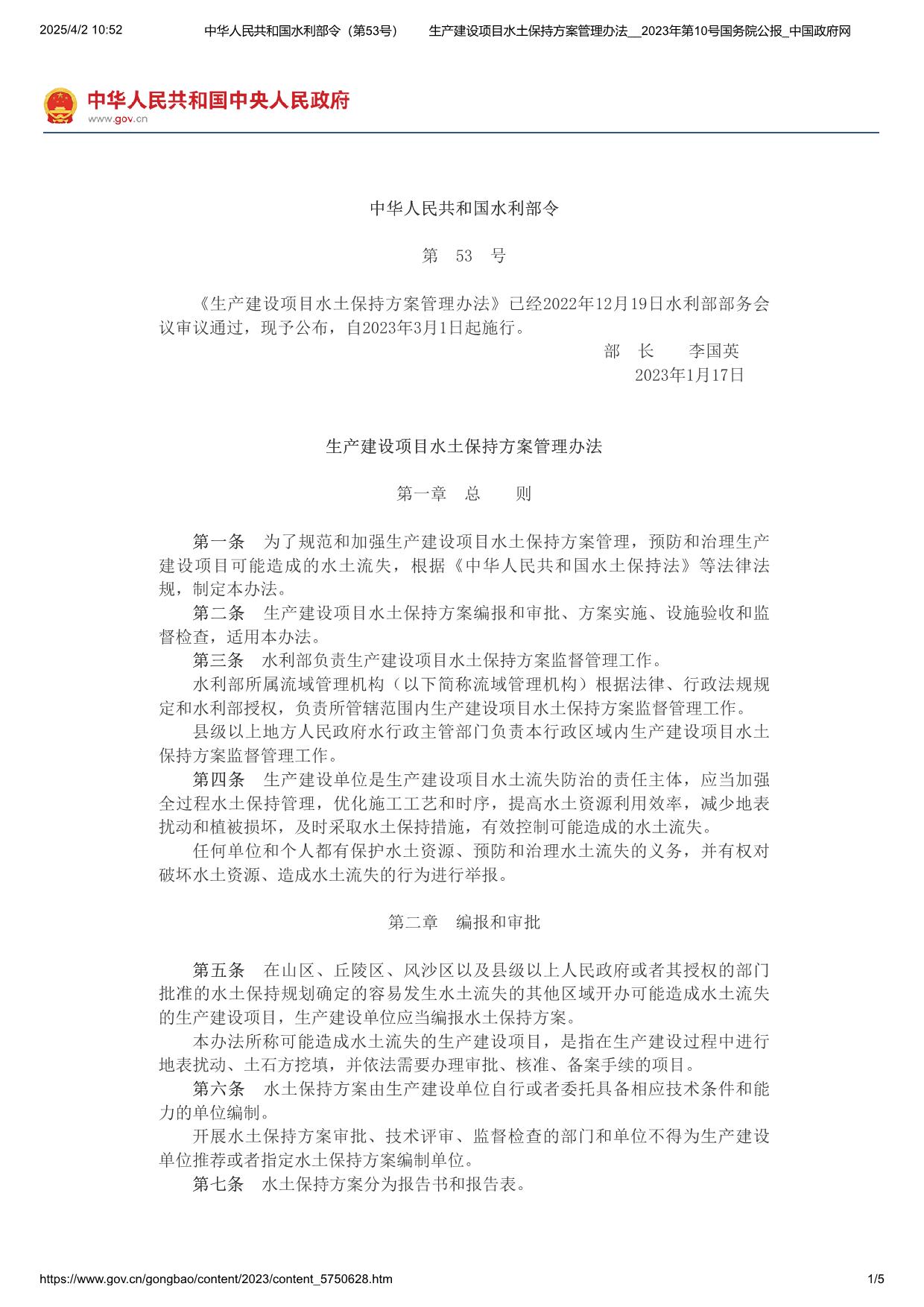 生产建设项目水土保持方案管理办法