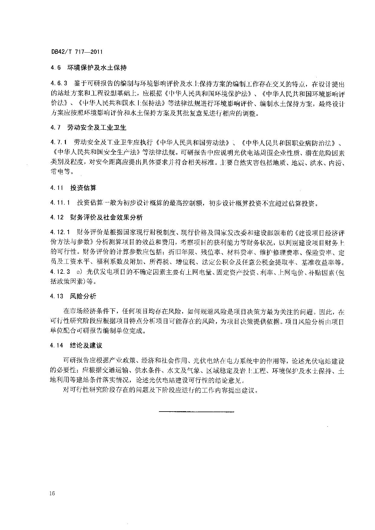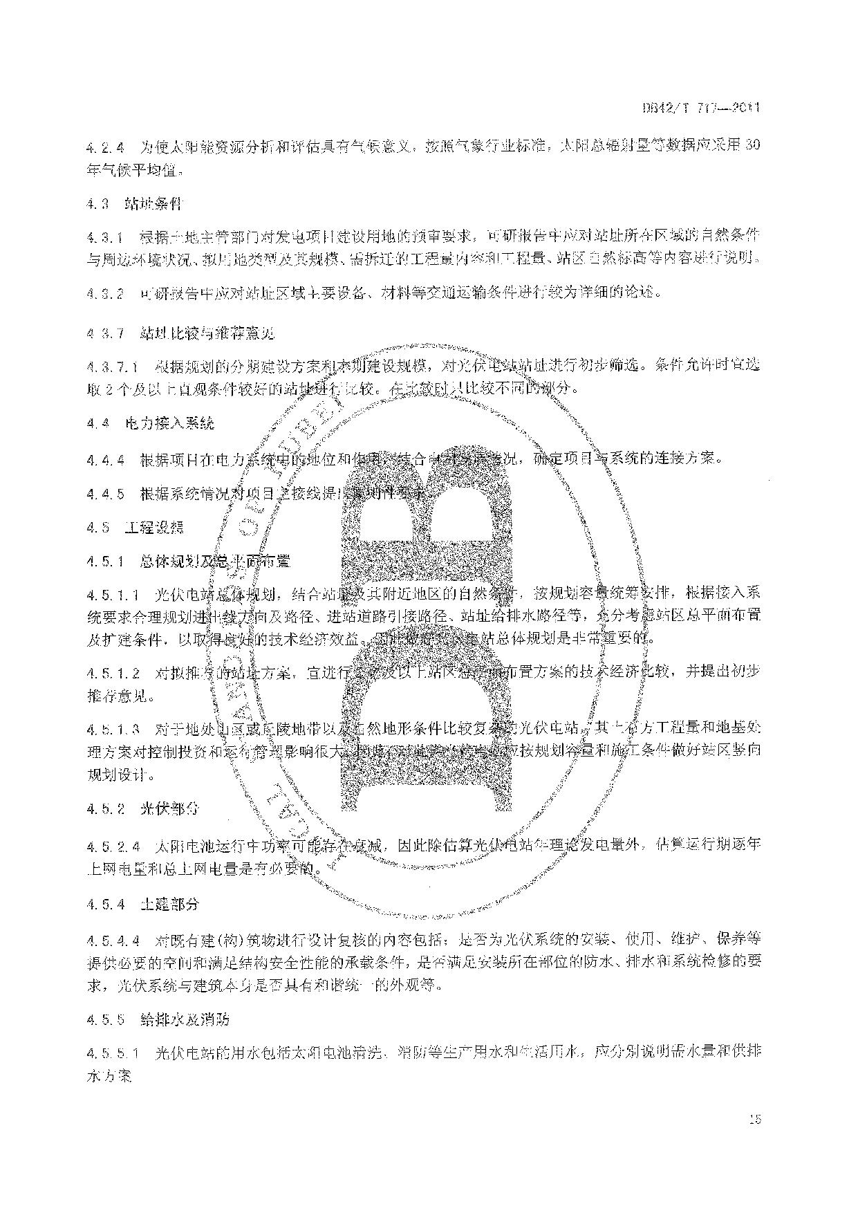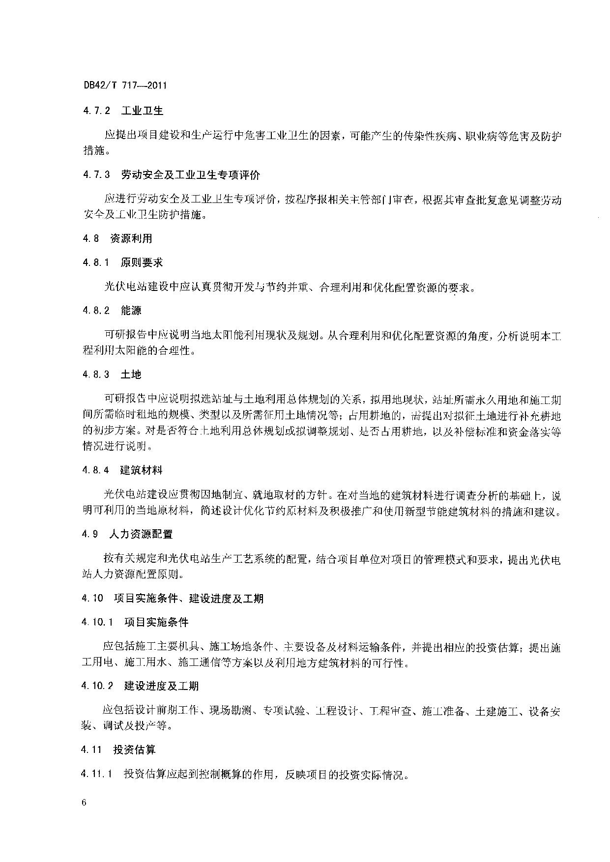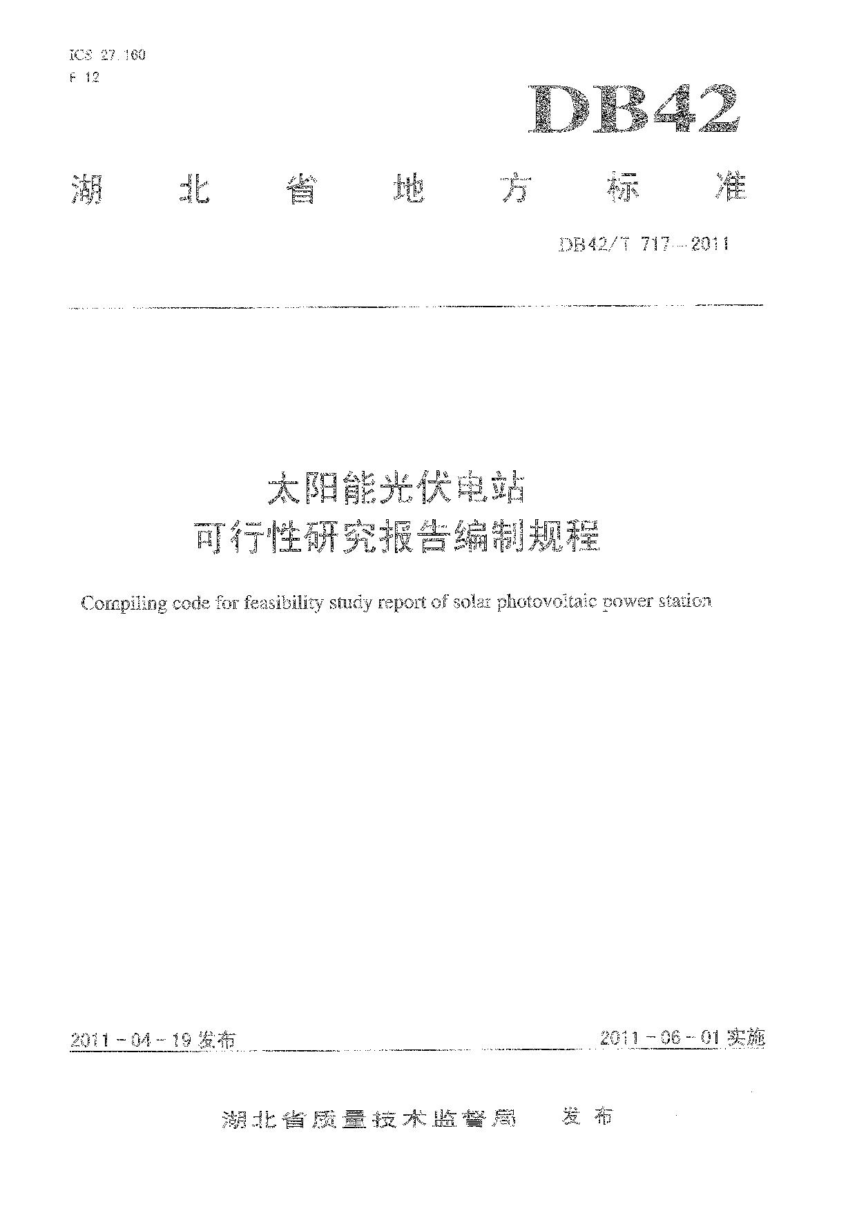 《太阳能光伏电站可行性研究报告编制规程》(DB42/T 717-2011)