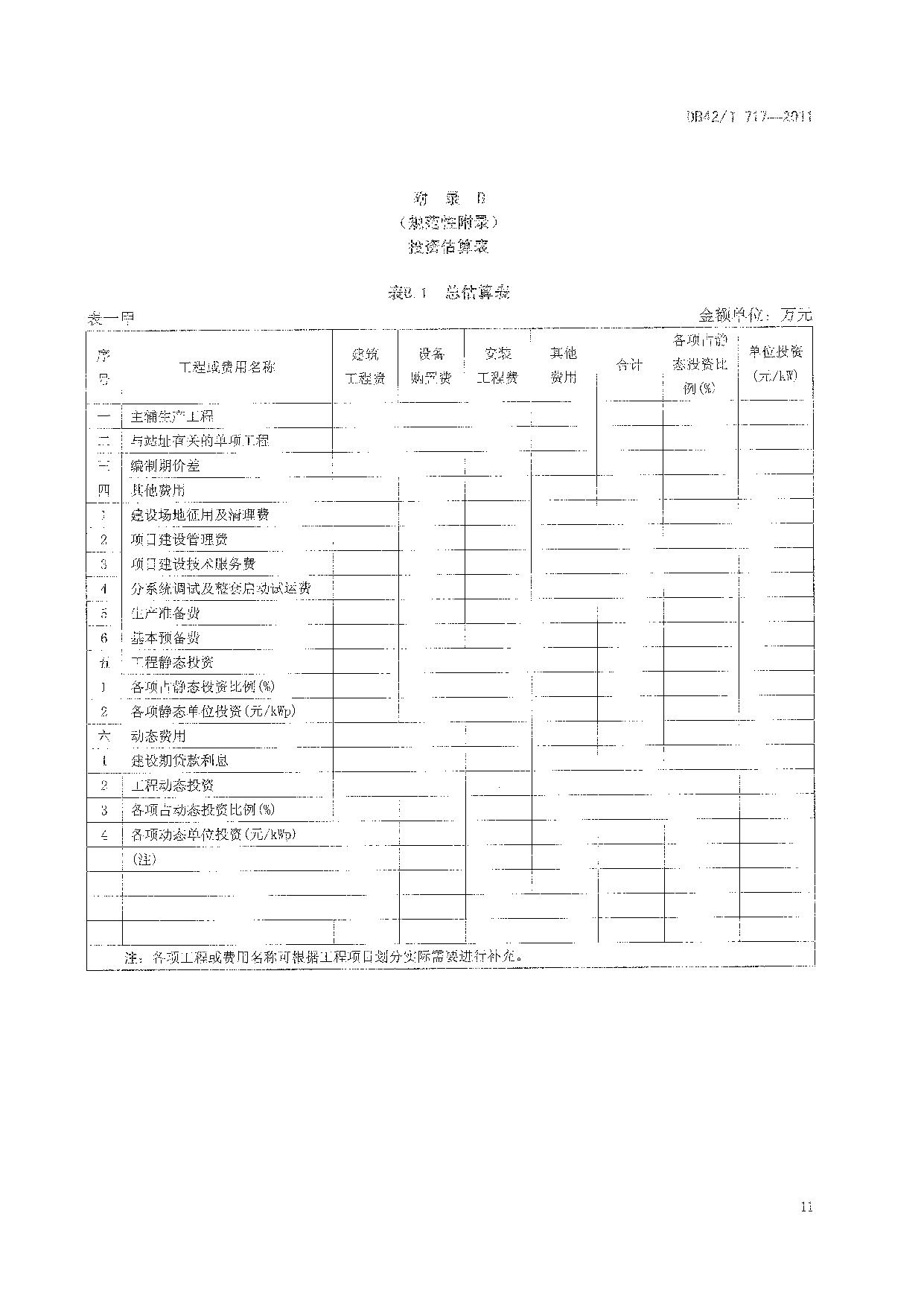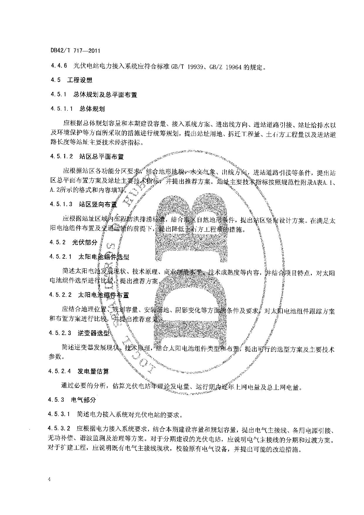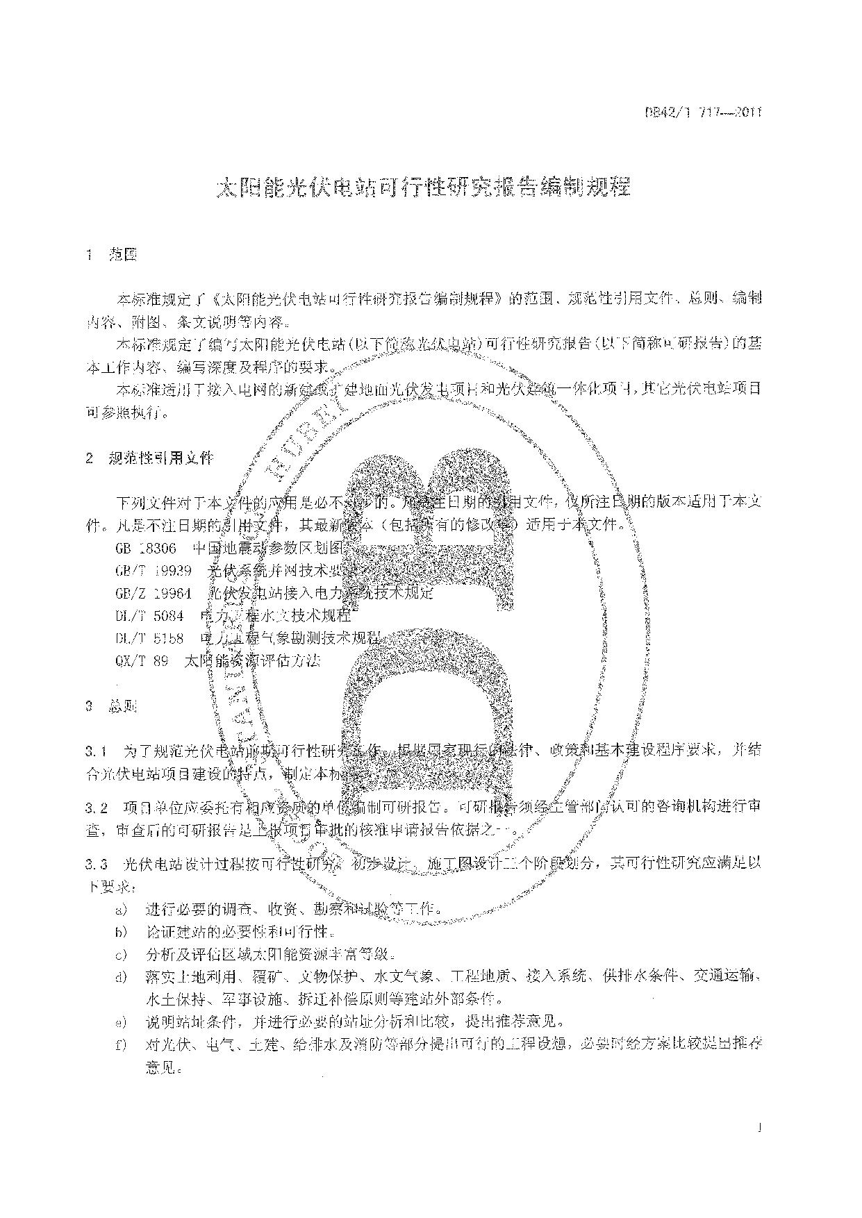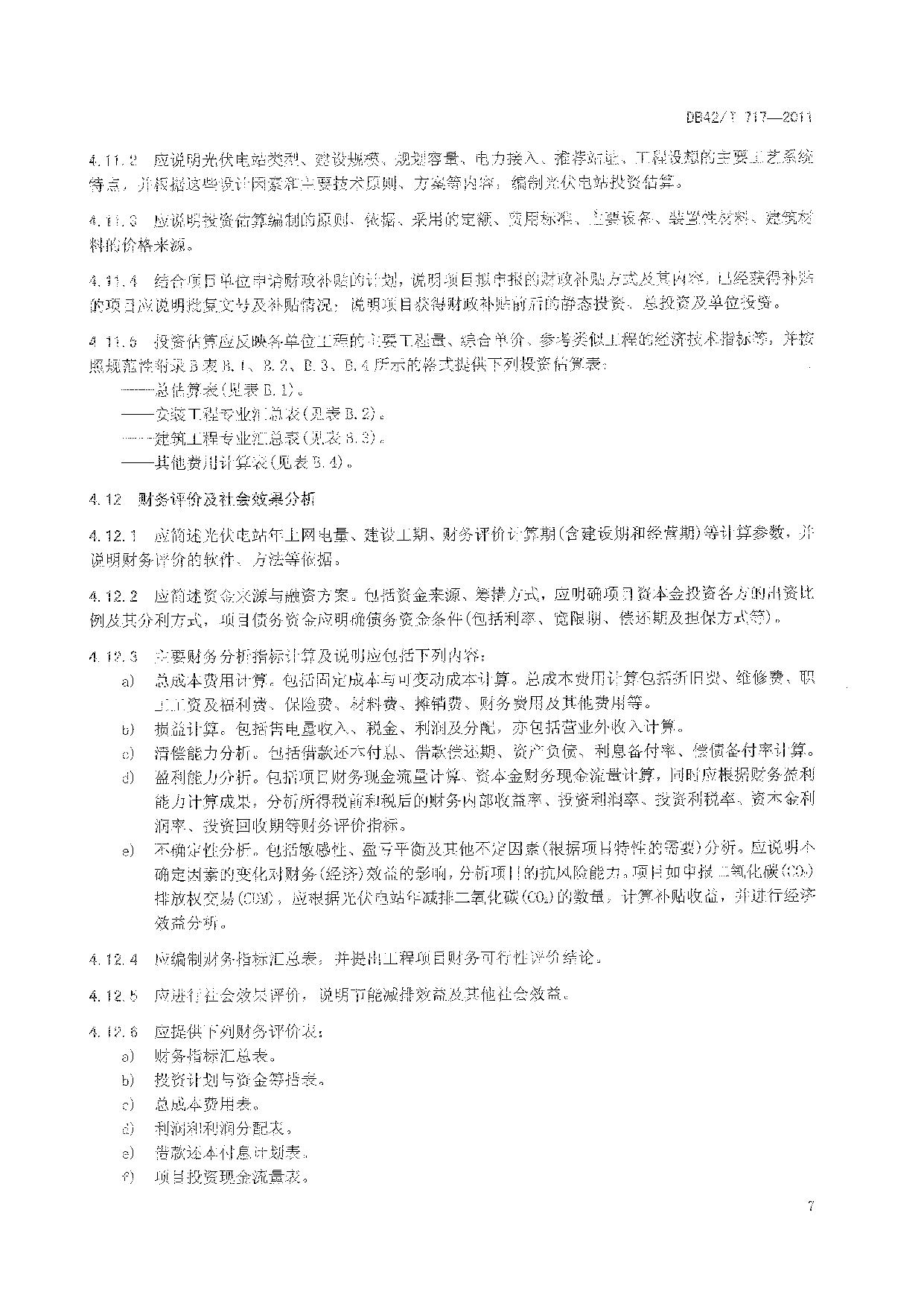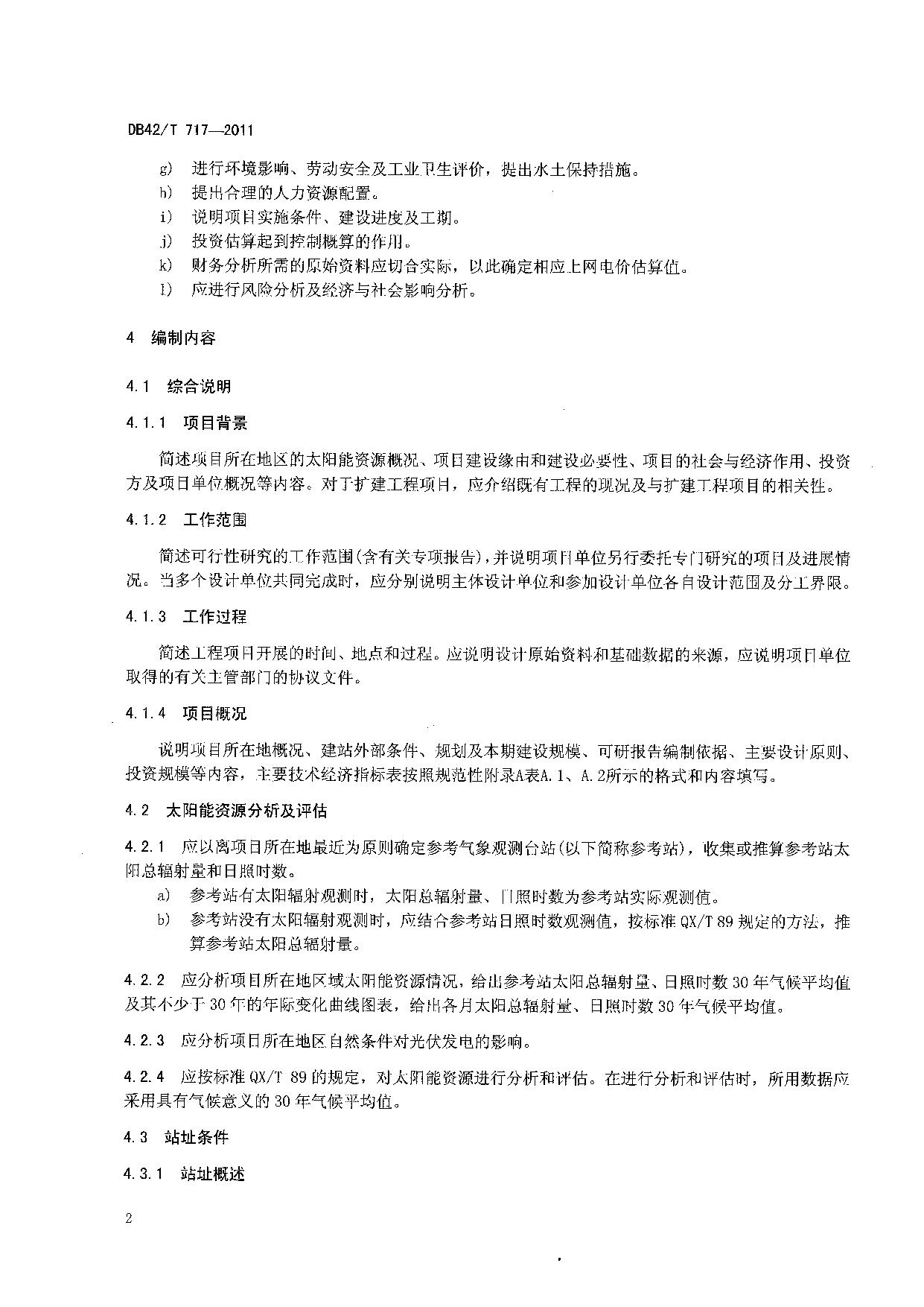 《太阳能光伏电站可行性研究报告编制规程》(DB42/T 717-2011)