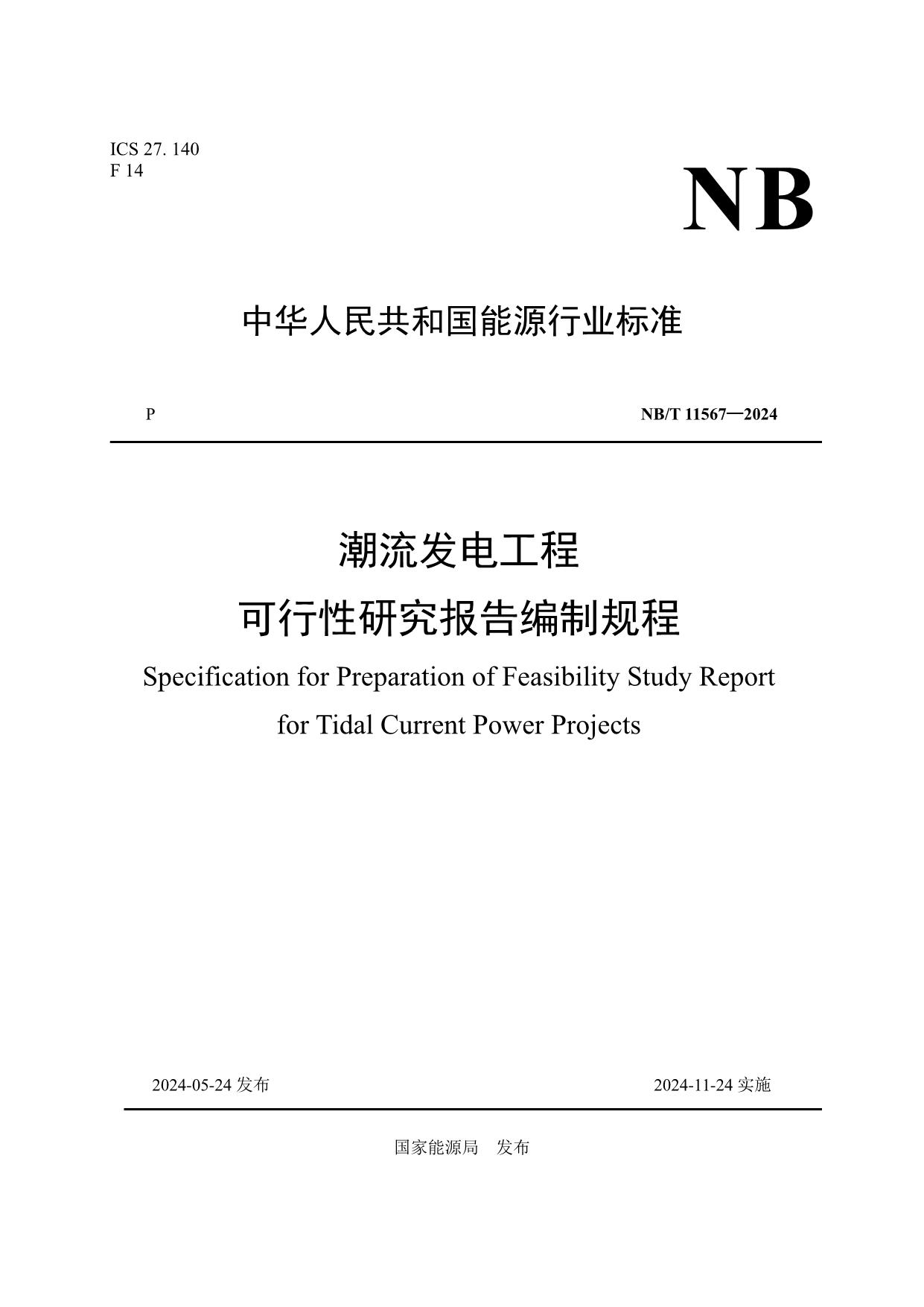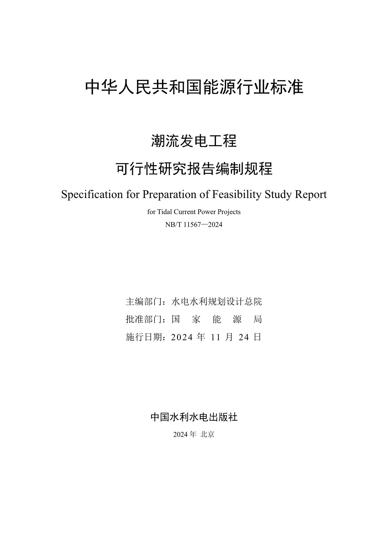 《潮流发电工程可行性研究报告编制规程》(NB/T 11567-2024)